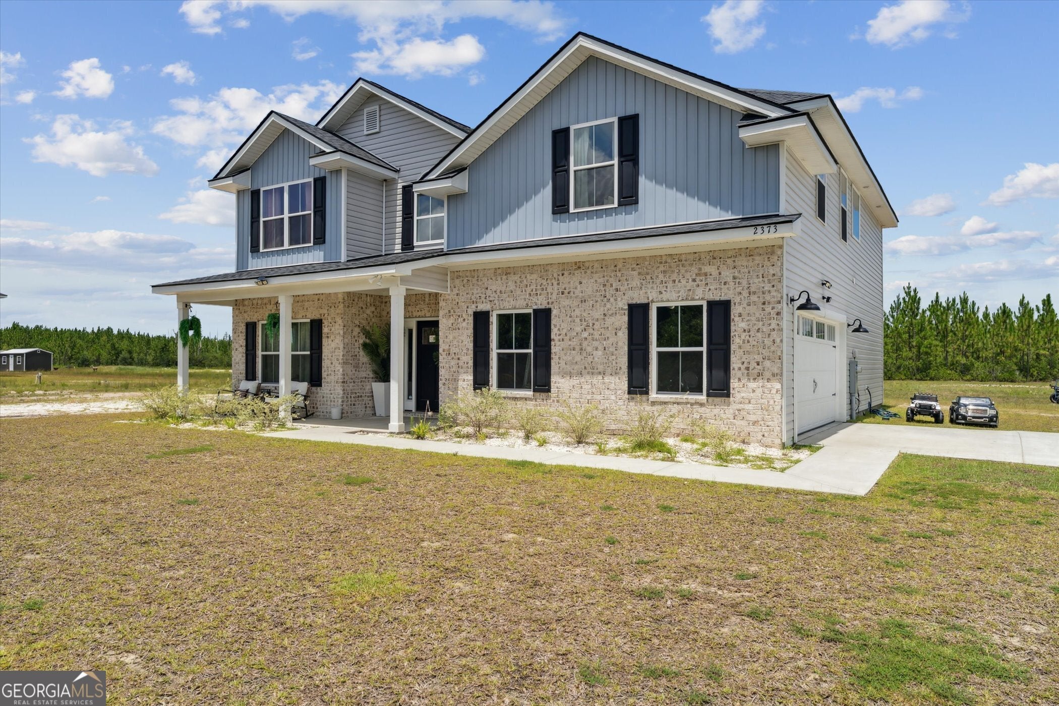 This stunning 5-bedroom, 3-bathroom home in Ludowici sits on 1.80 acres and looks like it came straight out of a showroom! Thoughtfully designed with a spacious open floor plan, it features a formal dining room, a bedroom and full bathroom on the main level, and a small loft upstairs overlooking the two-story foyer. From bedroom closets to hall storage, there's no shortage of space for all your essentials. The owner's suite is a true retreat with a private sitting area, built-in wall shelves, an en suite bathroom with a soaking tub and walk-in shower, plus a large walk-in closet complete with a vanity and custom closet system. Step outside to the backyard with a covered patio and playset, ideal for entertaining or relaxing. The yard also extends into the trees, offering even more space to use as you desire. From top to bottom, this home is immaculate. This home also has a VA Assumable Loan at 5.5% (Buyer must qualify with current lender)! Schedule your showing today and see for yourself!