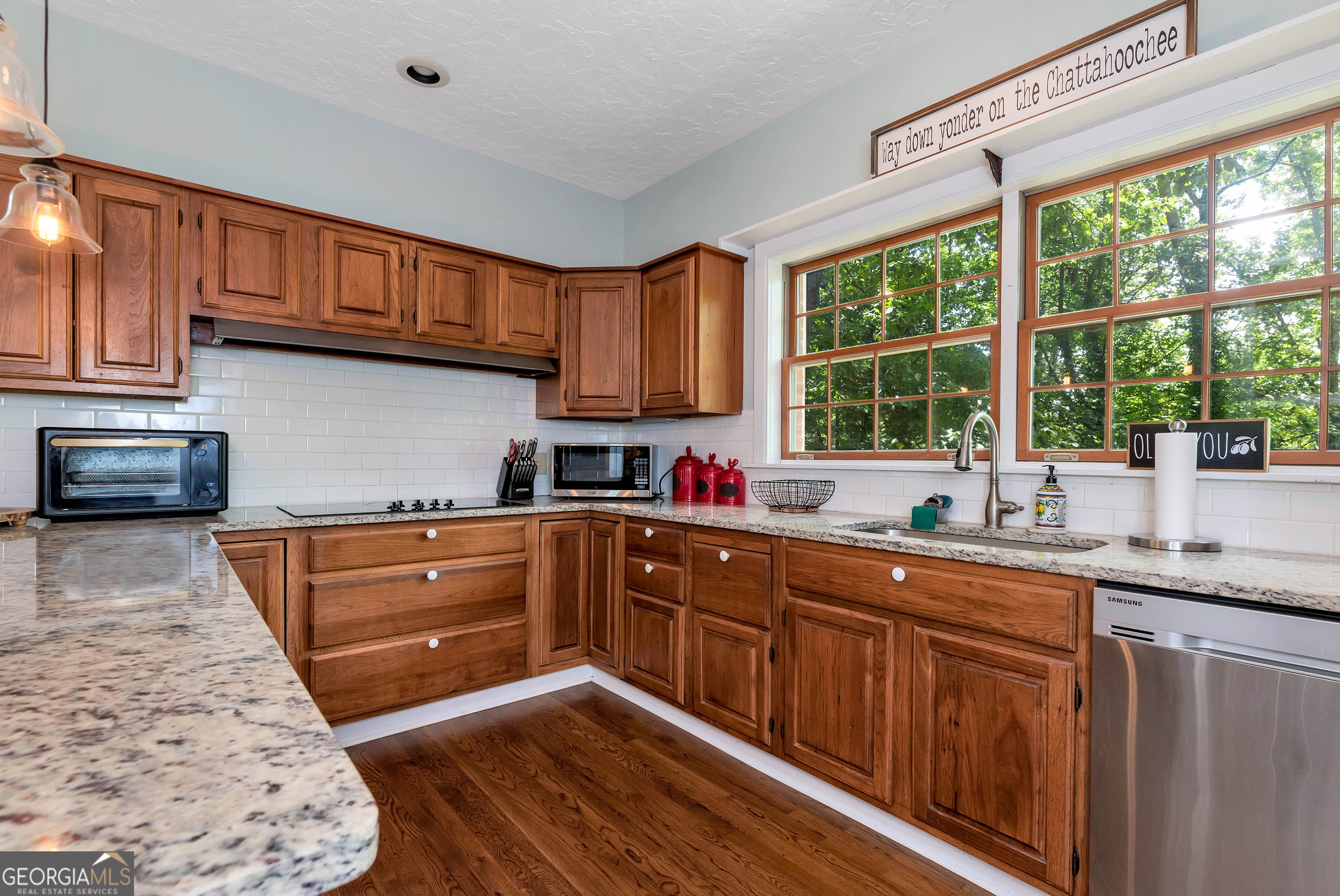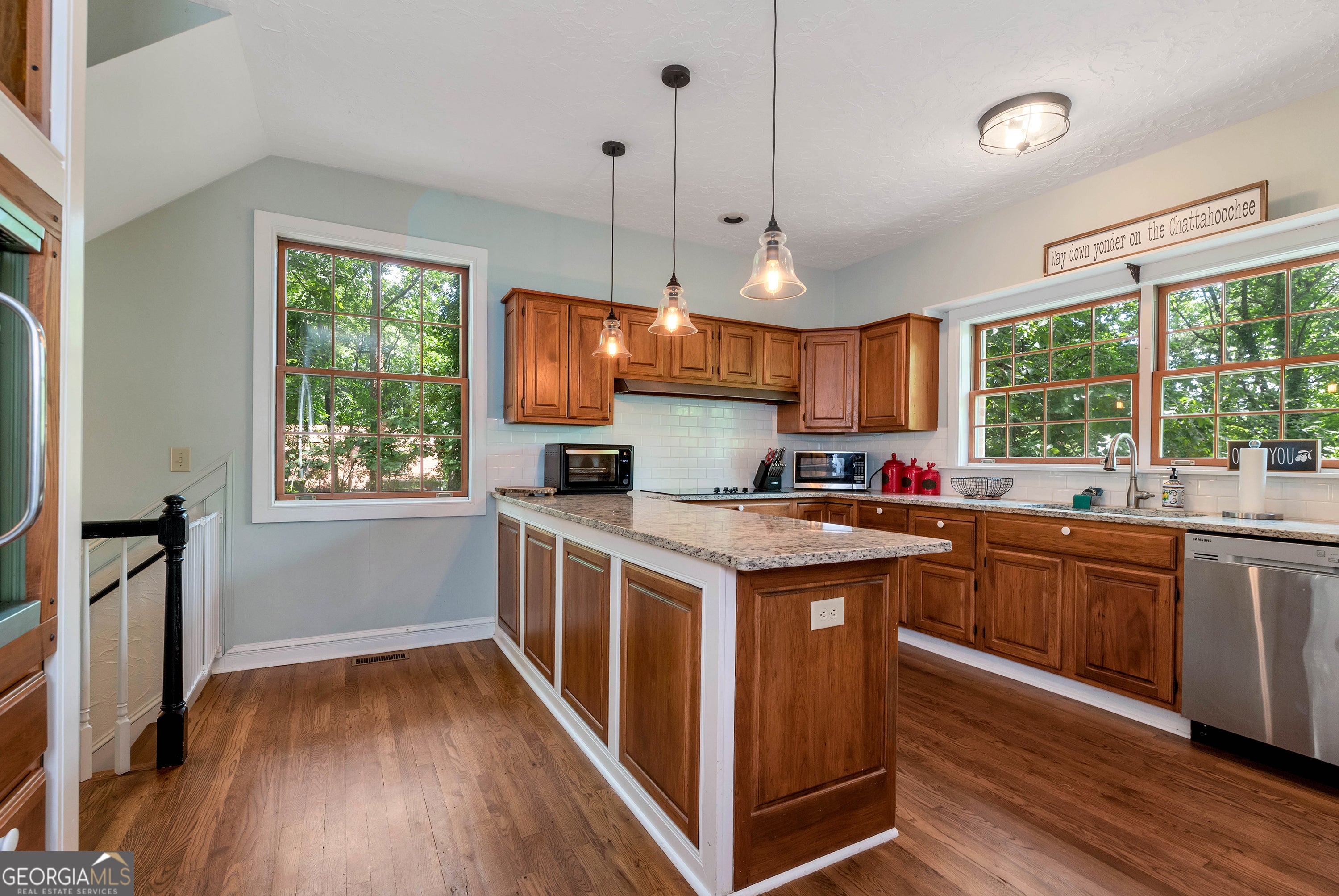 FULLY FURNISHED & ALL APPLIANCES INCLUDED- - move-in ready, instant weekend retreat or income producing Airbnb. ****4-sided brick home on the north end of Lake Lanier just north of the Olympic Rowing Center****Permitted single-slip dock with peaceful Chattahoochee-side access****Lake views from dining room and kitchen ****Beautiful refinished hardwood floors and new granite countertops & backsplash****Fresh interior paint, new carpet, updated lighting & ceiling fans****Spacious great room with masonry fireplace****Terrace-level in-law suite with private entrance, bedroom, bath, and living area****Walk-out patio overlooking the lake****Affordable opportunity for Lake Lanier living in Gainesville Georgia