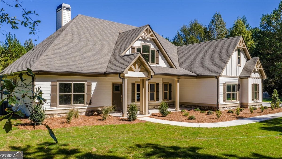 15.01 ACRES! Welcome to The Addison by Trademark Quality Homes - a spacious and stylish ranch plan located in beautiful The Rock Georgia! Underground utilities and fiber internet, all in a prime location! This thoughtfully designed home offers 4 bedrooms, 3.5 baths, and a split-bedroom layout that balances privacy with open-concept living. Step into the foyer and you'll find a convenient powder room for guests and a formal dining room accented with custom trim. The spacious family room features a vaulted ceiling and a charming stone-surround wood-burning fireplace - perfect for cozy evenings. The gourmet kitchen is a showstopper, with quartz countertops, a designer tile backsplash, stylish pendant lighting over the large island, and stainless steel appliances including a wall oven, cooktop, built-in microwave, and dishwasher. Formal dining room with accent wall feature and a sunny breakfast nook add both function and character. The main-level primary suite includes a trey ceiling, a luxurious private bath with double vanities (quartz countertop), a freestanding tub, tiled shower, water closet, and a huge walk-in closet. Two additional guest bedrooms and a full bath are also located on the main level, along with a well-designed laundry room. Upstairs, you'll find a versatile bonus room, an additional guest bedroom, and a full bath - perfect for in-laws, teens, or a home office. Enjoy the outdoors from the rocking chair front porch or the large covered back patio, ideal for entertaining or quiet relaxation. Additional high-end features include: * Cement board siding * Architectural shingles * Low-E windows * Spray foam insulation in the attic * Smart home features: keyless deadbolt, select smart switches, video doorbell & more. Builder requires a 2% construction deposit and offers a $2,500 credit with use of a preferred lender - plus an additional $2,500 from the lender! Preferred lender details available in documents. Estimated Completion November 2025