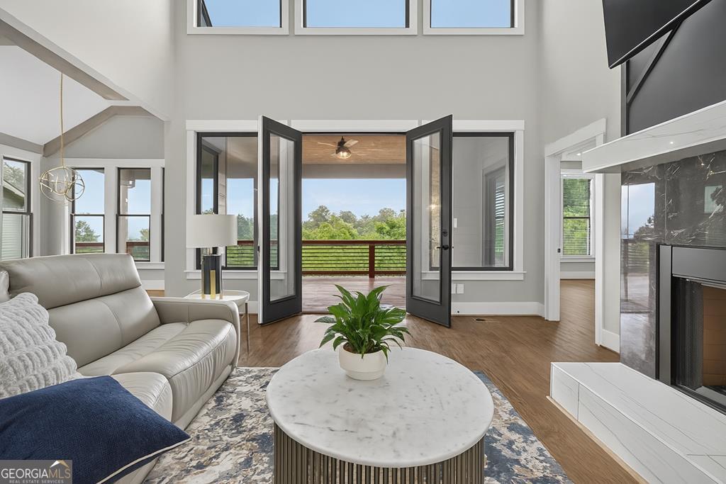 SELLER IS MOTIVATED TO SELL WITH REASONABLE OFFER! Back on market- Buyer backed out for personal reasons- No fault to Sellers and back on market not due to inspection problems! Welcome to 190 Summit View Lane - a stunning luxury mountain retreat offering panoramic LONG RANGE YEAR ROUND VIEWS, elegant finishes, and a flexible floor plan ideal for full-time living or a high-end second home. Located of all paved roads at the end of a quiet cul-de-sac in an upscale gated, all-paved community with a saltwater pool and clubhouse, this custom home features 3,032 sq ft of finished space with 4 bedrooms, 4.5 bathrooms, a 2-car garage, and 1,790 sq ft of partially finished basement with 10-ft ceilings-already stubbed for a full bath and kitchenette- Ideal for a long-term rental suite, in-law apartment, or an expansive game/media room with a second master suite and bar area. Inside, you'll find soaring ceilings, real hardwood floors, and a bright open-concept living space with a marble gas-log fireplace, formal dining, and a designer kitchen featuring stainless steel appliances, oversized island, farmhouse sink, tile backsplash, breakfast area, and a hidden butler's pantry. The main-level primary suite offers a luxurious escape with a spa-like bath and walk-in closet. Laundry room and 1/2 bath are also located on the main floor. Upstairs, you'll find three private guest suites, each with its own tiled en-suite bath and walk-in closet. The basement has room to expand and already has the plumbing added for expansion. The covered back porch is made for year-round enjoyment-boasting a second gas fireplace, TV mount, and breathtaking views. Additional features include a laundry room with sink, natural gas, public water and public sewer, ETC fiber internet, cable, all paved road access and excellent cell service. HOA includes road maintenance, community entry/landscaping, clubhouse, and pool. short-term rentals are not allowed. Just minutes from Gilmer County Schools, downtown Ellijay, vineyards, hiking, and boutique shopping-this home combines modern luxury with North Georgia charm. Furniture negotiable in the home!