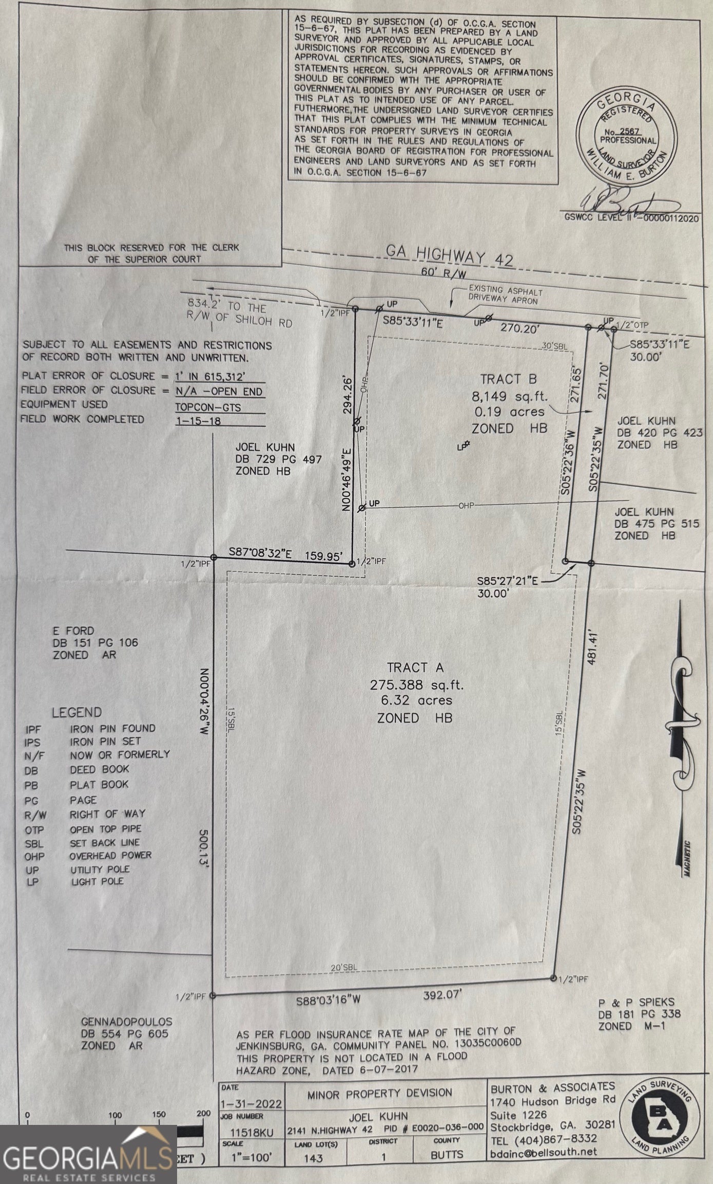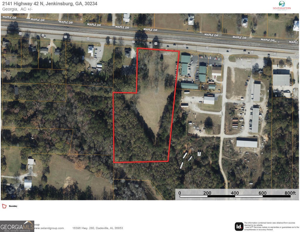 Here is an opportunity to grow your business or invest in something new right off of GA HWY 42N in downtown Jenkinsburg, GA. Just 6 miles to the Tanger outlets in Locust Grove, this location is PRIME for commercial growth. This area has developed quickly and the property is located on the edge of most of the development that has already spread. It is located just inside of Butts county, moving east out of Henry County on HWY 42. This property is flat, mostly cleared and has great access to the state highway. It has great visibility to the continually growing vehicle traffic on HWY 42. The possibilities are highly varied for use here. It would make a great event venue, office park, storage facility, restaurant, shop, and the list continues on! This would be a very wise investment in the inevitable future growth of this area and community.