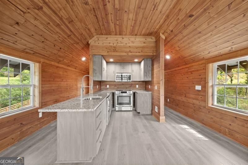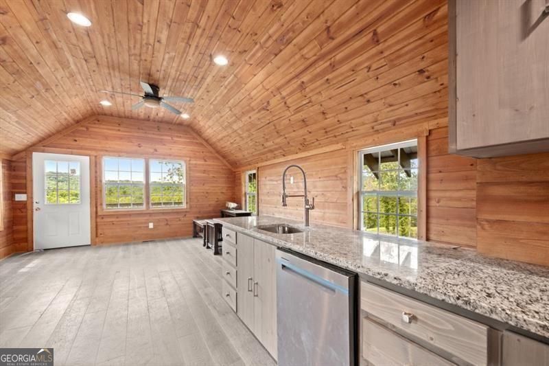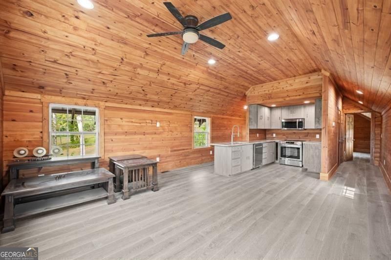 Wishing for mountains and horses just 90 minutes from Atlanta? Wish no more! Almost seven acres of Tiger Mountain have come to the market! Located off of Bridge Creek Road-12 minutes from Lake Burton and 12 minutes from Clayton shopping and dining- this mountain oasis offers views of pristine land maintained by the US Forest Service. Measuring over 4000 sq feet of new construction this horse barn boasts a bunk room below and private living space above. Best yet, the almost 7 acres of FULLY FENCED land has been partially cleared for future building. The upper living area offers 1 bedroom, 2 full baths, full kitchen, laundry and view to ponder from a birds-eye loft hideaway that is big enough for a queen bed. The main level features 5 horse stalls, tack room, kitchen, laundry, full bathroom and sleeping space for four. The current parking area is large enough for boat or mobile home parking. Live and play here- just minutes from what could be momorable lake adventures. Come create your home or home- away-from-home in North Georgia.