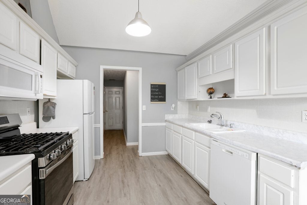 Welcome to 3512 Weaver Falls Ln - a beautifully maintained 3-bedroom, 2-bathroom ranch offering comfort, style, and versatile living spaces. Step into a sun-drenched living room featuring soaring vaulted ceilings that create an airy, open feel. The well-appointed kitchen boasts ample cabinetry and counter space, ideal for cooking and entertaining, while the elegant dining room is perfect for hosting. Retreat to the private primary suite, complete with elegant trey ceilings and a luxurious ensuite bath featuring a double vanity, soaking tub, and separate shower. Two additional spacious bedrooms offer plenty of room for everyone. Above the garage, a versatile loft area awaits - perfect for a home office, gym, or creative studio. Enjoy outdoor living in the large backyard, complete with a covered patio and a storage shed for added convenience. Located in a quiet neighborhood just minutes from local shops, schools, and parks, this home is a true gem in the heart of Loganville. HVAC and roof replaced within the last few years, and updated flooring and interior paint! Don't miss your chance to make this inviting home yours - schedule a tour today!