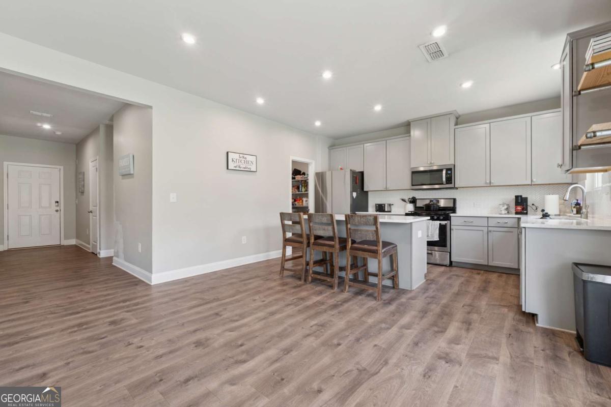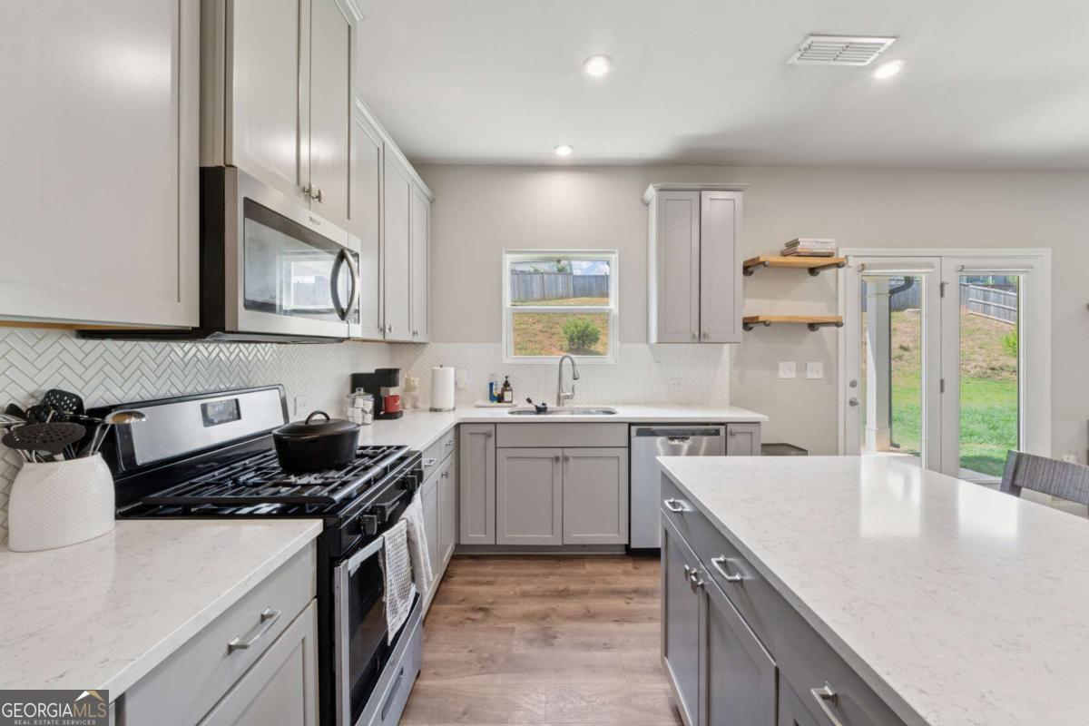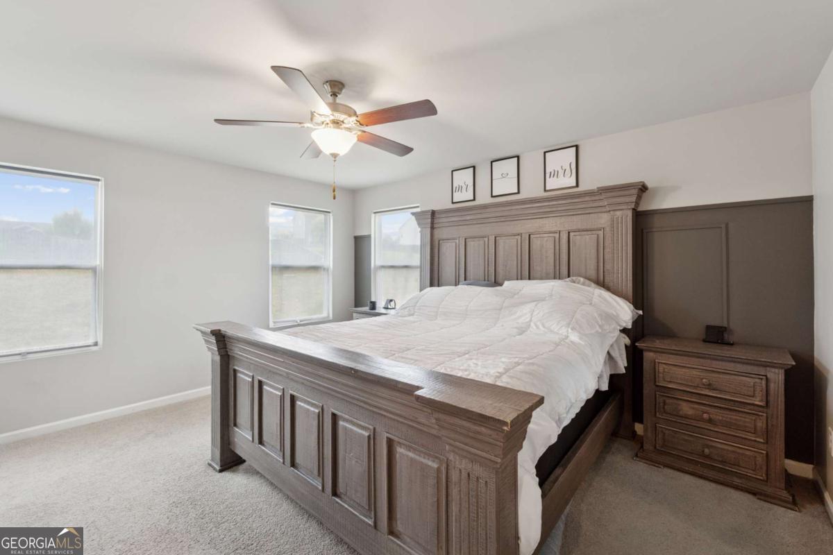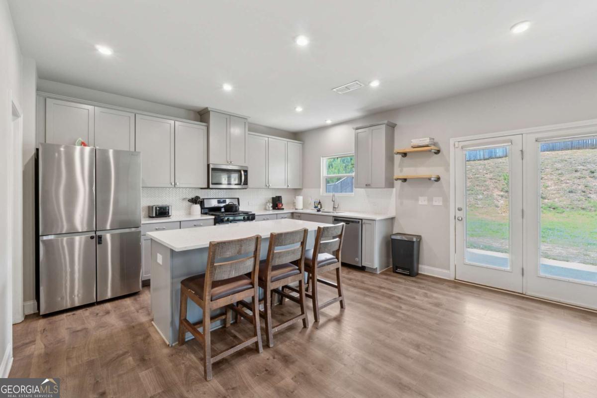 Welcome to this beautifully upgraded and energy-efficient 5 bedroom, 3 bathroom home nestled in the heart of Acworth, GA and just built in 2020. Situated on a premium, level lot, this residence boasts over 2,300 square feet of thoughtfully designed open concept living space, complete with more than $50,000 in upgrades. From the moment you arrive, you'll be impressed by the inviting curb appeal, highlighted by a charming front porch and a two-car garage. Step inside to discover luxury vinyl plank flooring throughout the main level, and a bedroom or dedicated office space ideal for remote work or quiet study on the main level. The open floor plan effortlessly connects the living, dining, and kitchen areas, creating an ideal space for entertaining. The cozy family room is centered around an upscale fireplace flanked by custom built-in shelving and topped with a beautiful wood mantle. The chef-inspired kitchen is a true showstopper, featuring an oversized island, white cabinetry, quartz countertops, stainless steel Whirlpool and KitchenAid appliances, a white subway tile backsplash, and stylish fixtures. A spacious dining area flows to the covered back patio, perfect for relaxing evenings or weekend gatherings. Upstairs, a large loft offers flexible living space for a media room, playroom, or secondary family area. Generously sized secondary bedrooms and a full bathroom with double vanities and a tub/shower combo ensure comfort and convenience for family or guests. The oversized primary suite is a peaceful retreat, complete with a spa-like ensuite featuring double vanities, a soaking tub, a frameless glass shower, and a large walk-in closet. Additional highlights include a fully fenced backyard, updated lighting throughout, and thoughtful design details at every turn. Built with energy efficiency in mind, this Energy Star and EPA Indoor AirPlus certified home. Located just minutes from top-rated schools, shopping, dining, parks, and trails, this move-in ready home is a rare find in a prime Acworth location. Brookstone Golf & Country Club offers optional Swim/Tennis membership for residents of Brookstone West along with swim team, onsite restaurant and pickleball courts. Top rated amenities at your convenience-making this not just a home, but a lifestyle. Top rated schools await you. Just minutes to Downtown Acworth, Lake Allatoona and Lake Point Sports Complex. YMCA just 10 minutes away. Pitner Park just around the corner with mountain bike trails and walking trails.