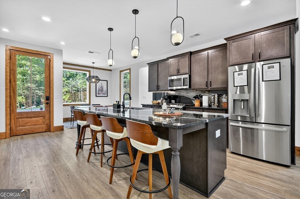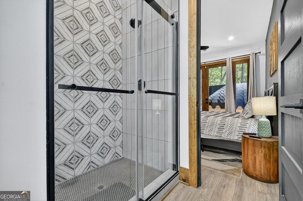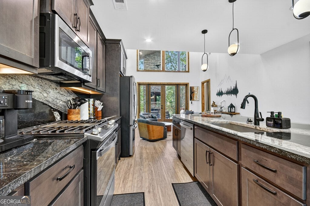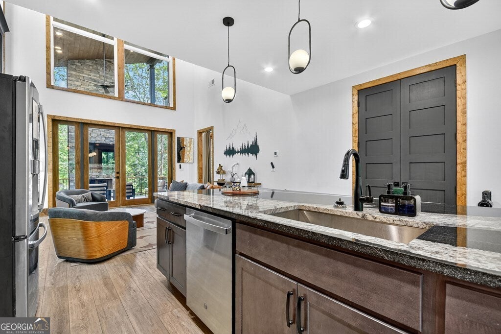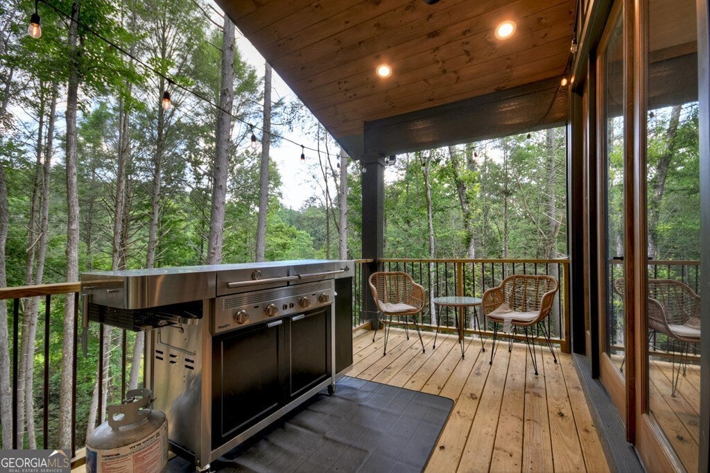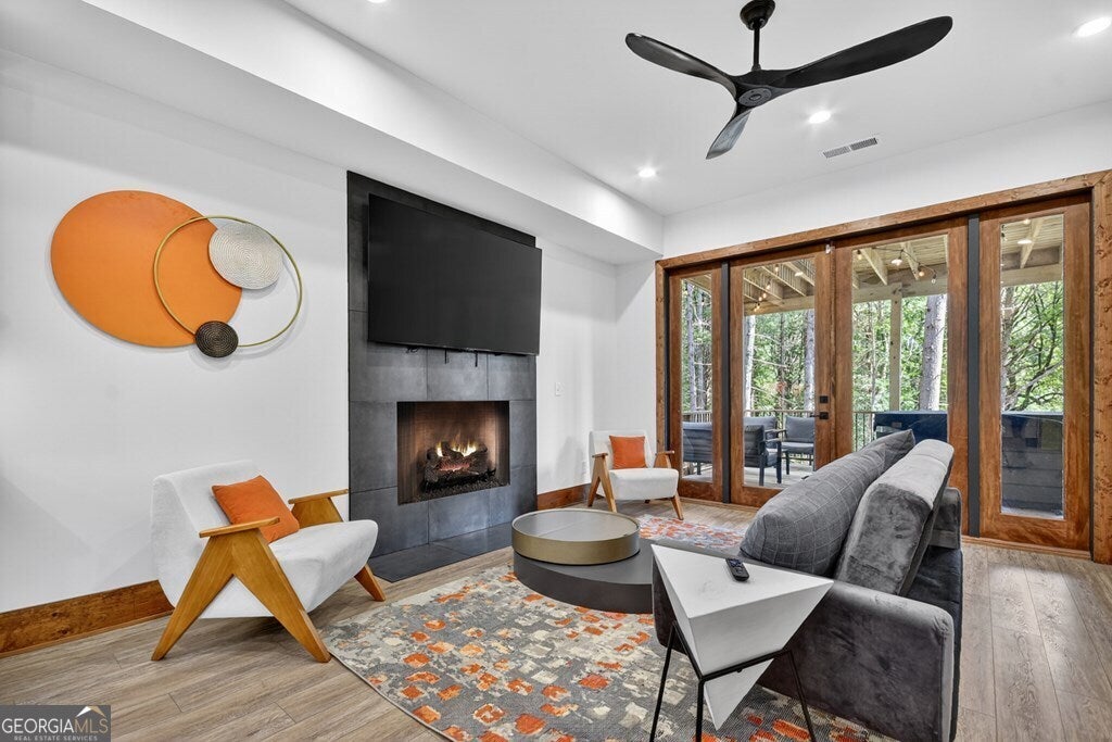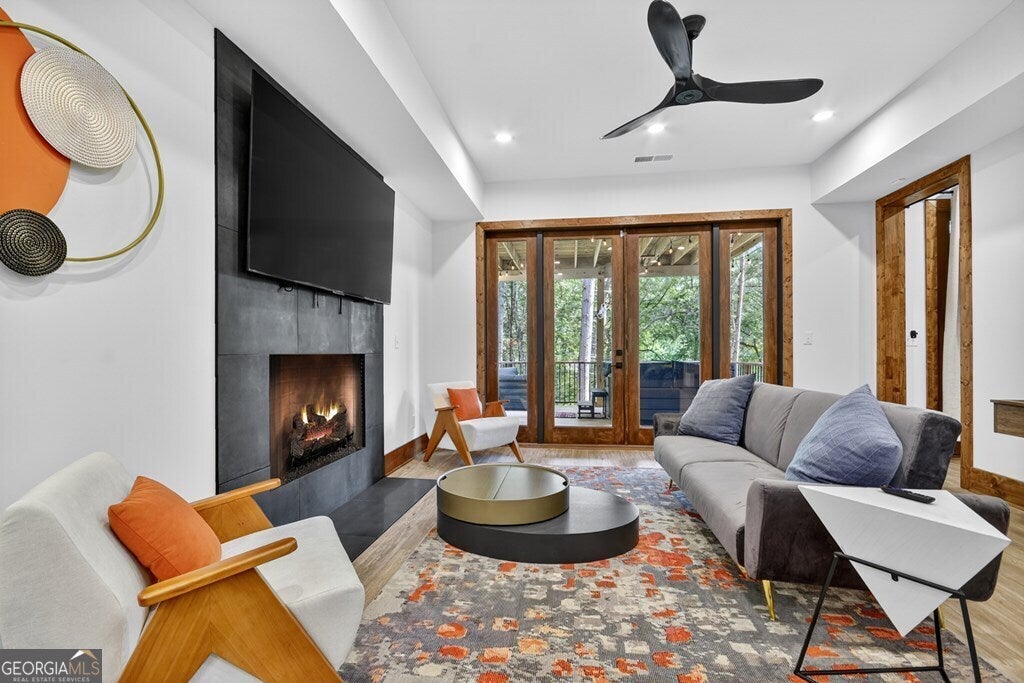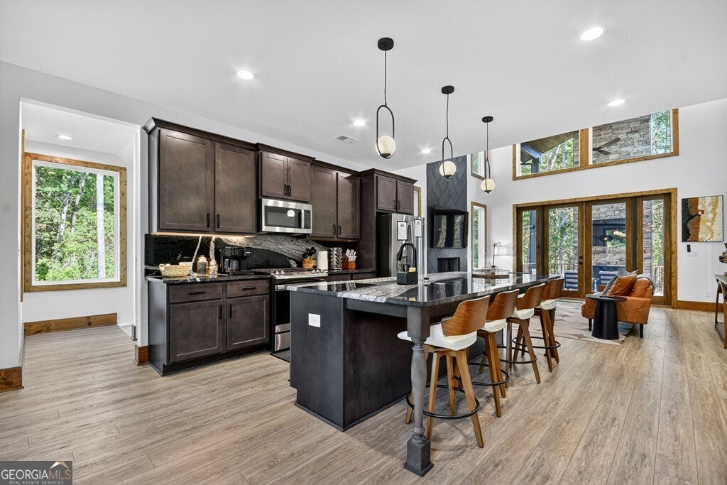 YOUR CREEK FRONT MOUNTAIN OASIS ~ This contemporary 4BR, 3.5 mountain home is nestled in the heart of the Aska Adventure Area near the Toccoa River, Lake Blue Ridge, hiking & mtn. biking trails, trophy trout fishing, thousands of U.S.F.S protected wilderness surrounding & more. Situated on 2.15 beautiful wooded acres overlooking & listening to the cascading creek frontage below totaling 565' of frontage. Custom luxury finishes throughout including gourmet kitchen, custom cabinetry, custom walk in tile showers, stainless appliances, custom lighting & plumbing fixtures & more. All BR's are ensuites w/ upstairs ensuite featuring add. Sitting/office area. Open easy living floor plan that features large island/bar in kitchen offering workspace & seating great for entertaining. Soaring cathedral ceilings throughout w/ lots of glass & windows allowing you to enjoy the great outdoors. Modern style gas log fireplace in the main level living room & in basement Rec Rm/Den in addition to outdoor fireplace on porch overlooking this picture perfect setting. Two levels of covered porches on front of home w/ terrace level porch featuring hot tub & sauna. Finished basement features additional living quarters with 2 BR's & BA with Rec Rm/Den & complete custom wet bar that is a show stopper! Great location for future garage w/ lots of parking on all paved road frontage
