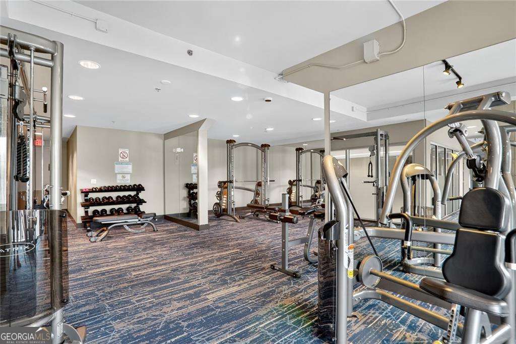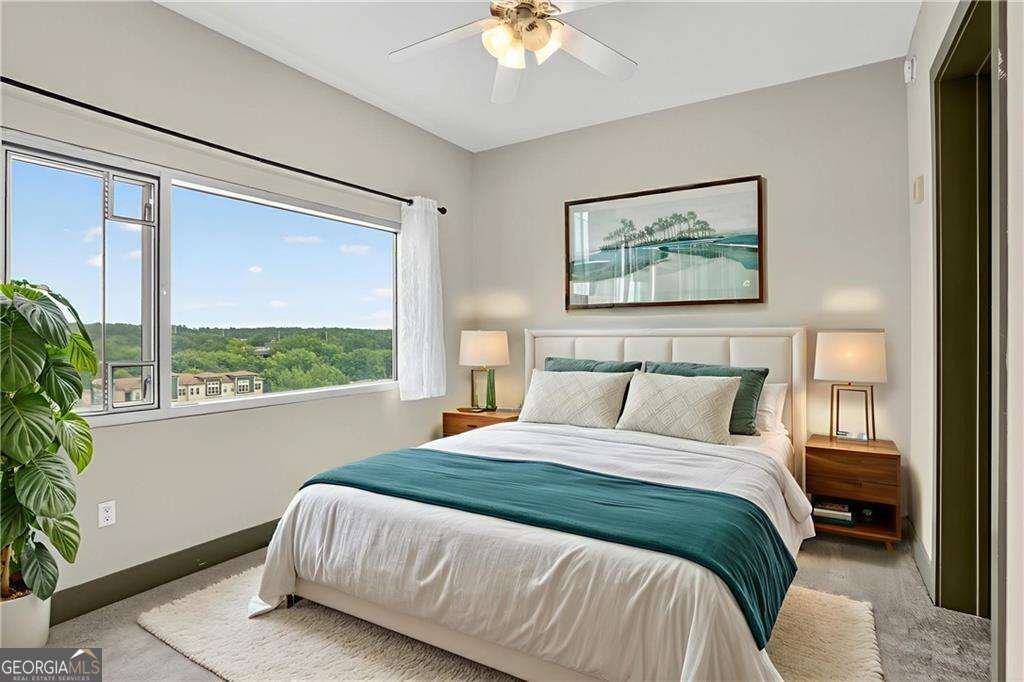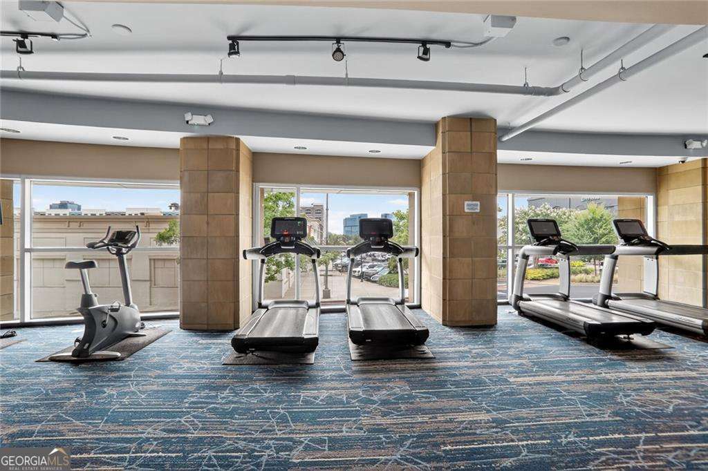 Live above it all in this 12th-floor condo at The Manhattan - a full-service building offering resort-style amenities and unbeatable convenience. **THIS UNIT COMES WITH A TRANSFERABLE LEASE PERMIT. TENANT MUST BE SECURED NO LATER THAN 9/9/25** This home features hardwood floors, a carpeted bedroom with generous walk-in closet, abundant natural light, and generous space for both living and dining areas. Enjoy a cup of coffee or evening cocktail on your private balcony with views overlooking the 8th-floor dog park, tennis/pickleball court, and outdoor garden with grilling stations. The kitchen features stainless steel appliances and an in-unit laundry adds everyday ease. One assigned garage parking space is BEDROOM CARPET AND WATER HEATER NEW IN 2025. Just outside your door, enjoy The Shops at Ashford Lane with its restaurants/shops and community events like farmer's and artisan markets, Politan Row Food Hall, and SuperTarget. Perimeter Mall and MARTA are right around the corner, and you're minutes from GA-400, I-285, St. Joseph's, Northside and Scottish Rite Hospitals. The Manhattan offers 24/7 concierge service and an incredible lineup of amenities: guest suite, pool, fitness center, club room, golf simulator, dog park, tennis/pickleball, and the stunning 27th-floor Sky Lounge with sweeping city views. More than just a condo - it's a lifestyle.