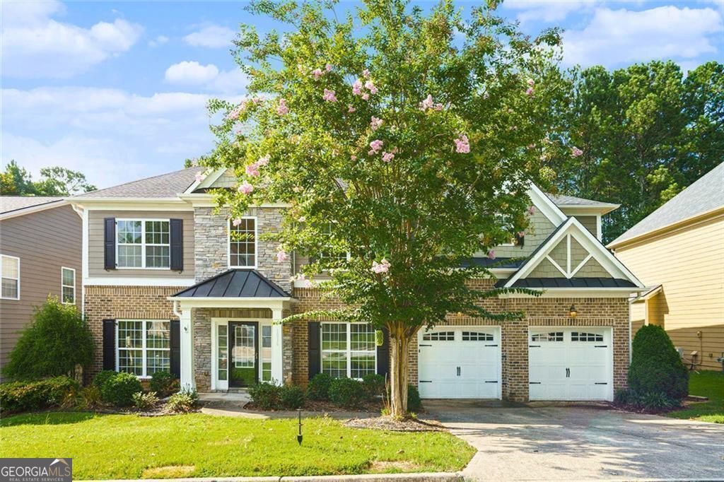 As you enter, you're greeted by stunning open concept space with formal dining room/ office, perfect for working from home, along with an additional versatile room that can serve as a family room. The main floor also features a dining room, a bright kitchen with quartz countertops, timeless cabinetry, stainless steel appliances, and a cozy breakfast area. A large living room completes the main level, offering plenty of space to relax and entertain! Beautiful hardwood floors run throughout the majority of the main level, and the great room with a fireplace adds warmth and charm. The sunroom overlooks the private backyard and the stunning golf course, providing a peaceful retreat. Upstairs, you'll find four bedrooms, including an oversized primary suite with a sitting area that offers a private sanctuary. With 3.5 baths throughout the home, there's ample space for family and guests! Mirror Lake offers an exceptional lifestyle with 36 holes of award-winning golf, multiple swimming pools, and a 96-acre lake perfect for fishing, kayaking, and canoeing. Enjoy pickleball and tennis courts, plus nearby Gold Mine City Park, all just 3 minutes from I-20. This home perfectly blends comfort, style, and an unbeatable location within a vibrant golf course community! Qualifies for up to $22,500 in down payment and closing cost assistance with preferred lender! FULL CARPET REPLACEMENT CREDIT BEING OFFERED WITH ACCEPTABLE OFFER!