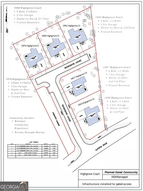 1992 Highgrove Court - Custom Executive Home | Now Available | Completion March 2026 Welcome to 1992 Highgrove Court, an exclusive opportunity to own a luxury executive residence in a boutique enclave of just five custom homes in Atlanta's highly sought-after 30345 zip code. Now available for presale, this sophisticated home will be completed in Q4 2025, and early buyers can tailor finishes and floorplan options. All photos are conceptual renderings. This 3-level, 6-bedroom residence features over 4,730 sq. ft. above grade with an optional finished basement that can expand total living space to 7,000+ sq. ft., including a potential 7th bedroom and full bath, media room, second kitchen, or wine cellar. Highlights include: * 6 generous bedrooms, including dual primary suites (main & upper level) with spa-style baths * 5.5 full bathrooms, with curated finishes * Chef's kitchen featuring Wolf appliances, Cove dishwasher, oversized island, walk-in pantry, and butler's galley with wine fridge * Expansive open-concept living and dining spaces ideal for entertaining * Dedicated flex rooms for gym, home office, study, library or art studio * Covered outdoor porch on main for year-round enjoyment, and walkout basement porch * 3-car garage, pre-wired for EV charging * State-of-the-art Ring security system with floodlights, perimeter lighting, and pre-wired for future gating for community privacy Situated on a large lot in the Highgrove Court Subdivision (Lot 3, 0.43 acres), this home offers security, serenity, and space. Professionally landscaped with optional smart irrigation and exterior lighting. Community park area for neighborhood gatherings, etc. Located minutes from Emory University & Hospitals, CHOA, CDC, and VA Medical Center. Quick access to Midtown, Buckhead, Decatur, I-285 & I-85, and Hartsfield-Jackson Airport. Only five homes will be built. This is a rare opportunity to create your dream home in one of Atlanta's most connected, prestigious, and executive neighborhoods.