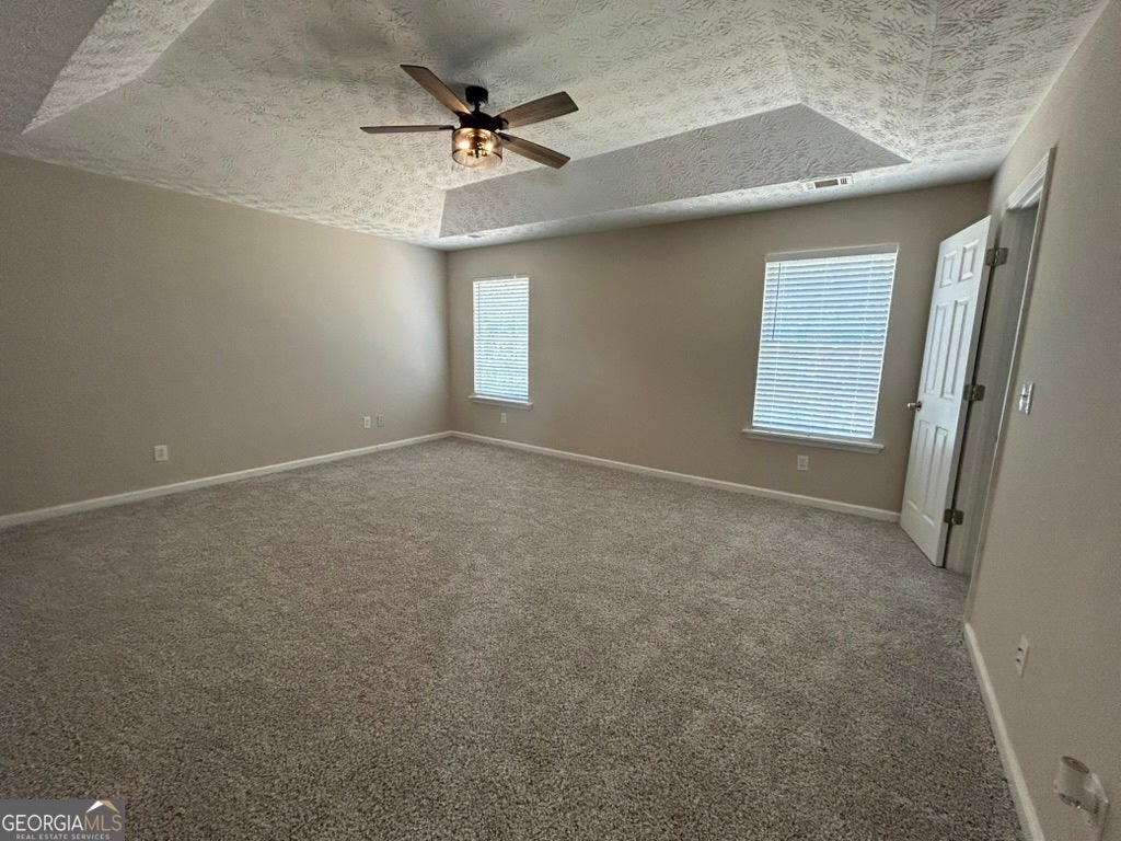 - Interior FeaturesPulldown Attic Stairs, Soaking Tub, Tray Ceiling(s), Walk-In Closet(s), High Ceilings, Two Story Foyer, Separate Shower, Split Bedroom Plan, Tile Bath