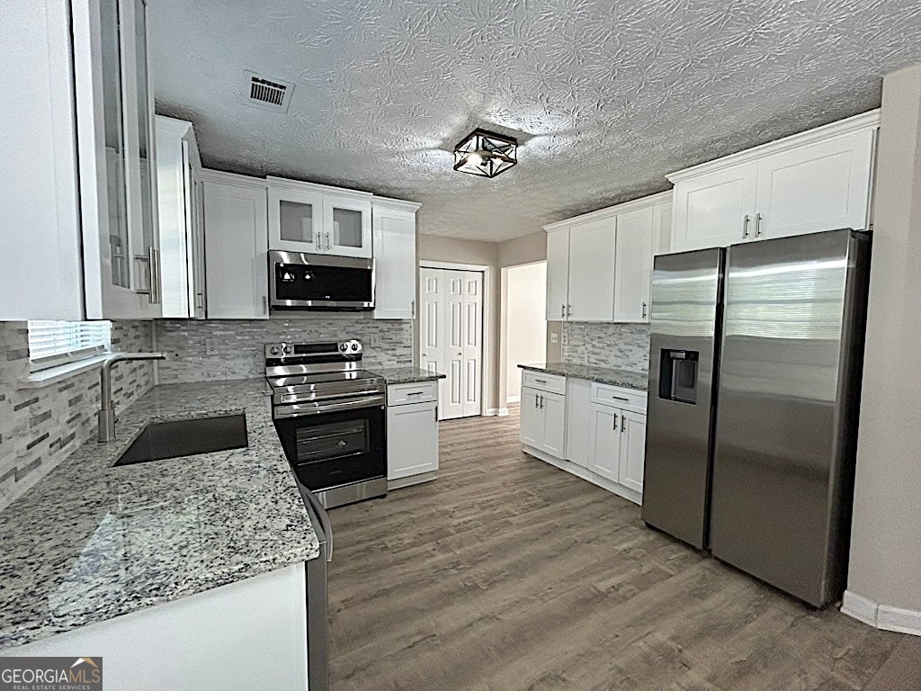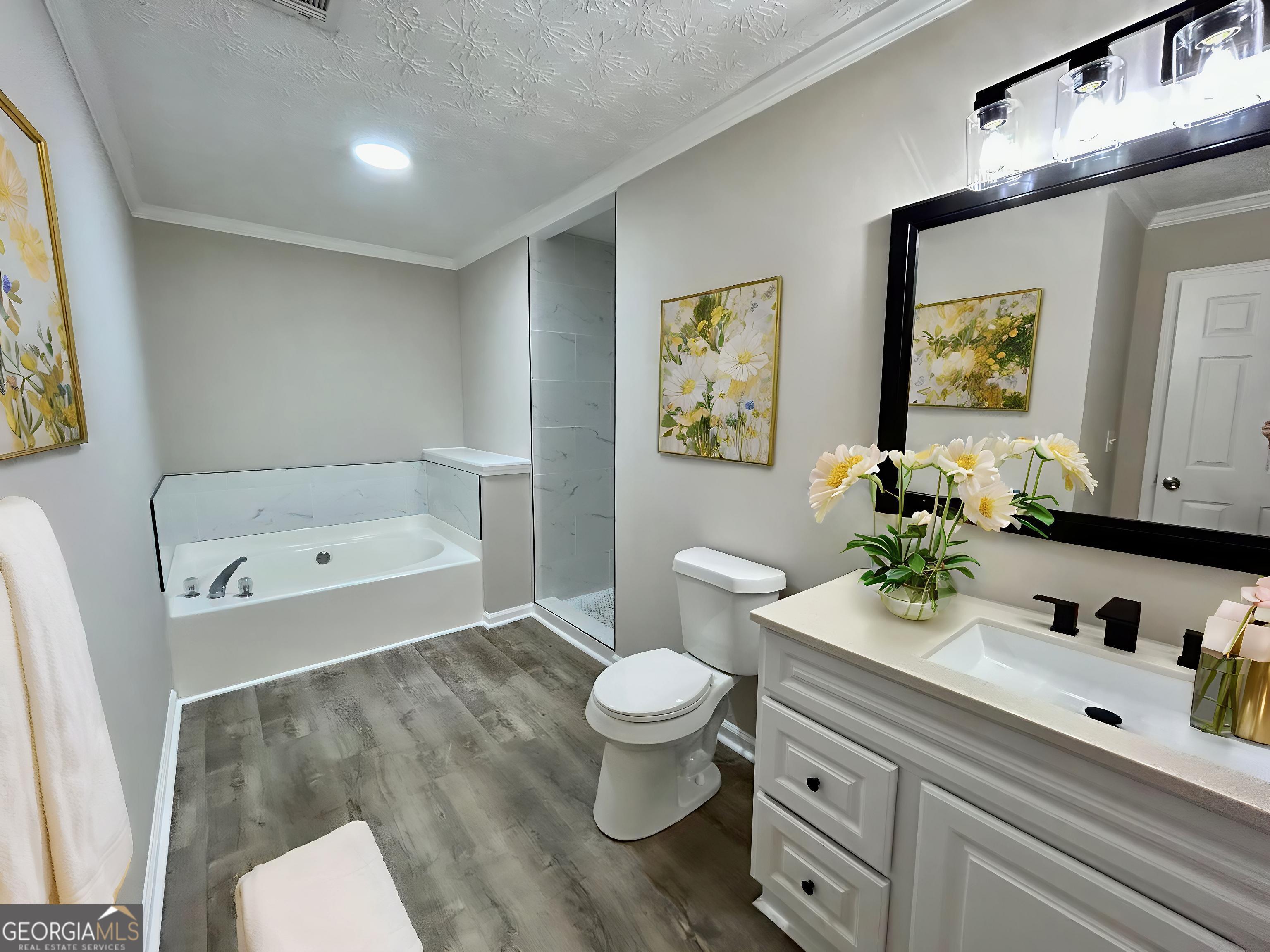 Beautifully renovated home in a very nicely kept neighborhood. The 'new' includes interior and exterior paint and landscaping. The 'all new' kitchen includes cabinets (some with glass doors) and stainless steel appliances including refrigerator. All the baths have new vanities, light fixtures, and the primary bath includes a soaking tub and newly tiled walk-in shower. There's new lush carpet in all the bedrooms and luxury vinyl everywhere else. And yes, there's plenty of storage, too. There's a nook at the top of the stairs that will be perfect for a small study desk and lamp. Be the first to live in this like new home. Some rooms are virtually staged to assist you in imaging this home to be yours.