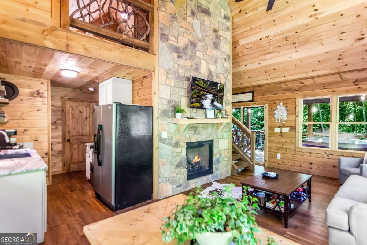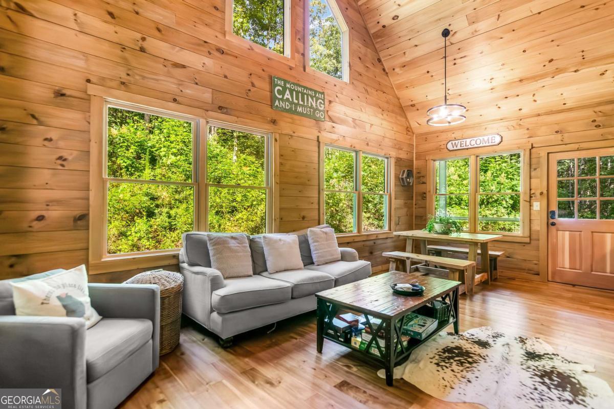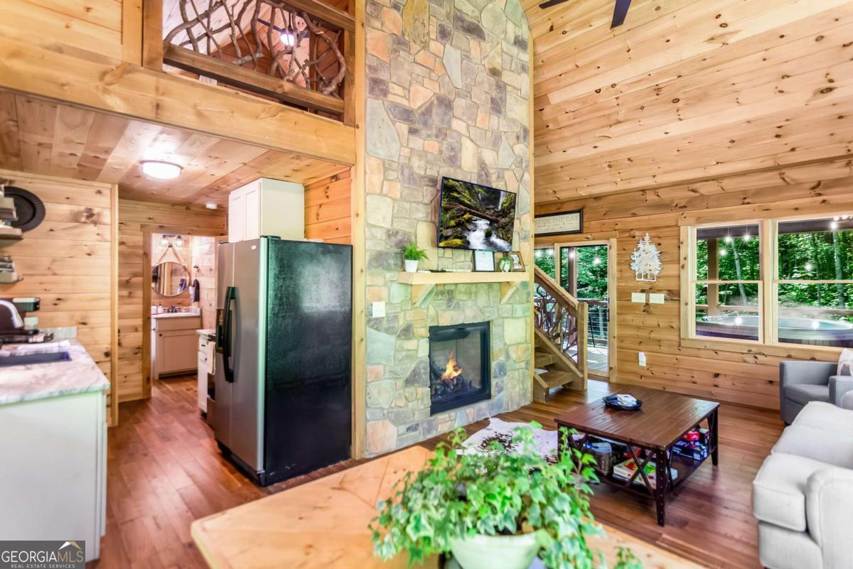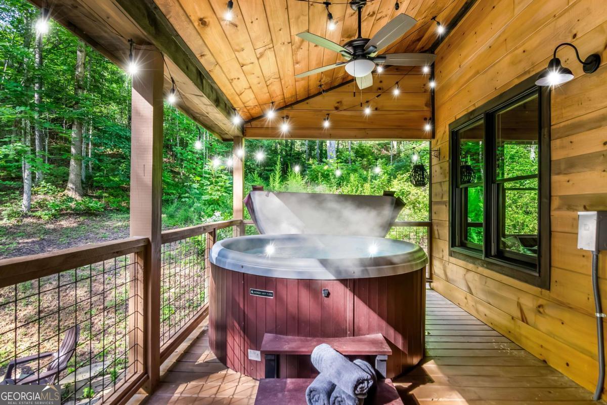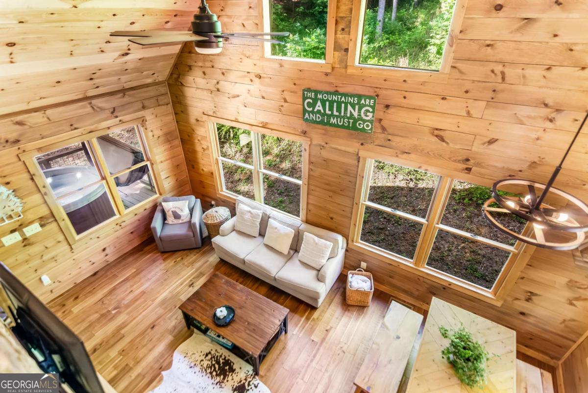 Escape to the heart of Blue Ridge in this charming 2-bedroom, 1-bathroom cabin nestled in the desirable Mountain Tops neighborhood-just minutes from downtown yet surrounded by nature for that perfect blend of convenience and seclusion. Excellent rental history ---grossed $66K last year. This well-maintained cabin offers incredible privacy, ideal for peaceful mornings on the porch and relaxing evenings under the stars. Inside, you'll find a warm and inviting living area with vaulted ceilings, rustic wood finishes, and a gas log fireplace-perfect for curling up on cool mountain nights. The open-concept kitchen and dining area are ideal for cozy meals or entertaining guests. Step outside to your private hot tub and soak your cares away while taking in the fresh mountain air. Additional features include: Fully furnished interior with charming cabin decor-- Spacious covered porch for year-round enjoyment --Level, easy-access lot with ample parking. Whether you're looking for a full-time residence, a mountain escape, or a rental investment, this cabin is a rare find in one of Blue Ridge's most established neighborhoods. SOLD FURNISHED! Don't miss your chance to own a slice of mountain paradise!