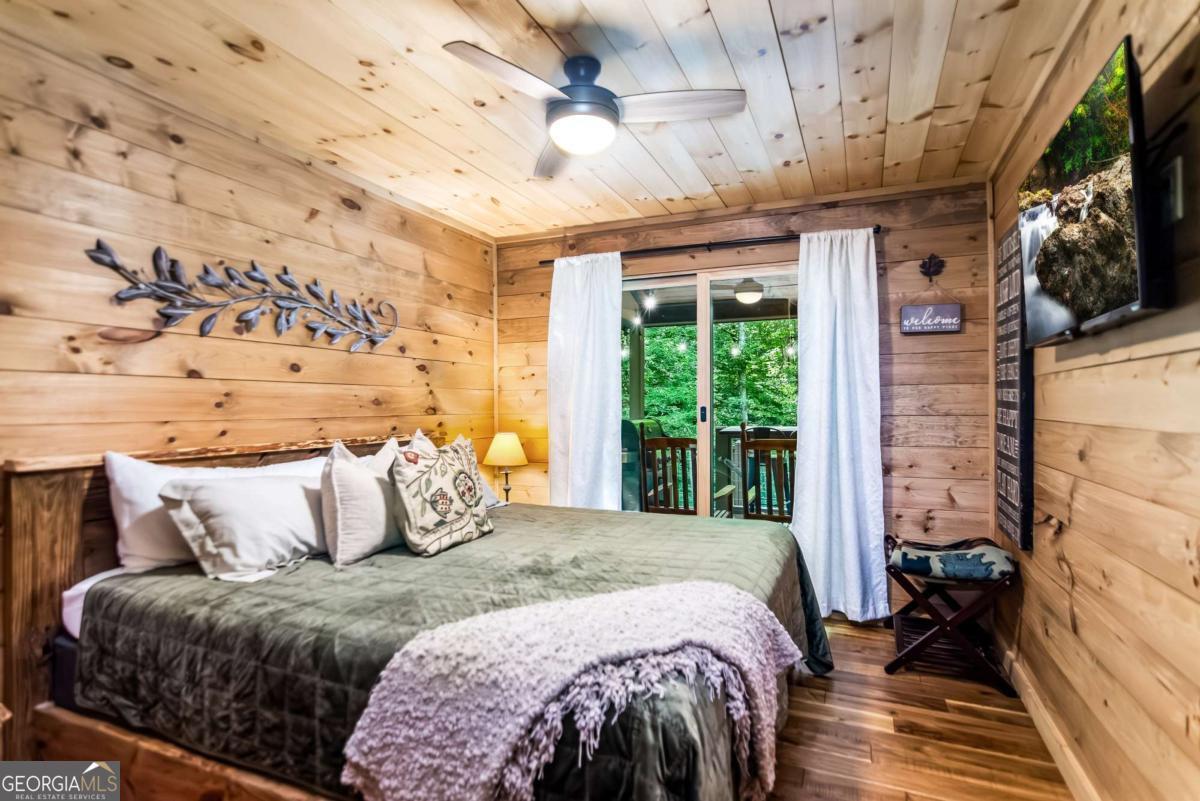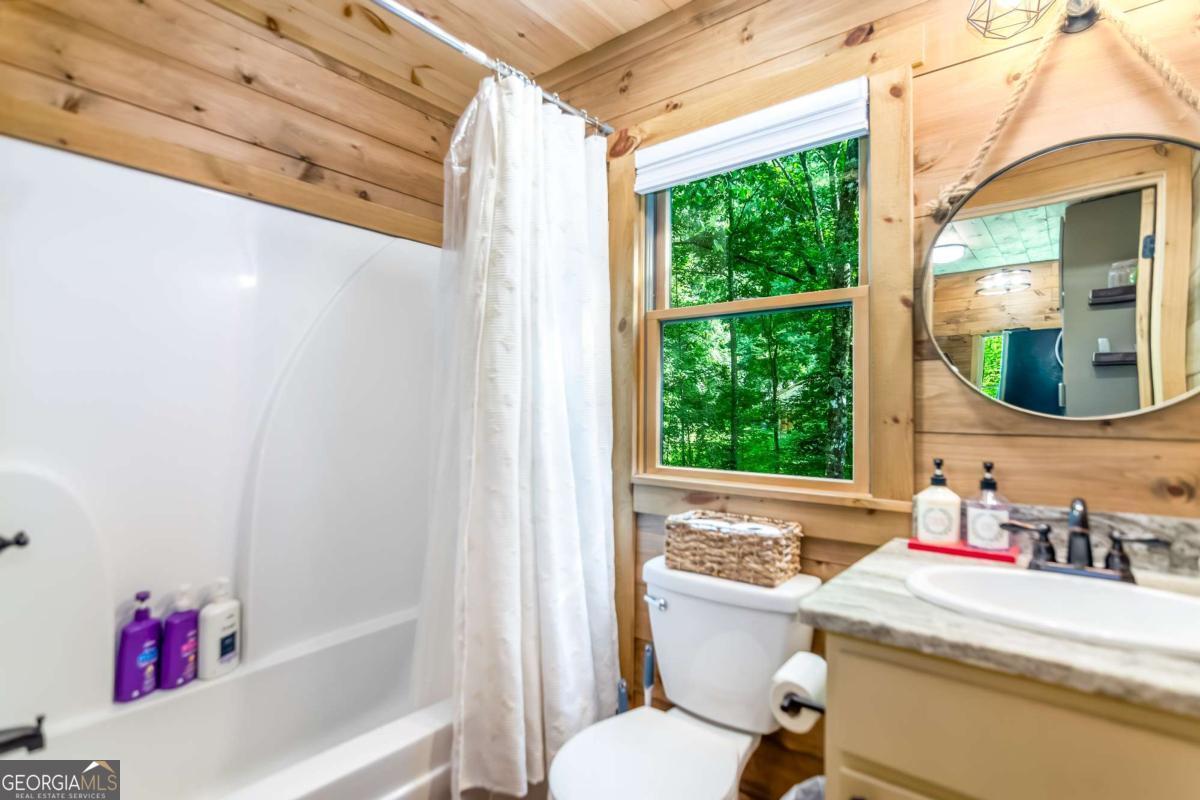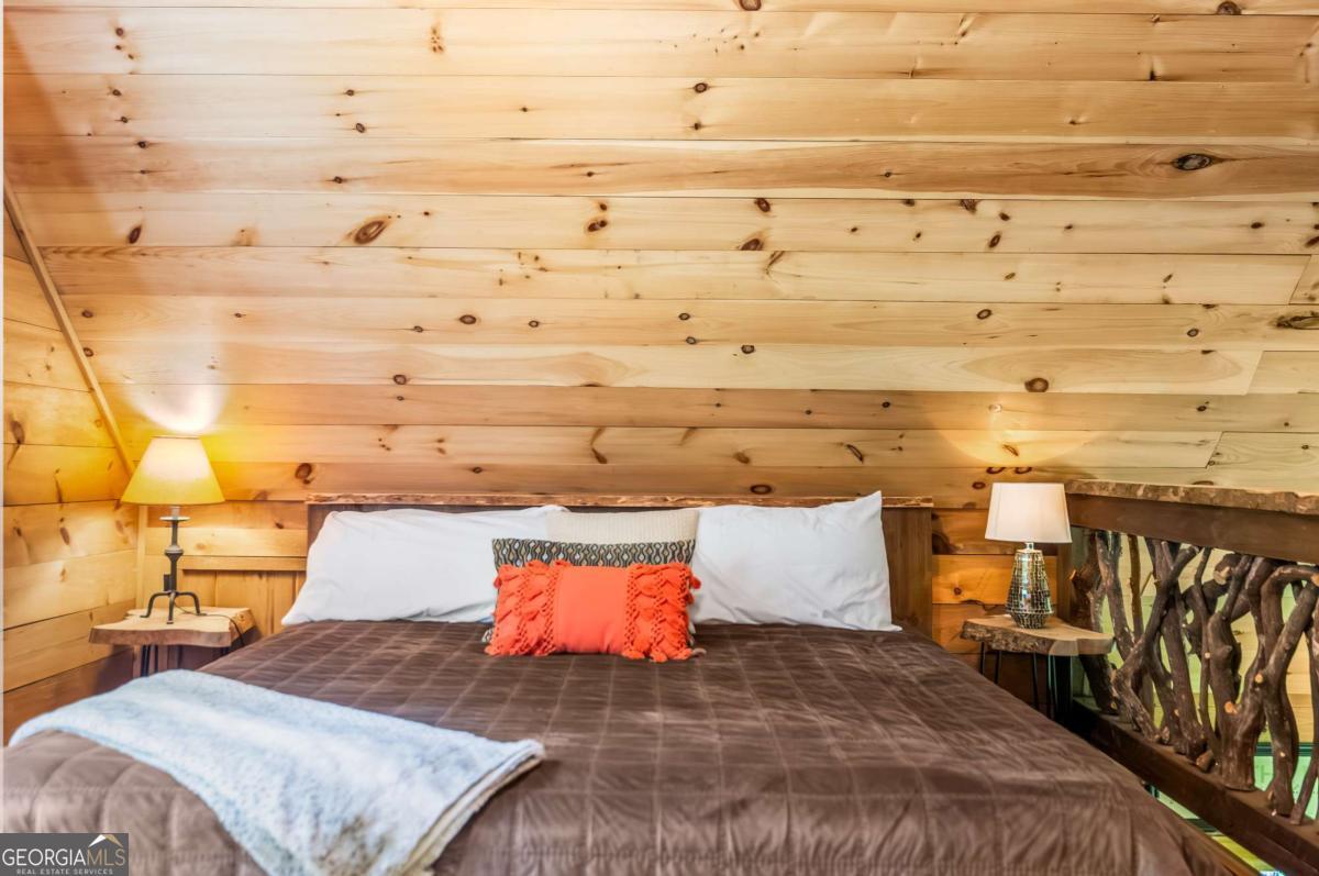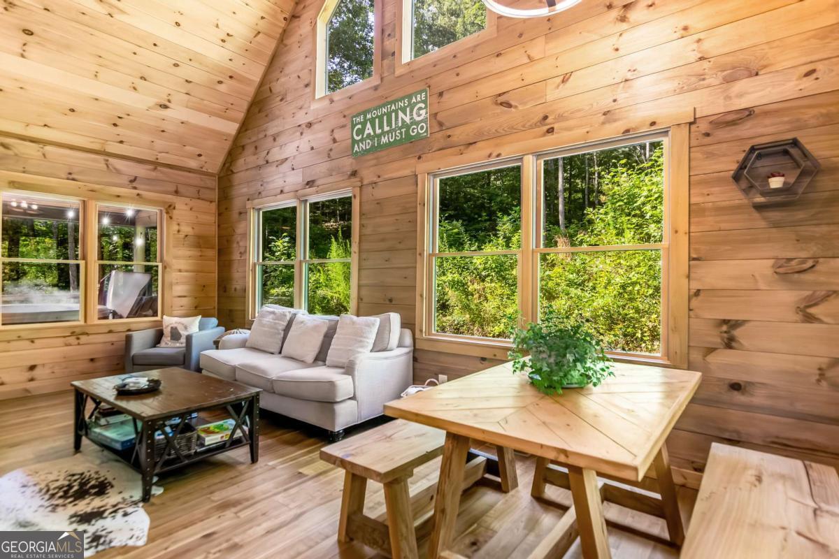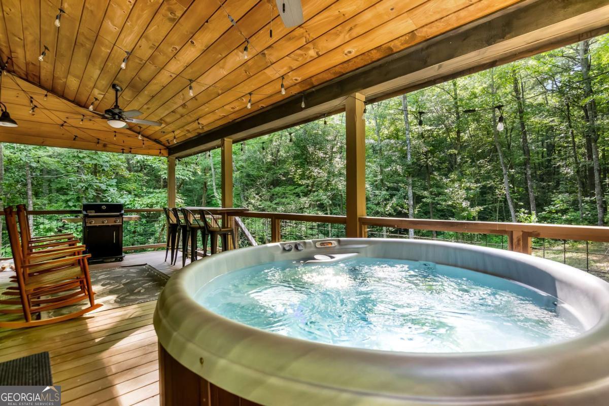 Escape to the heart of Blue Ridge in this charming 2-bedroom, 1-bathroom cabin nestled in the desirable Mountain Tops neighborhood-just minutes from downtown yet surrounded by nature for that perfect blend of convenience and seclusion. Excellent rental history ---grossed $66K last year. This well-maintained cabin offers incredible privacy, ideal for peaceful mornings on the porch and relaxing evenings under the stars. Inside, you'll find a warm and inviting living area with vaulted ceilings, rustic wood finishes, and a gas log fireplace-perfect for curling up on cool mountain nights. The open-concept kitchen and dining area are ideal for cozy meals or entertaining guests. Step outside to your private hot tub and soak your cares away while taking in the fresh mountain air. Additional features include: Fully furnished interior with charming cabin decor-- Spacious covered porch for year-round enjoyment --Level, easy-access lot with ample parking. Whether you're looking for a full-time residence, a mountain escape, or a rental investment, this cabin is a rare find in one of Blue Ridge's most established neighborhoods. SOLD FURNISHED! Don't miss your chance to own a slice of mountain paradise!