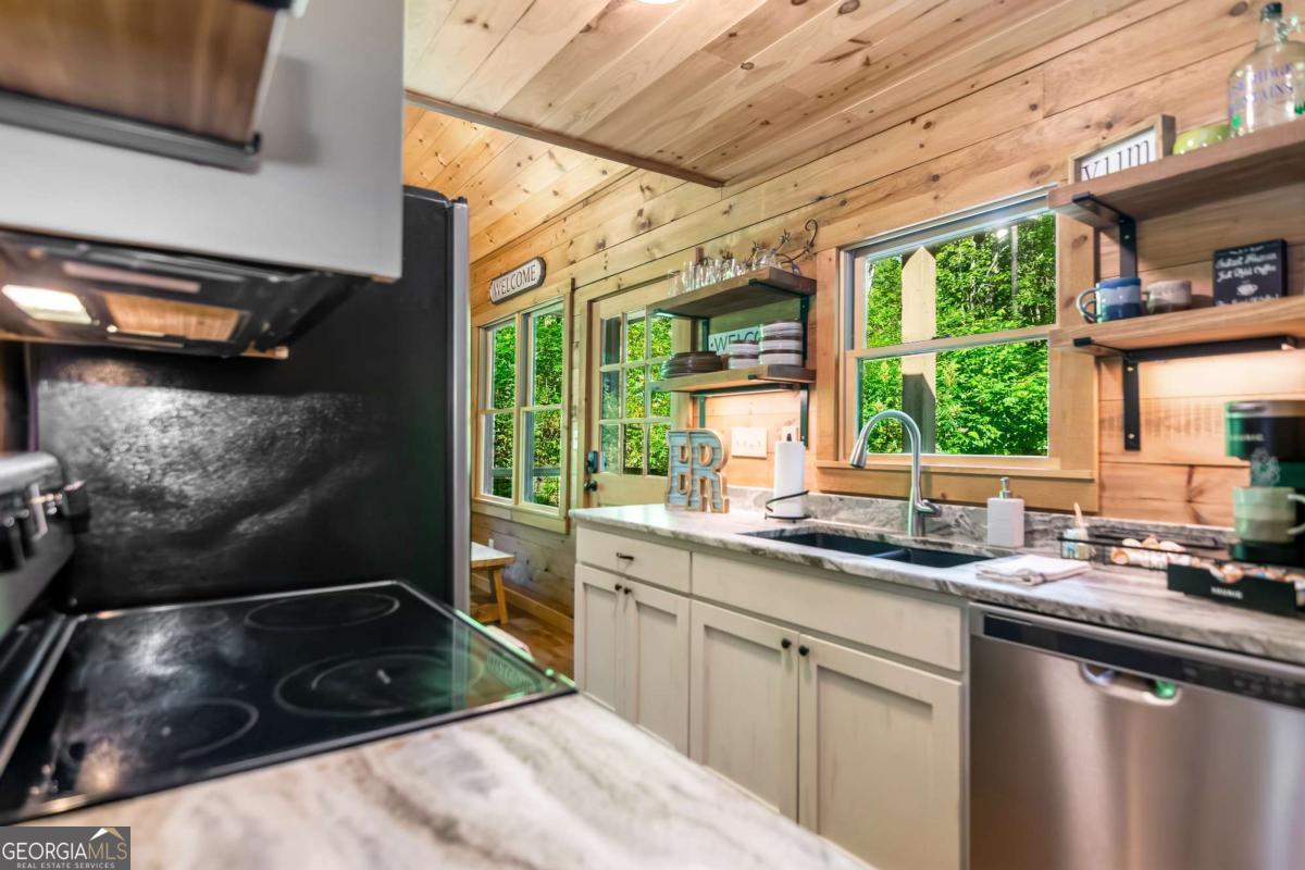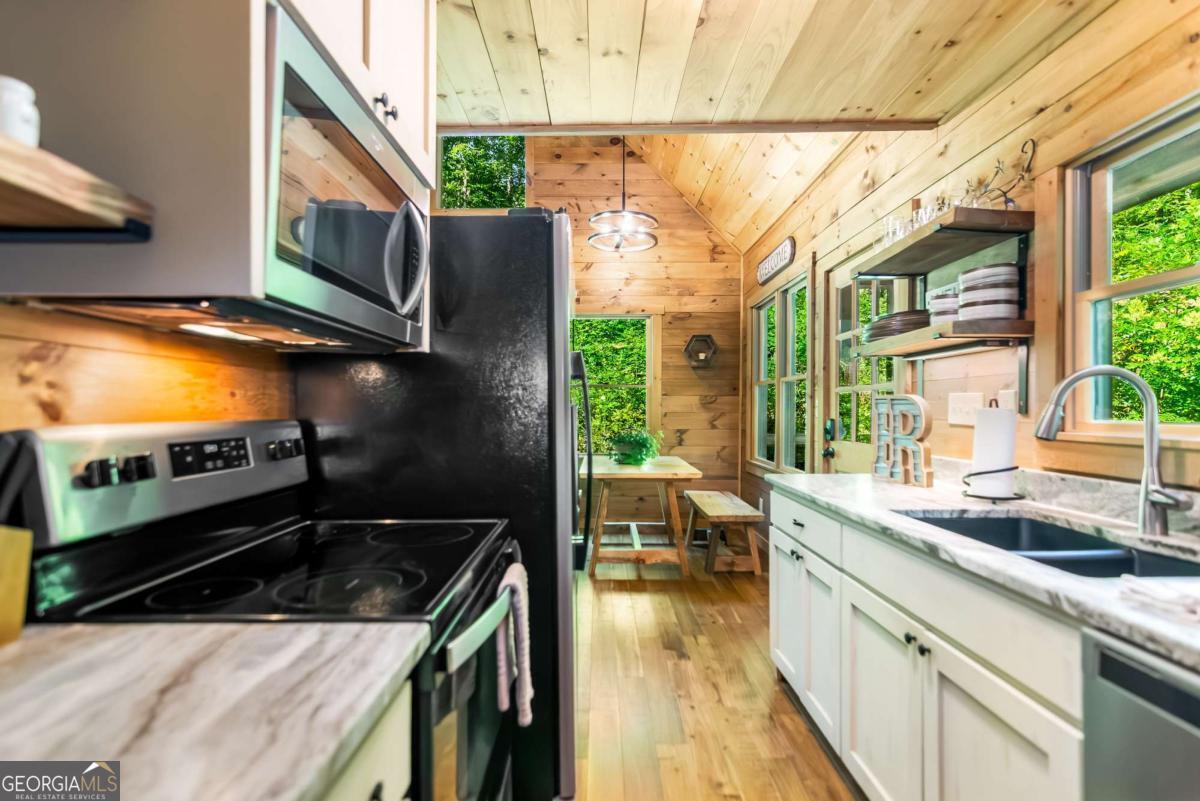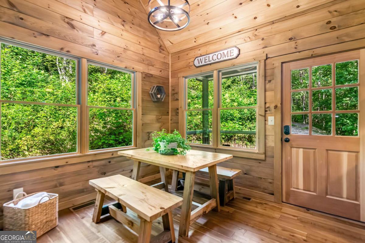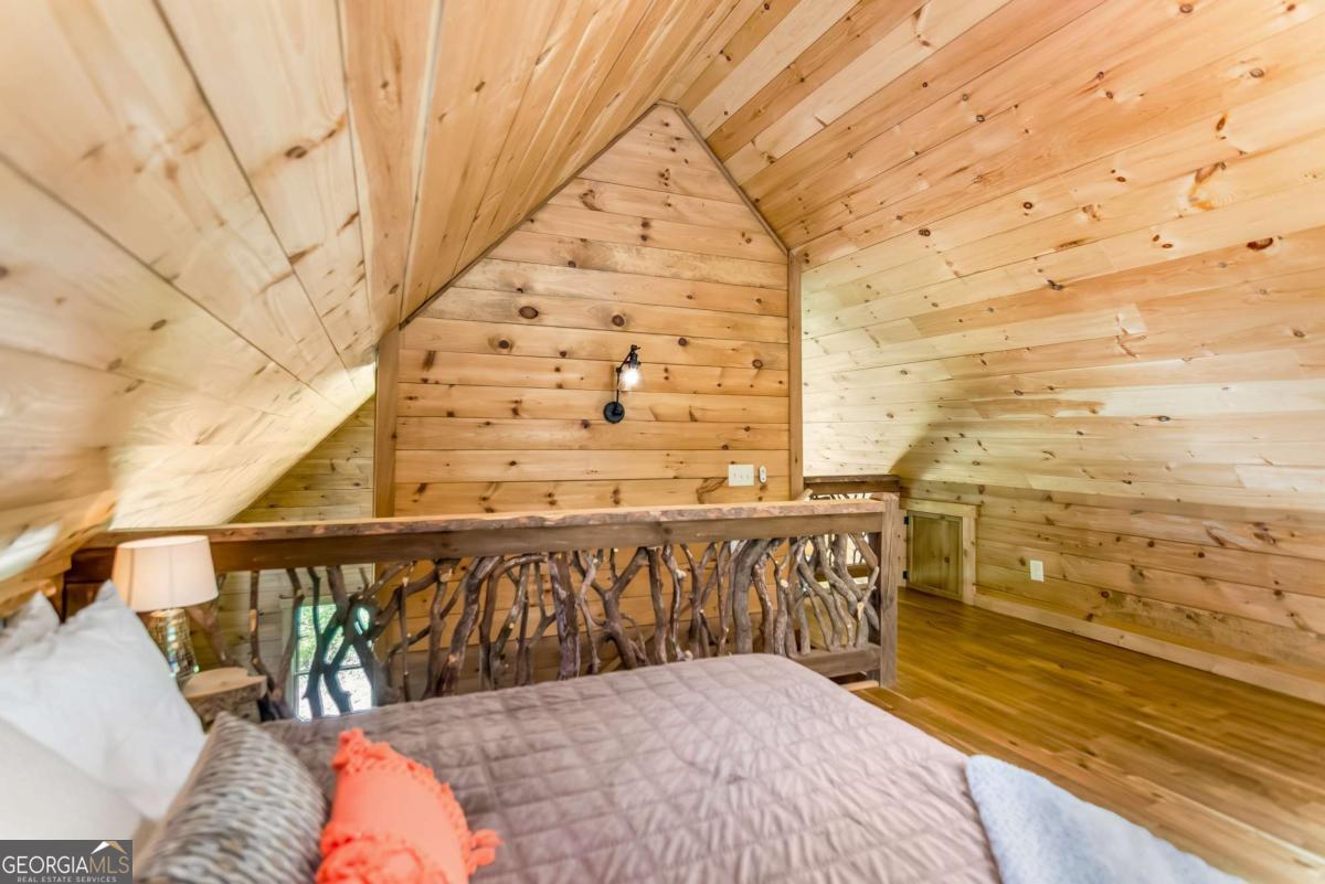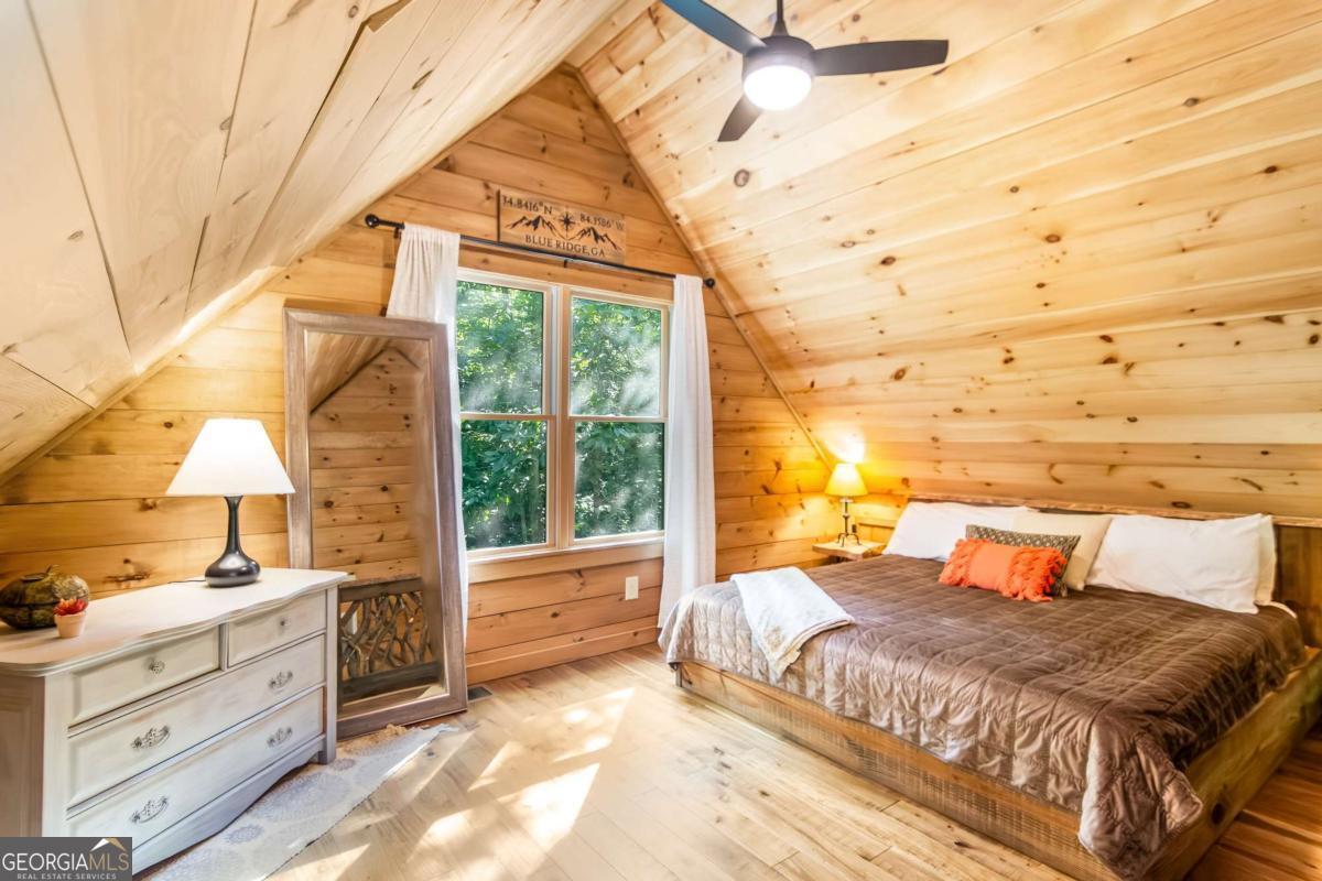 Escape to the heart of Blue Ridge in this charming 2-bedroom, 1-bathroom cabin nestled in the desirable Mountain Tops neighborhood-just minutes from downtown yet surrounded by nature for that perfect blend of convenience and seclusion. Excellent rental history ---grossed $66K last year. This well-maintained cabin offers incredible privacy, ideal for peaceful mornings on the porch and relaxing evenings under the stars. Inside, you'll find a warm and inviting living area with vaulted ceilings, rustic wood finishes, and a gas log fireplace-perfect for curling up on cool mountain nights. The open-concept kitchen and dining area are ideal for cozy meals or entertaining guests. Step outside to your private hot tub and soak your cares away while taking in the fresh mountain air. Additional features include: Fully furnished interior with charming cabin decor-- Spacious covered porch for year-round enjoyment --Level, easy-access lot with ample parking. Whether you're looking for a full-time residence, a mountain escape, or a rental investment, this cabin is a rare find in one of Blue Ridge's most established neighborhoods. SOLD FURNISHED! Don't miss your chance to own a slice of mountain paradise!