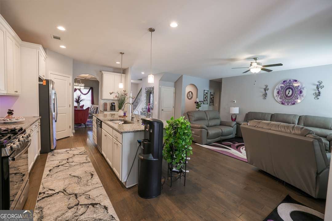 PREFERRED LENDER INCENTIVES OFFERED! Contact for details today. WELCOME HOME! Embrace the perfect balance of comfort, convenience, and tranquility in this stunning 6-year-old craftsman-style home with many upgrades, settled on a peaceful cul-de-sac lot. This home features 5 bedrooms, 3 bathrooms, engineered flooring, stainless steel appliances and covered screened-in porch equipped with built in fireplace, and custom shades for your comfortable outside enjoyment. Step inside and be captivated by the spaciousness and charm that defines this craftsman gem. The open floor plan seamlessly connects the living areas, creating an inviting space for family gatherings and entertaining friends. Imagine cozy evenings spent by the fireplace, creating memories that will last a lifetime. The kitchen is a chef's culinary dream, equipped with top-of-the-line appliances, ample counter space, and oversized center island perfect for preparing delicious meals and entertainment. Home is equipped with an EcoWater system and water purification system only in kitchen with dedicated drinking fountain. Create memories that will last a lifetime as you gather in this warm home filled with elegance. The backyard boasts a beautifully maintained lawn offering ample space for outdoor games and activities, making it an ideal space for entertainment. Located in close proximity to excellent schools, stores, restaurants, and the easily accessible I-85, making your daily commute and errands bearable. At the end of a busy day, retreat to the peacefulness of your cul-de-sac haven, comfortable backyard living space and tranquility. Please use supplied shoe coverings during tour of this immaculate home.