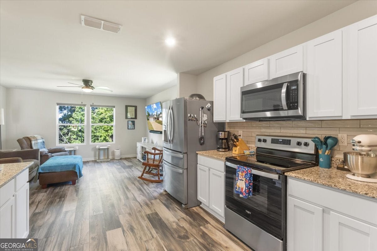 PRICE IMPROVEMENT & Priced to SELL FAST on this ALMOST NEW Macon Gem! This beautiful home is just 2 years old and perfectly blends modern finishes with low-maintenance living. Located in a quiet cul-de-sac, this move-in-ready beauty is ideal for families, first-time buyers, or anyone seeking comfort and convenience! Step inside to find no carpet throughout-easy-to-clean flooring flows seamlessly from room to room. The open-concept living area is warm and inviting, perfect for entertaining or relaxing after a long day. Enjoy spacious bedrooms, a sleek kitchen with plenty of cabinet space, and two full bathrooms designed for modern living. Updated features include: updated, modern ceiling fans, outdoor, motion activated lighting, eave lights around perimeter of home, HVAC additions, surround sounds in living room, and home security system. The backyard overlooks a tree line providing privacy and is ready for summer cookouts, playtime, or peaceful evenings under the stars. Don't miss your chance to own a nearly-new home with thoughtful extras in a growing area of Macon. Schedule your private showing today! Verify schools.