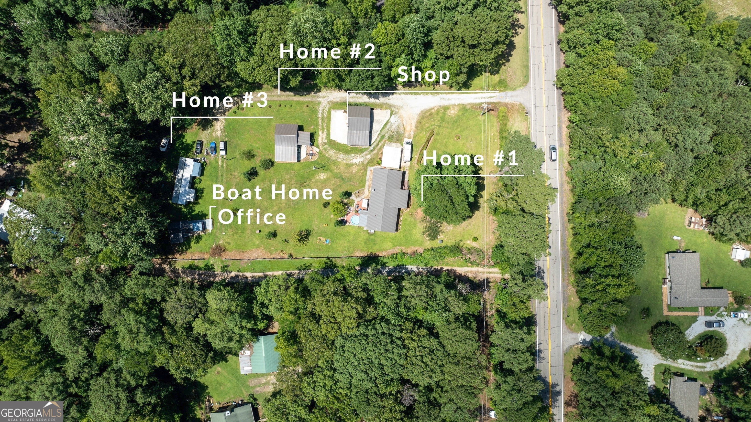 FANTASTIC INVESTMENT PROPERTY Or Could Make A Great Family And/Or Friends Compound In Northeast Heard County On A 1.7 Acre Lot!! Currently all units are rented on a month to month basis and are bringing in a gross monthly income of $3,200!! There is a 22 X 22 detached double garage/shop with a lean to, a concrete slab for a camper. Modular Home #1 has 4 bedrooms and 2 Full Baths with a vaulted Family Room with LVP hardwood flooring, Keeping Room with LVP hardwood flooring with a non-working fireplace with marble surround. Dining Room with LVP hardwood flooring, Sunroom, screened porch with deck on the back. 2 car metal detached carport. The Cottage Home #2 has 1 Bedroom and 1 Full Bathroom with a den and a screened porch! Mobile Home #2 has 2 bedrooms and 1 full bathroom with a family room and a covered front porch. There is also a boat house/office that has a kitchenette/den combo, a full bath & what could be a possible bedroom that is not currently rented. Don't miss out on this rare find in the top rated schools in Georgia!!