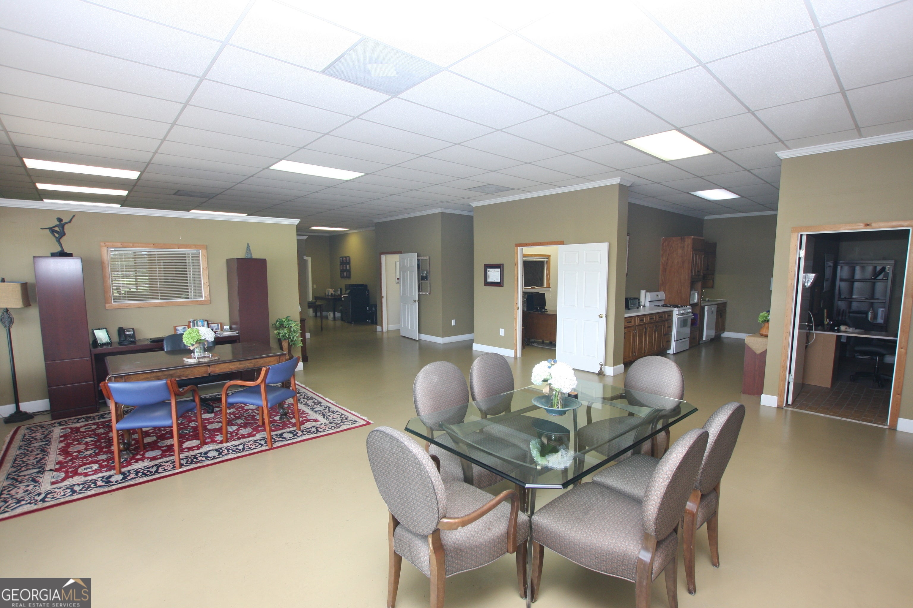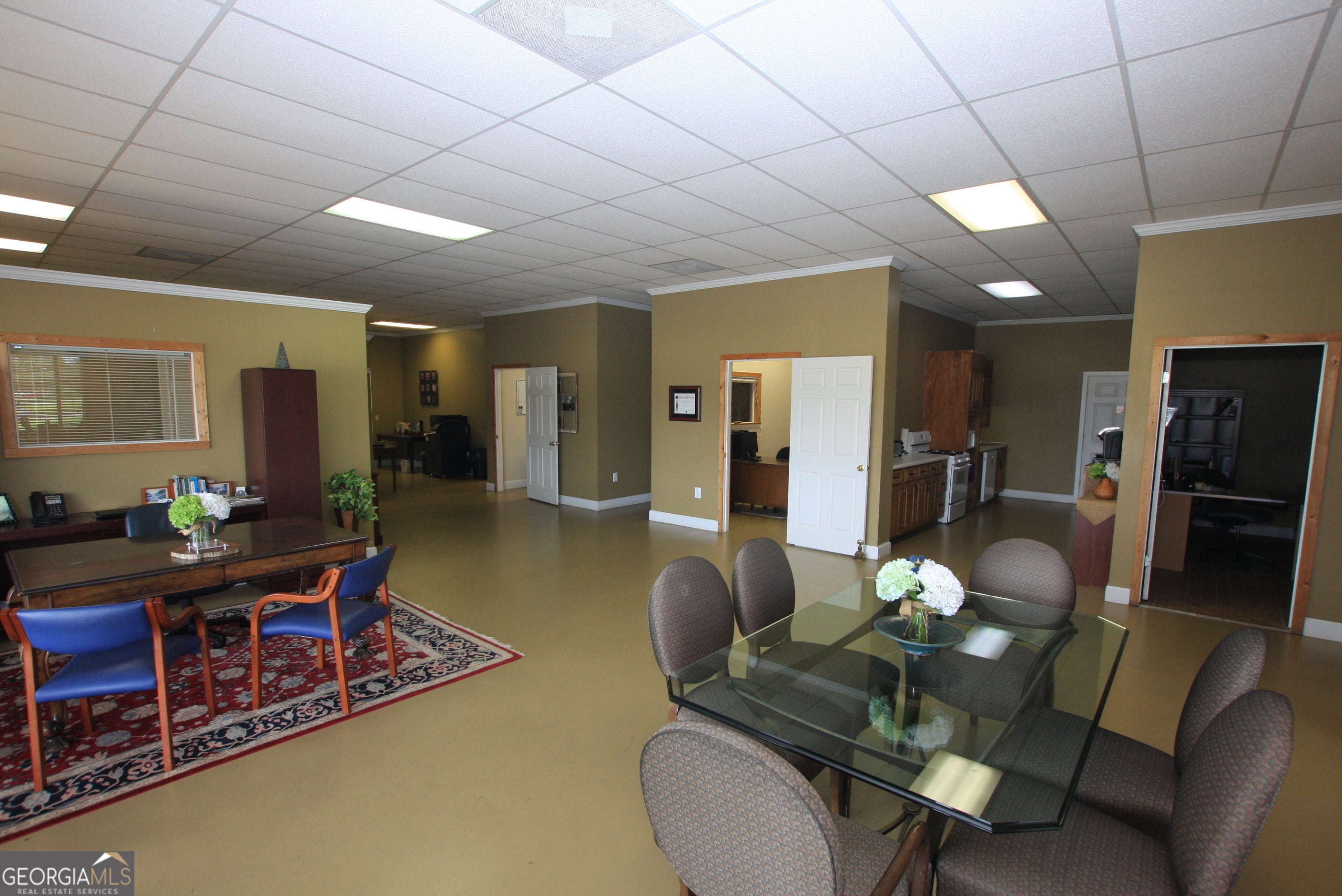 Excellent metal building with eleven offices, conference room, full kitchen, two bathrooms, 5000 square feet. Barn with loading platform and dock, ramp, 3000 square feet. Great office space and ideal for most any type of business....insurance, real estate, construction.