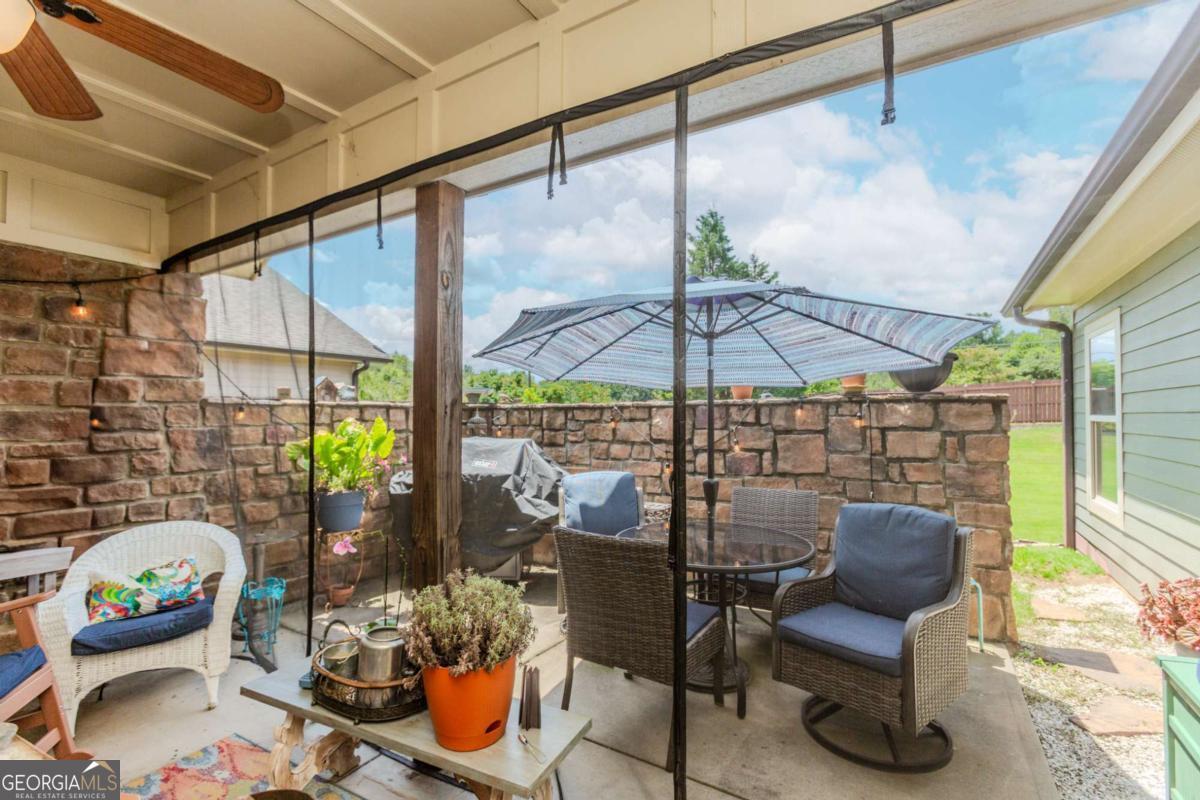 This home has it all: SMART wifi-garage door, alarm system, security cameras, LED SMART lights throughout, and SMART Thermostat! This well-maintained ranch has 3 spacious bedrooms, 2 baths, plantation shutters, LVP flooring, granite countertops, stainless appliances (including new dishwasher), and a nice trim package. The kitchen is open with a breakfast area to the family room. There is a fireplace in this spacious family room, complete with 9 ft ceilings. The master suite features a walk-in closet customized by Closets by Design, a separate shower and garden tub, and a tiled bathroom. Peaceful neighborhood, Clubhouse, POOL AMENITIES, and just minutes from Jefferson/I-85. Beautiful level yard with a relaxing front porch and fenced backyard with a coded gate and screened porch. Homes in this subdivision are not on the market often. This is your rare opportunity to purchase a SMART Home at this price!