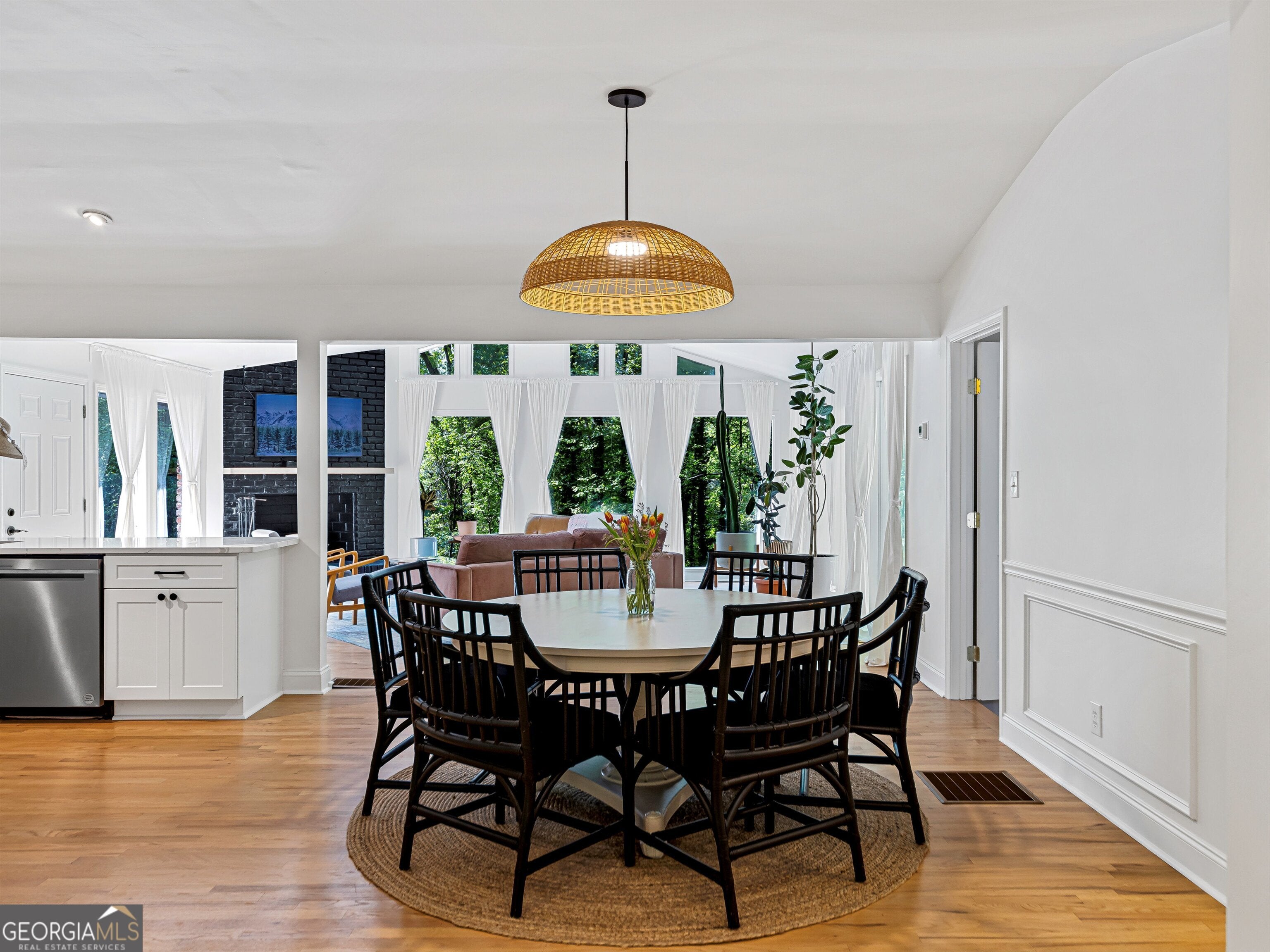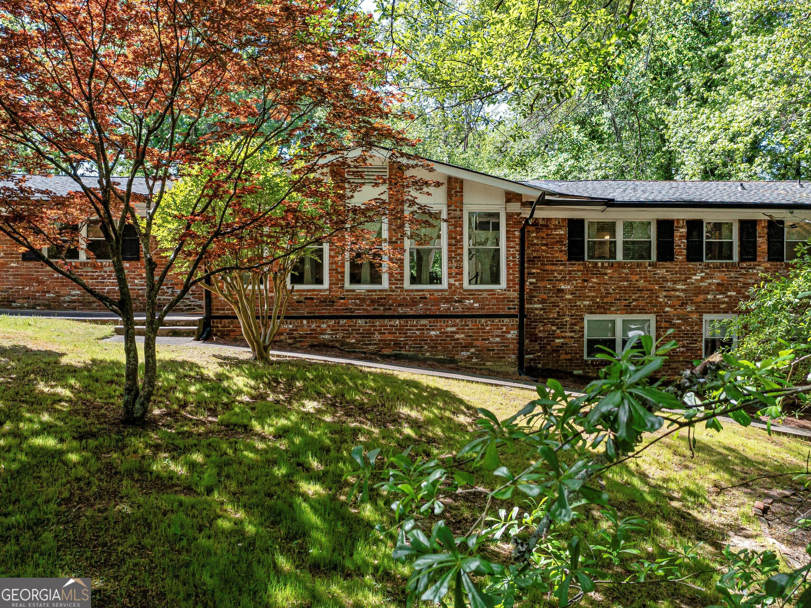 Owner Relocating - Priced Below Appraised Value! Plus, enjoy a $10,000 buyer incentive to use toward a rate buy-down, closing costs, or however you choose! Welcome to this stunning 4-sided brick Mid-Century Modern Ranch in the desirable Peyton Forest neighborhood of Southwest Atlanta, near Cascade Heights. Sitting on a private wooded lot with two driveways and rear-entry garage, this beautifully updated home offers the perfect blend of charm, space, and modern convenience. Inside, the main level features all-natural hardwood floors (no carpet!), an open-concept layout, and floor-to-ceiling windows in the family room that overlook a serene backyard oasis. The updated kitchen includes quartz countertops, soft-close cabinetry, a pantry, eat-in area, and stainless steel appliances with views into the family room. A formal dining and living room offer additional space for entertaining. The main level hosts 3 bedrooms and 2 full baths, including an owner's suite with quartz counters, a custom closet, and a spa-inspired bath with marble flooring and a beautifully tiled shower. The fully finished terrace level is ideal for multi-generational living or additional income-featuring new LVP flooring, a second full kitchen with stainless steel appliances, 2 bedrooms, 1 full bath, a media room, and spacious open areas for entertaining or relaxing. This home has been completely updated, including a new roof, new HVAC, modern lighting fixtures, and fresh paint throughout. Don't miss your chance to own this gorgeous, move-in ready home under appraised value-with $10,000 in incentives waiting for you!