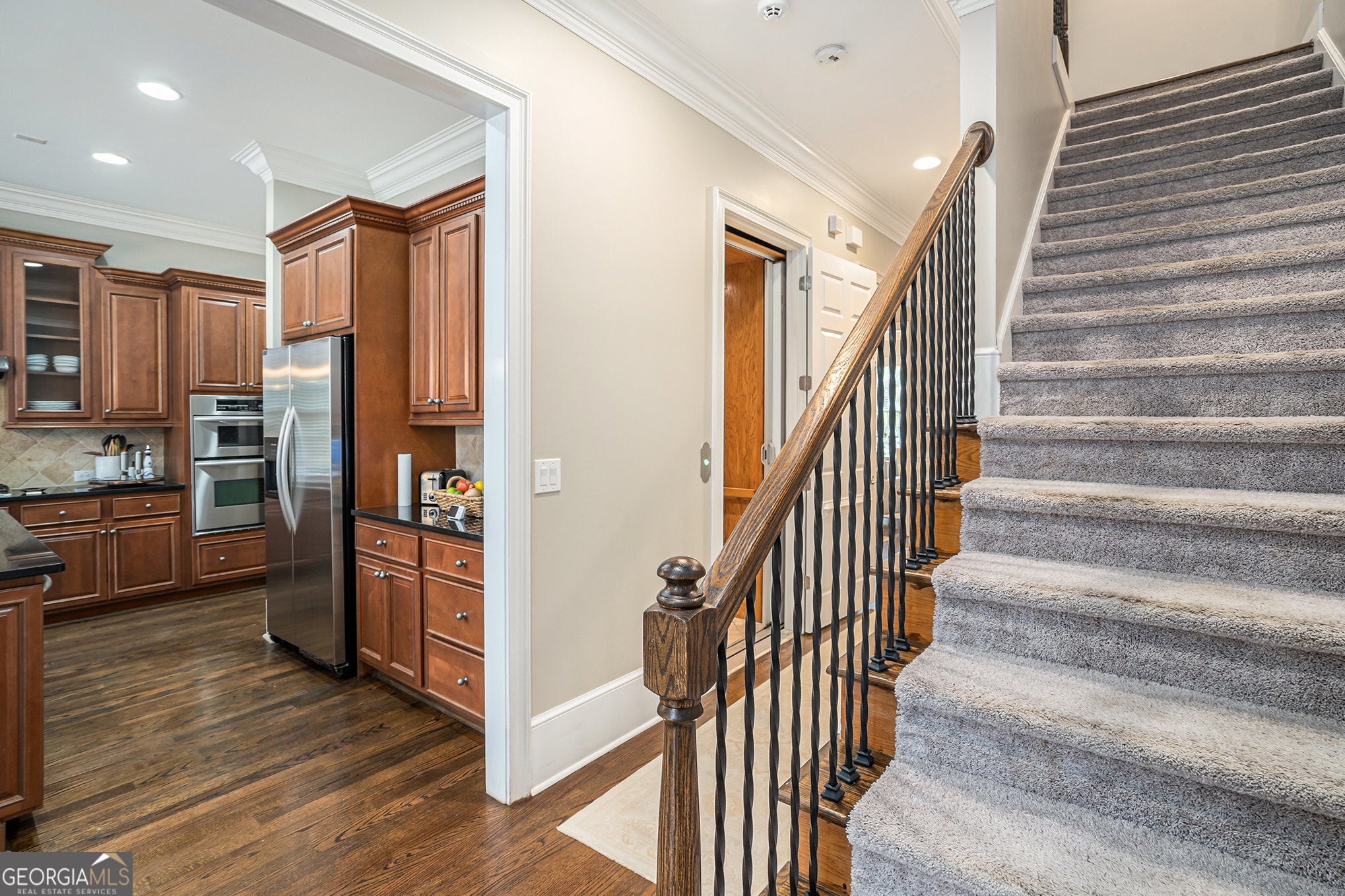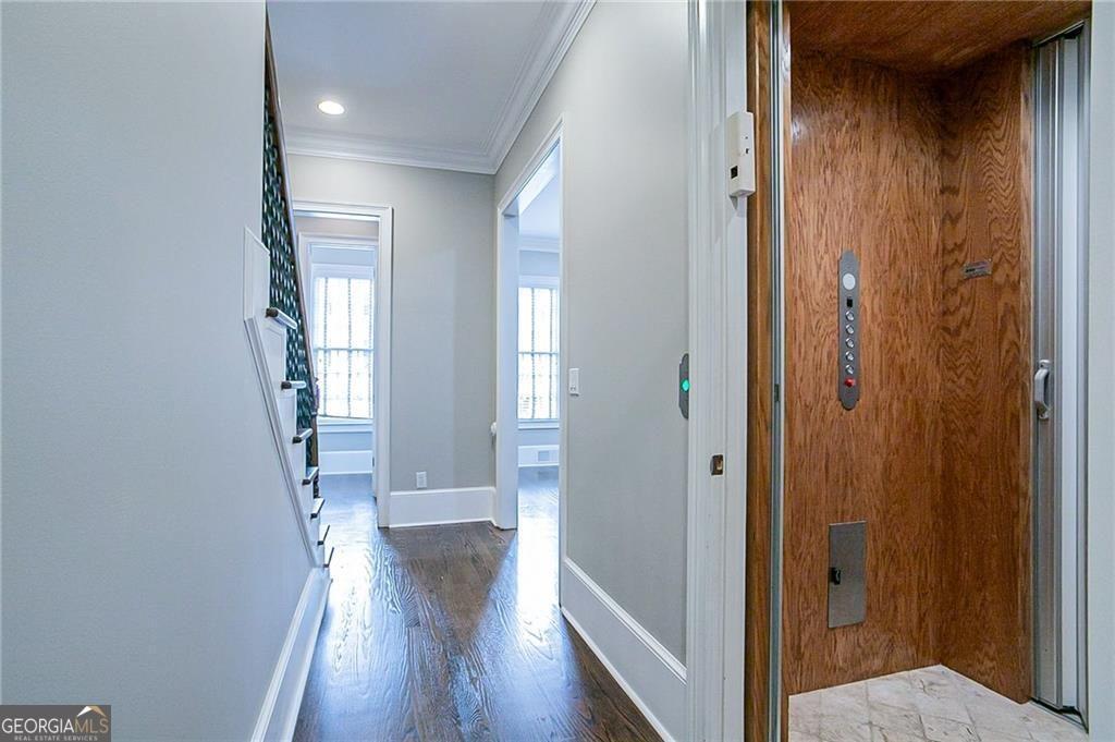 Sophisticated Townhome in Sought-After One Ivy Walk - Smyrna/Vinings Welcome to One Ivy Walk, a premier gated community by John Wieland Homes, offering the perfect blend of luxury, convenience, and lifestyle just outside the Perimeter at Cumberland Parkway and Atlanta Road. This well maintained townhome features a private elevator to all four levels, stunning hardwood floors, and spacious, flexible living spaces throughout.The entry level includes garage access and opens to a private guest suite or home office with a full bath-ideal for visitors or remote work. On the main living level, enjoy the light filled kitchen with granite countertops, stainless steel appliances, and a butler's pantry, flowing seamlessly into a generous dining room with coffered ceilings-perfect for entertaining. The adjacent family room features a fireplace, custom built-ins, and access to your private outdoor terrace for relaxing or dining al fresco. The third floor boasts a luxurious primary suite with a spa-like bath, including dual vanities, a whirlpool soaking tub, and a separate shower. A second en suite bedroom, a large laundry room, and ample storage complete this level. The fourth floor offers incredible flexibility as a teen suite, in-law retreat, game room, gym, or media room-whatever fits your lifestyle best. Additional features include oversized doors, crown molding, tray ceilings, and built-in bookcases. This home offers comfort, convenience, and timeless style in the heart of Smyrna/Vinings. Community amenities include a pool, fitness center, clubhouse, and dog park-just steps from shops, dining, and major highways.