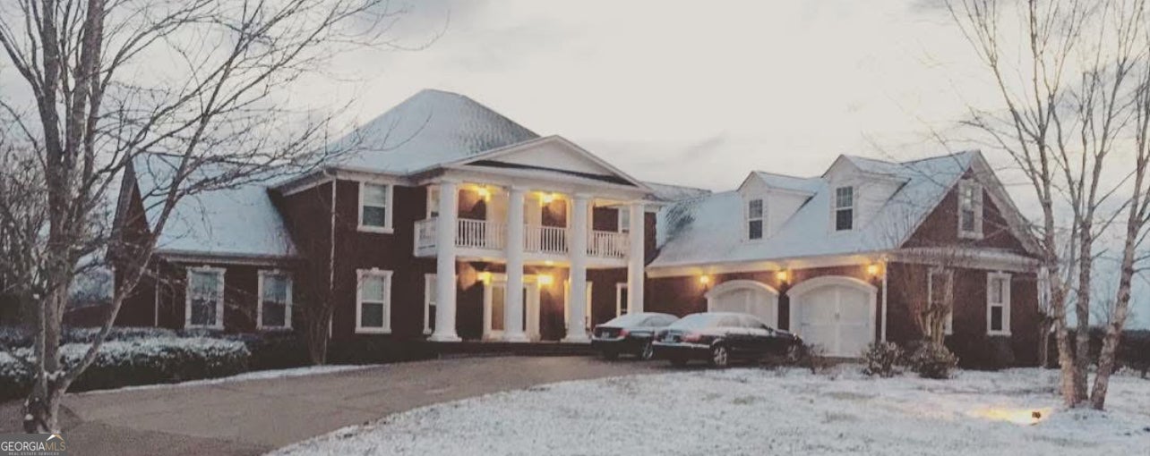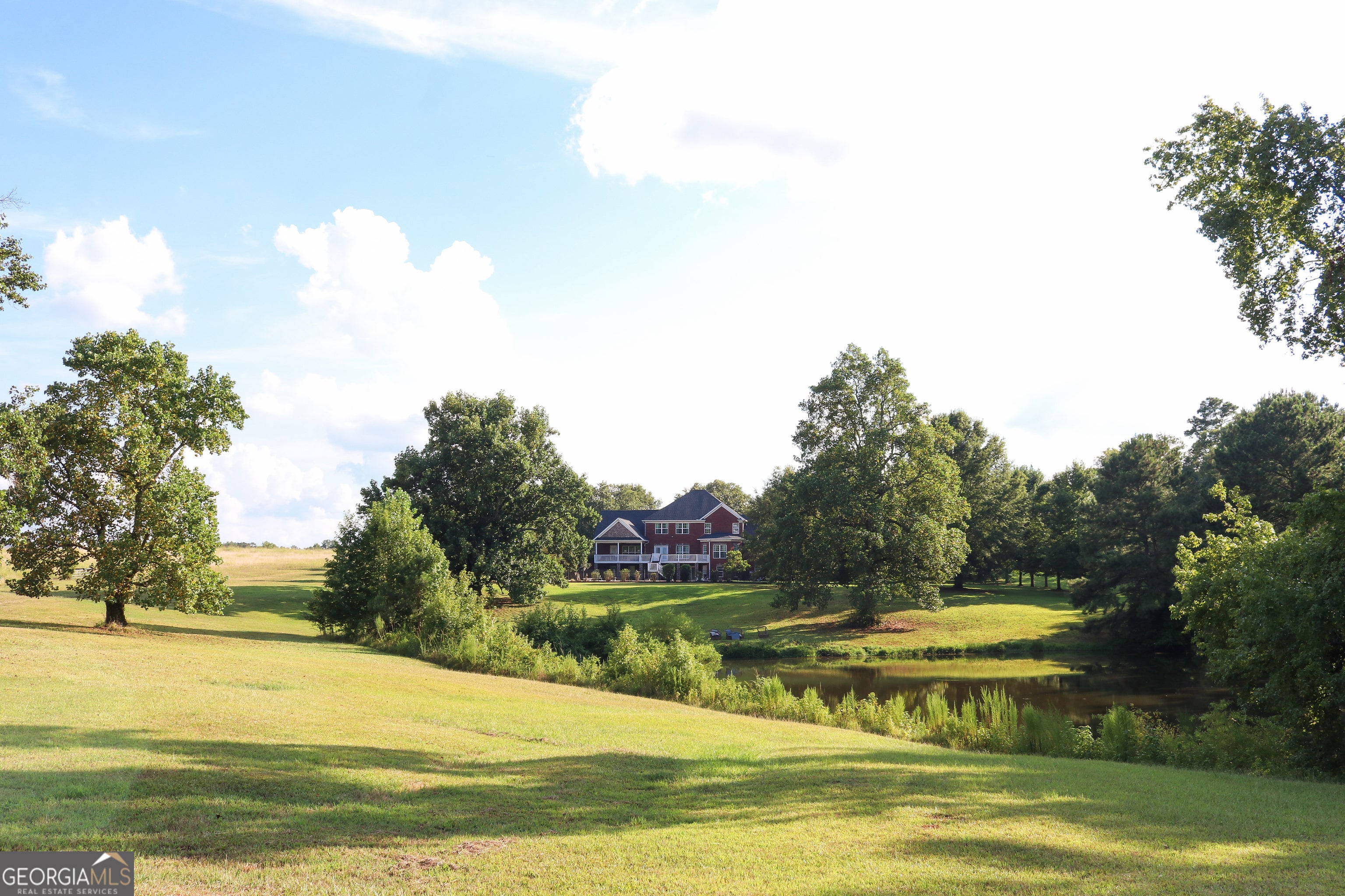 This stunning 63.18-acre estate near Madison offers a rare blend of luxury, privacy, and outdoor adventure just 6 miles from downtown. The four-sided brick home is expansive and elegant, featuring a grand two-story foyer with chandelier and open staircase, spacious family room with fireplace and hardwood floors, and a gourmet kitchen, perfect for entertaining, with ample cabinetry and countertops, a fireplace, and walk-in pantry. The Master suite is in the left wing of the home and showcases dual vanities, each a shower and a tub, a walk-in closet, and one of several attic spaces. Also on the main level, you will find a guest bedroom with full bath, a mudroom + laundry with coffee bar and dual washer/dryer hookups. There is a lovely partially covered deck overlooking the pond (stocked with bream and bass!) that can be accessed from both the den and kitchen. The upstairs is made up of 3 bedrooms, 2 full baths, 2 bonus rooms, and a large family area. In the basement, there are 2 full baths, a second full kitchen, family/TV room, and storage rooms - making this space ideal for a mother-in-law suite if needed. The basement opens to a fenced backyard with a cement inground pool. The grounds contain around 20 acres of pasture with two large barns, multiple varieties of fruit trees, and pecans. In the back of the property, you will find just over 30 acres of mixed hardwoods and pines with 3 well-spaced food plots, and sightings of deer and turkey. There is a solid road system throughout the woods allowing you easy access to get around. This is a must-see property if you are in the market for a stunning estate and looking for abundant wildlife, seeking a spot to raise livestock and/or for recreation. 4 miles from interstate 20 and highway 441. Call High Point Real Estate Group today to see this special place.
