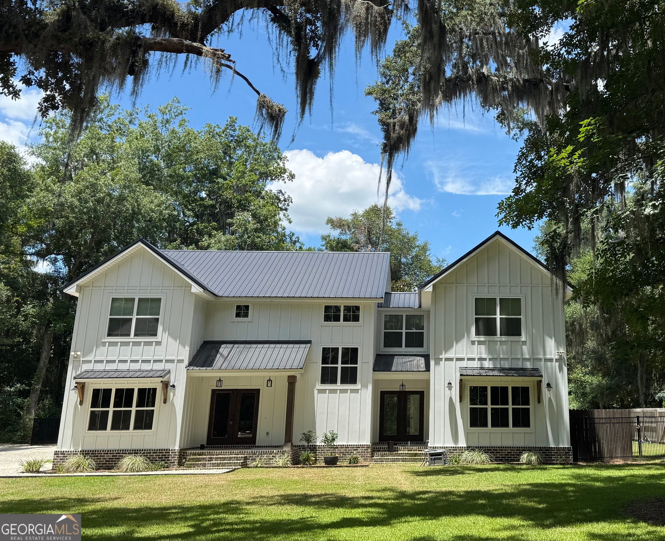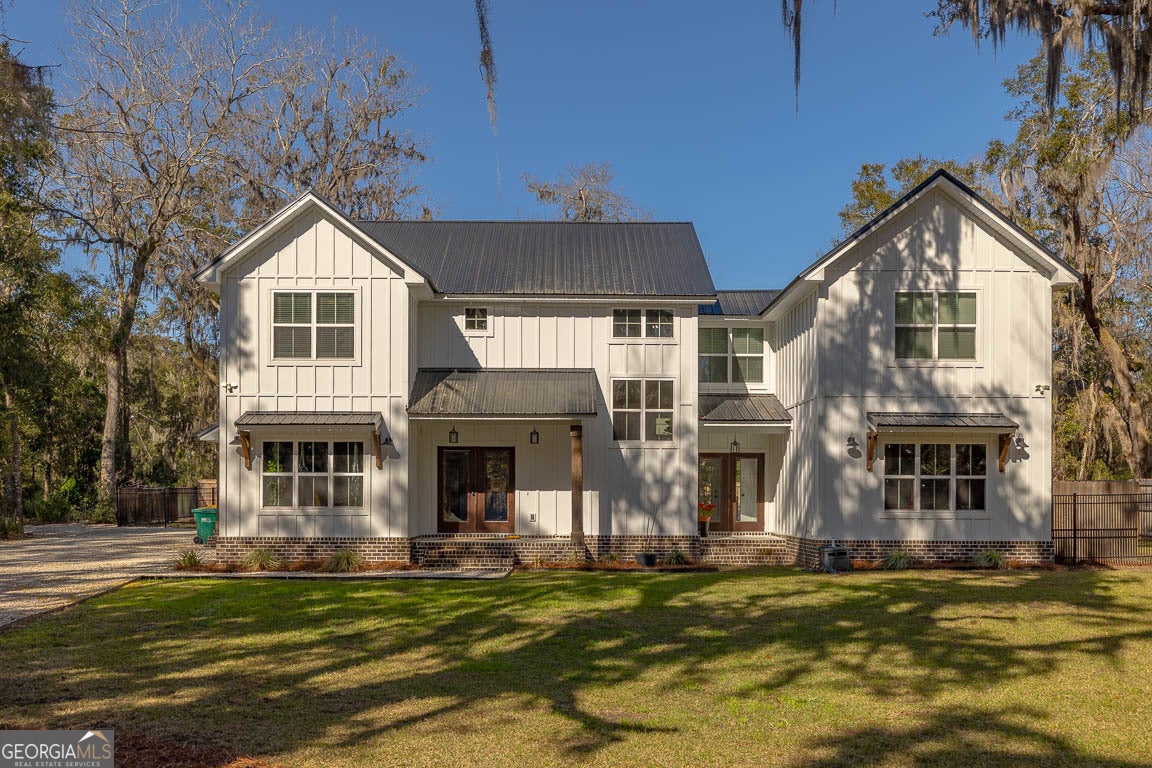 Discover this custom-built modern farmhouse just 10 minutes from downtown Darien. Situated in the coveted Tolomato Island community, this home offers the best of Southern coastal living. Tolomato Island boasts luxury amenities, including a boat dock, swimming pool, tennis court, pickleball courts, nature trails, and more. Inside, enjoy an open floor plan, a heated and cooled man cave/private gym or boat garage, a spacious kitchen with an expansive island and pantry, a private owner's suite, a dog suite beneath the stairs, and a secluded, fenced backyard. This home is a must-see! Don't miss out! The owners also own additional neighboring lots to the right(.93AC) and left(1.44 AC) of the home and can be purchased separately.