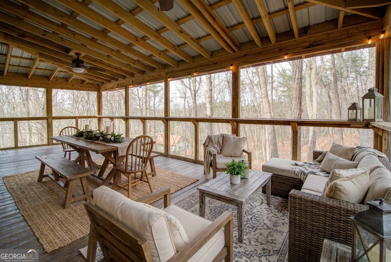 Refreshed, beautiful and cozy cabin retreat nestled in the North Georgia Mountains! This charming 2 bed 2.5 bathroom property offers open concept living and plenty of indoor and outdoor space to use and enjoy! This is a must see and all for under 285k not to mention the seasonal views of Mt Yonah! Inside you have the master on main and the upper level is open to below which works great as a den/office or simply a bedroom! The quartz countertops and updated features means this place is move in ready with little to no work required. With a large screened in porch, fire pit plus a gazebo, you have options when it comes to spending your time with nature. The property also offers a garden area (with fruit trees) and a very large fenced in yard for any pets you have. Sitting on nearly 2 acres you really feel the privacy at 230 Skyview Drive. The carport offers space for 2 vehicles and there is also room there for a camper/RV. The community offers a wonderful Lake, ideal for kayaking, paddle boarding, fishing or swimming along with a picnic area and grills.