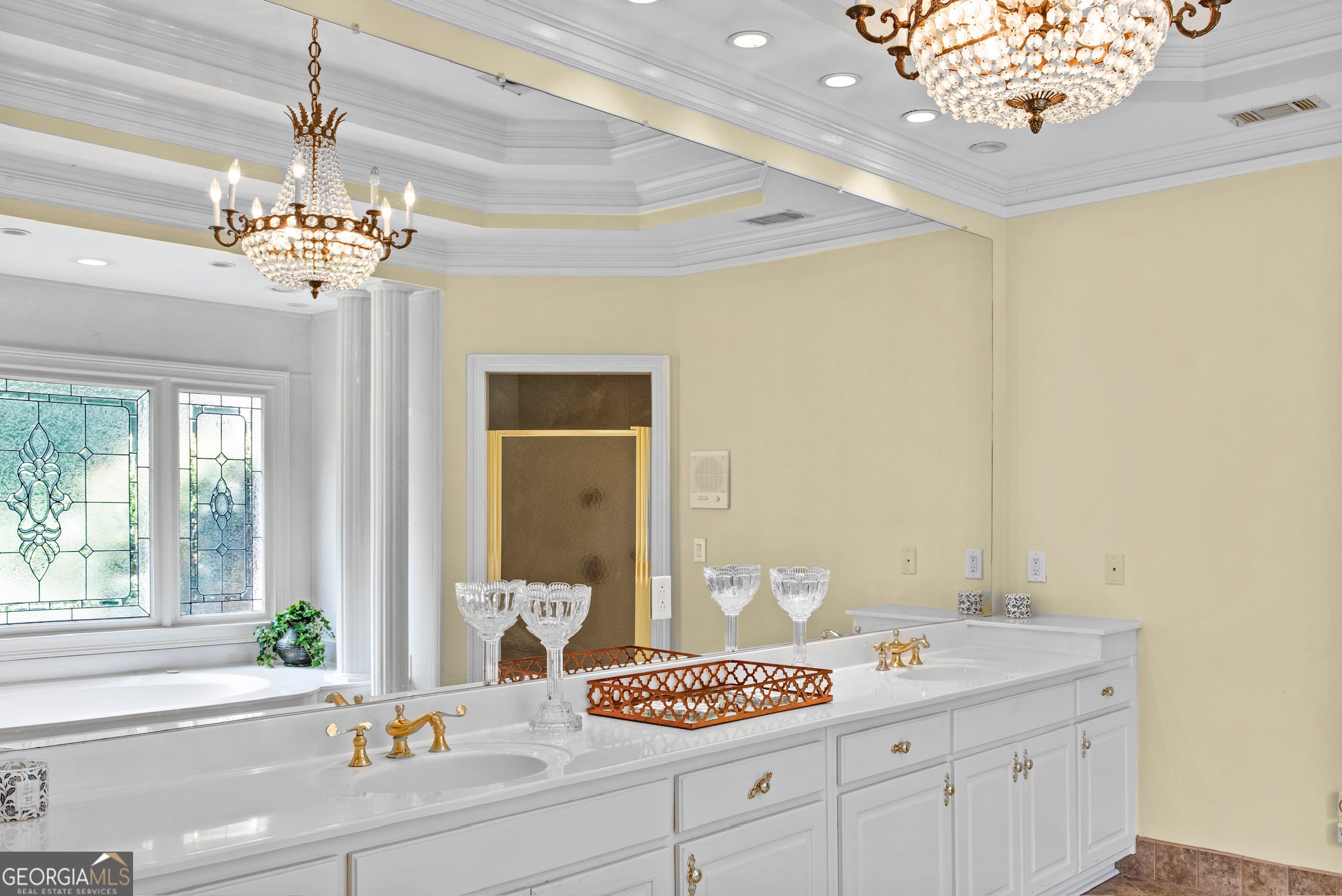 - Interior FeaturesAttic Expandable, Bookcases, Double Vanity, High Ceilings, Master On Main Level, Rear Stairs, Separate Shower, Soaking Tub, Tile Bath, Tray Ceiling(s), Two Story Foyer, Vaulted Ceiling(s), Walk-In Closet(s), Wet Bar, Whirlpool Bath