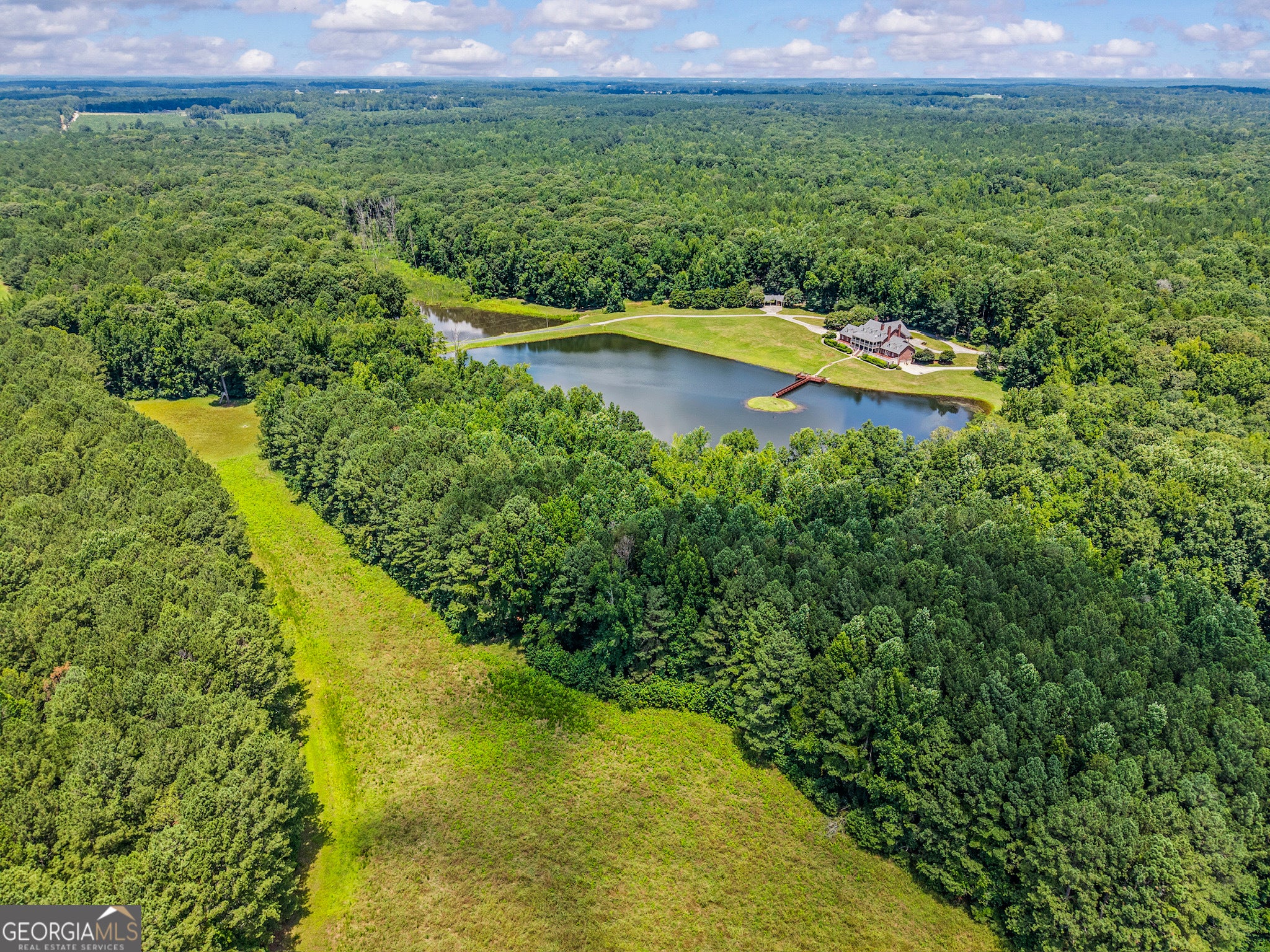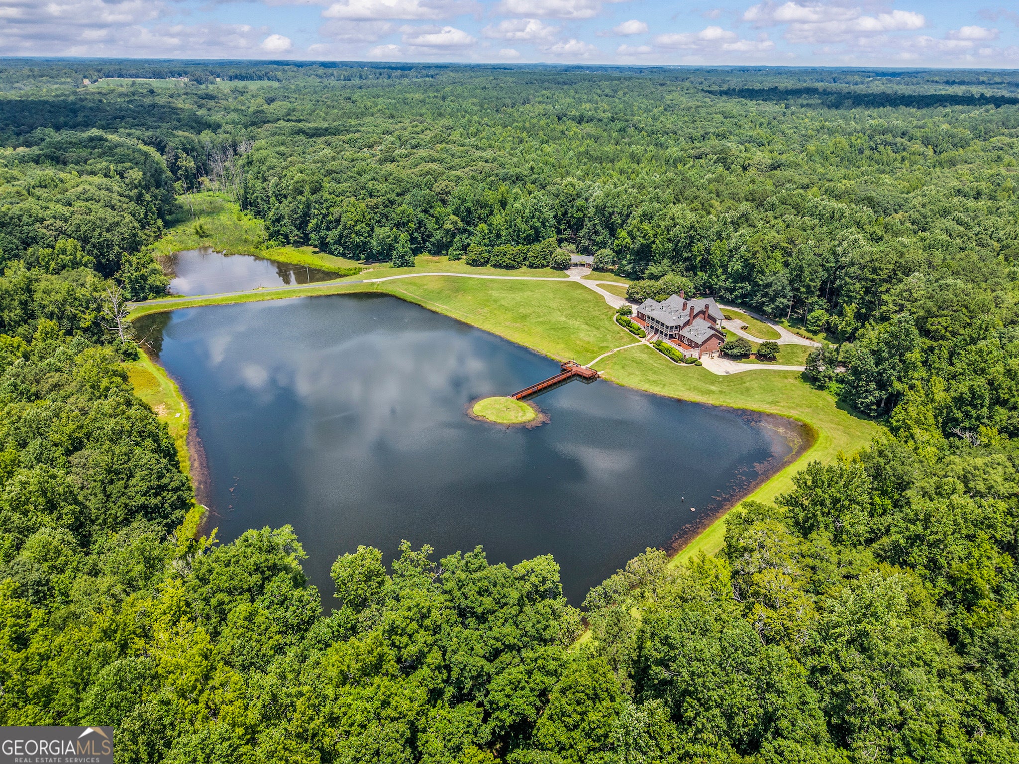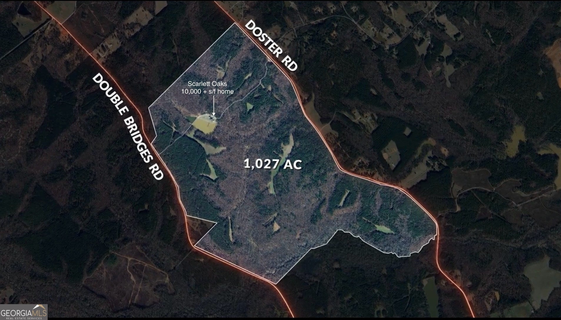 Welcome to Scarlett Oaks - an extraordinary 1,028-acre legacy property that represents the pinnacle of recreational southern living. A rare and irreplaceable assemblage more than 40 years in the making, this iconic estate features more than 2 miles of frontage on Doster Road, one of Madison's most treasured country roads, and 1.5 miles on scenic Double Bridges Road. Gated entrances on both road frontages, and winding paved drives leading past mature trees and a creek bed, set the stage for an elegant arrival. At the heart of the property lies an 8 acre private lake and a breathtaking 10,000+ square-foot estate home. Perfectly positioned to capture sweeping water views from expansive patios and wide veranda's, the stately residence reflects the gracious style of a true southern estate. The home features a marble-floored foyer with sweeping staircase, formal living and dining rooms with fireplaces, a lakeside kitchen and informal dining room, and a richly paneled study with built-ins and a wet bar. Nearly every rear facing room in the home opens to an expansive veranda or patio overlooking the lake - seamlessly blending indoor and outdoor living. The main-level primary suite is a peaceful lakeside retreat, complete with a fireplace, private patio access, and luxurious dressing rooms and closets. Upstairs, five en-suite bedrooms surround a dramatic, vaulted trophy room. An additional laundry room and storage rooms, a discreet back staircase to the kitchen, and a Juliet balcony overlooking the circular drive round out the features on this level. On the lower level, you'll find a full guest or caretaker suite with private kitchen and living area, as well as a recreation room with a pool table, many storage and utility rooms, and an additional 4-car garage. A private elevator connects all levels, and a full-sized attic - already stubbed for future bedrooms and baths - offers room to grow. The estate also includes a detached office building with a half bath, ideal for managing land operations or working remotely. Throughout the 1,028 acres you'll find miles of trails, flowing creeks, mature hardwoods, open fields, and well-placed food plots-making it a haven for hunting, exploration, and outdoor enjoyment. For those seeking an even grander footprint, two additional tracts - a directly adjoining 174 acres with a lodge-style residence, and another 150 acres on Double Bridges Road-are also available, offering the potential to control more than 1,350 acres in one of Georgia's most beautiful rural corridors. Located minutes from historic downtown Madison and within Georgia's renowned Lake Country, Scarlett Oaks is surrounded by natural beauty, small-town charm, and a thriving outdoor culture. This is more than just a property. It's a once-in-a-generation opportunity to own one of Georgia's most significant private estates.