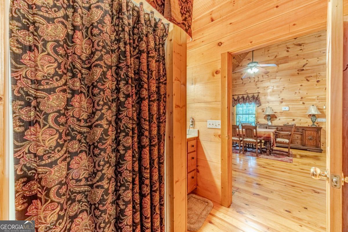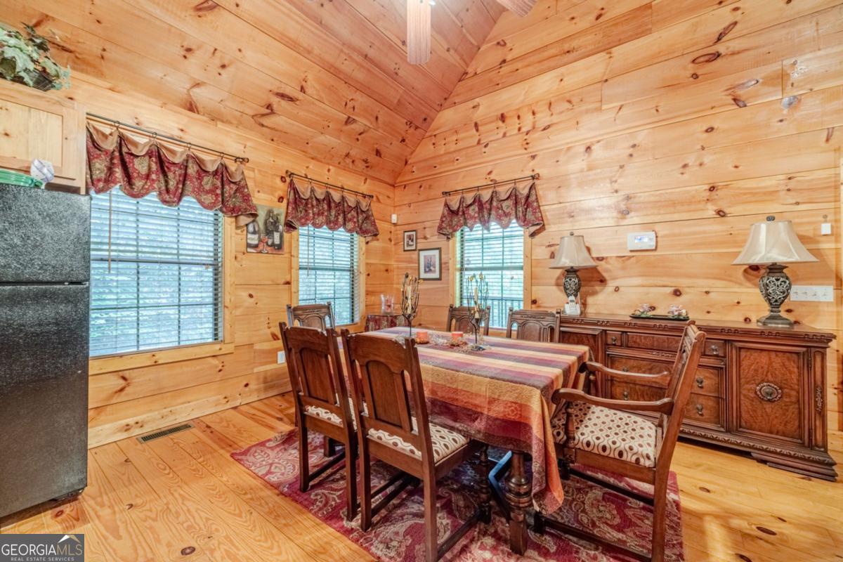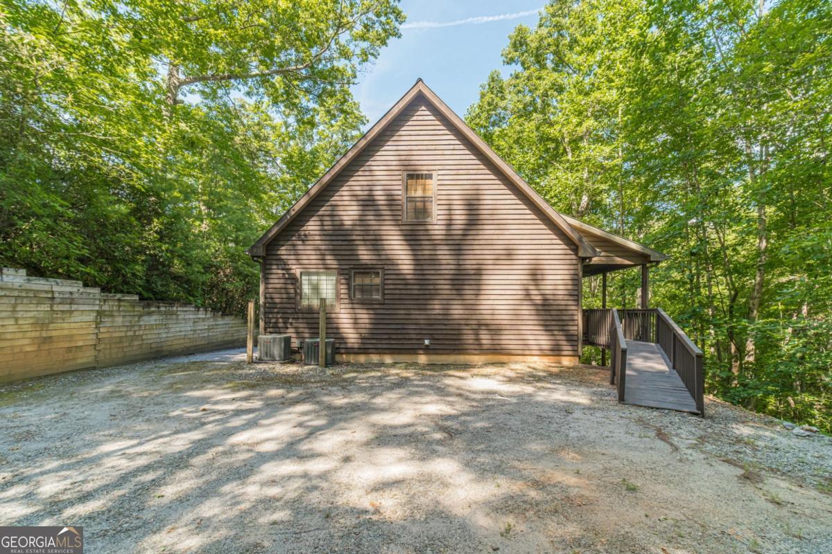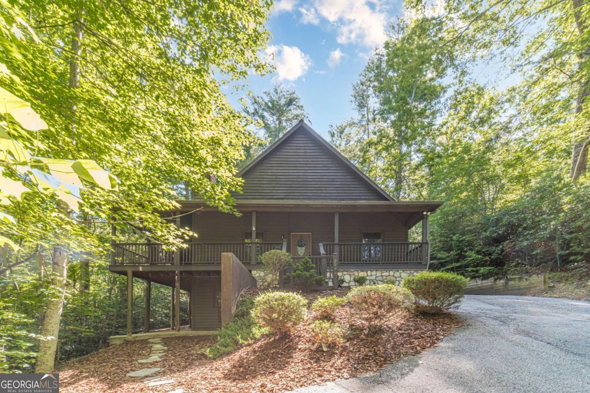 The mountains are calling, and I must go! Now is the perfect time for fall festivals, visits to apple orchards and pumpkin patches, watching the leaves change, and exploring the North GA Mountains with its trails and waterfalls. This adorable, iconic cabin sets a cozy mood for all things mountain-related. Whether you're snuggled up by the wood-burning fireplace with a good book, enjoying the breathtaking mountain views and sunsets under a warm, thick blanket in the crisp fall air, or relaxing in the hot tub while snowflakes gently fall- with seasonal mountain views this home truly shines year-round. Just a short drive to Helen or Cleveland, you'll find plenty of fun, dining, and shopping options to explore. But once you're here, you might never want to leave. This charming, authentic wood cabin (no drywall here!) features three levels, four bedrooms (the fourth bedroom is a flex room with no window but does have a closet), three full bathrooms, two spacious gathering areas (great room or game room), an open kitchen and dining space, and a large covered porch that wraps around half the house. It's fully furnished, so everything stays, making it easy for you to move right in with your belongings and linens. The kitchen features beautiful granite countertops and an Italian stainless steel sink with all appliances included. The primary suite on the main level offers access to the covered deck and hot tub, a relaxing soaking tub, and a separate shower. Upstairs, you'll find a roomy loft bedroom with a private ensuite bathroom. The terrace level has a convenient jack-and-jill setup plus a generous gathering space perfect for a pool table or a secondary family room with a bar area, a laundry room, and access to a covered patio- great for outdoor gatherings. Not only are these hills alive with the sound of music, but this home will bring a joyful melody to your heart. It's a wonderful place to call home, where you can enjoy the changing seasons, gather, relax, and with loved ones share with others. Out of all the cabins in all the towns in all the world, you'll be happy you visited mine. Special features include: 2 Trane HVAC systems only 3 years old, exterior painted in 2021, deck and chimney painted in 2024, handicap accessible ramp to deck for easy access with plenty of level parking space at ramp level, security system, Trex front entrance steps, reinforced deck and retaining wall, and designer custom window treatments throughout.
