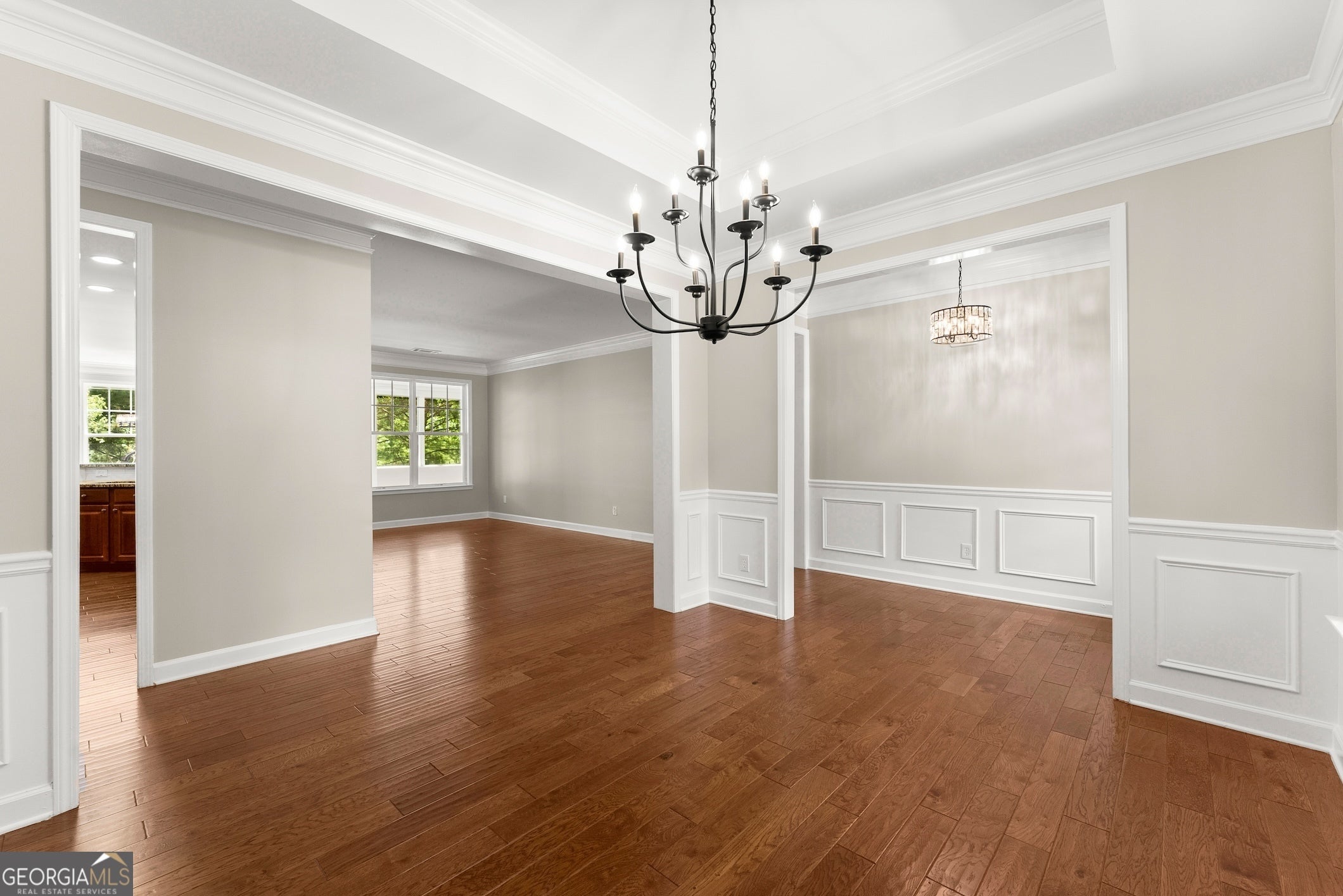 This beautifully updated home offers the rare combination of generous square footage and true single-level living-all in one of the most private and desirable areas of Cresswind at Lake Lanier, the premier 55+ active adult community. Set on a lot that backs to a tranquil, community-owned natural area and faces a quiet, tree-lined street, this home offers peaceful surroundings while still being close to the clubhouse, walking trails, and community garden. Inside, you'll find a smart, flowing layout with both formal and casual living and dining spaces. Elegant tray ceilings in the owner's suite and dining room, along with crown molding and wainscoting throughout, add a refined, high-end touch. The kitchen features granite countertops and a decorative tile backsplash, while the oversized screened-in porch invites you to relax and enjoy frequent bird-watching and deer sightings. Recent updates include a new roof, new water heater, and fresh interior and exterior paint. A full list of seller improvements is available upon request. Residents of Cresswind enjoy award-winning amenities including a 42,000-square-foot clubhouse, indoor and outdoor pools, tennis and pickleball courts, a fitness center, theater, over 120 clubs, dog park, walking trails, garden plots, and a private marina on Lake Lanier. If you're looking for gracious one-level living with space, privacy, and style, this may be the one you've been waiting for. Some images in this listing have been virtually staged to illustrate the potential use of space. All virtual staging is for visual reference only. No actual furnishings, fixtures, or improvements depicted in the staged images are present in the home.