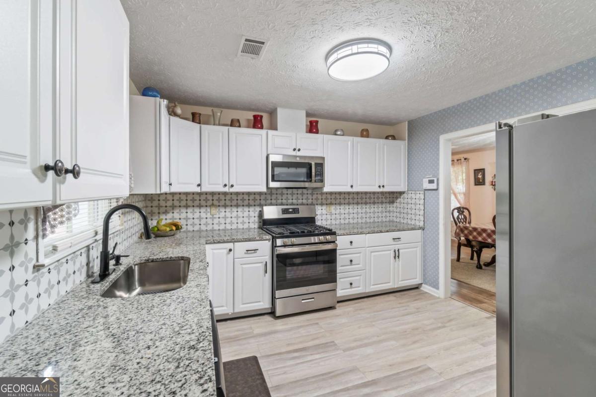 Step into this beautifully renovated 3-bedroom, 2-bathroom home where modern updates and comfortable living come together. From the moment you enter, you'll notice the spacious and open layout, perfect for both everyday living and entertaining. The home features brand-new flooring, fresh interior paint, a brand-new roof, and a new HVAC system for year-round comfort. The stunning kitchen offers white cabinetry, granite countertops, and stainless steel appliances - combining style and functionality. Outside, the backyard is a true highlight, offering plenty of space to relax, play, or entertain. Don't miss this move-in-ready gem - schedule your showing today!