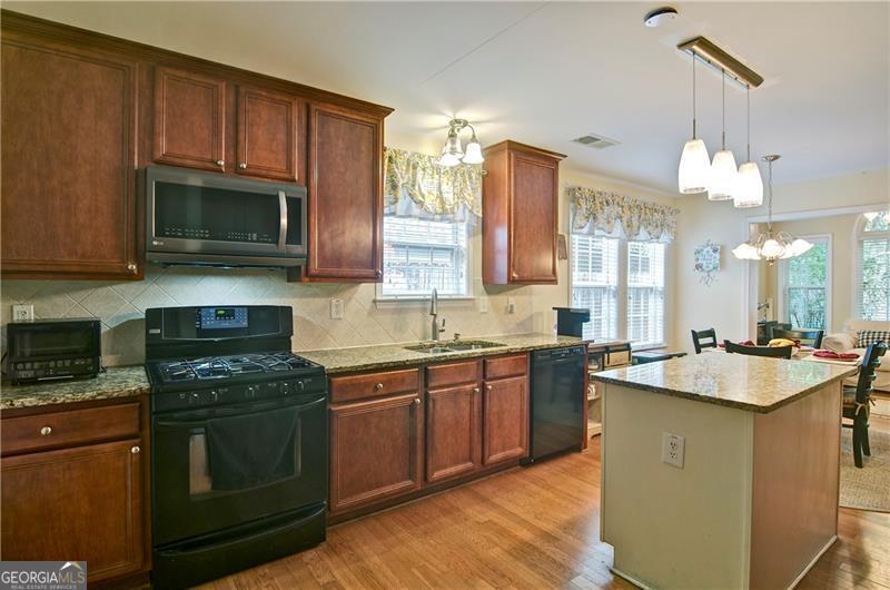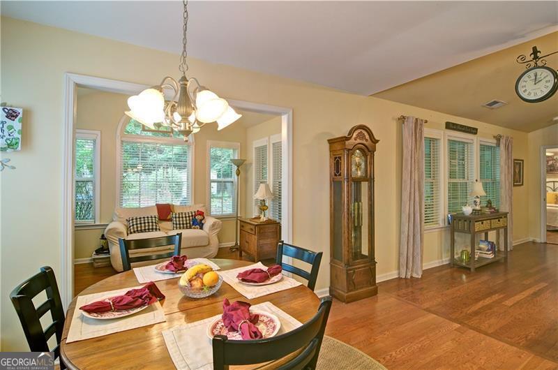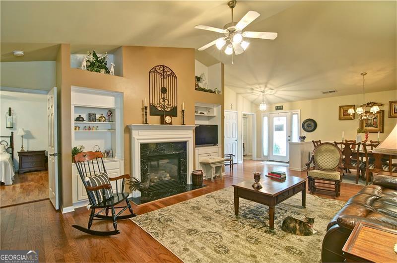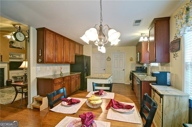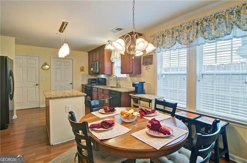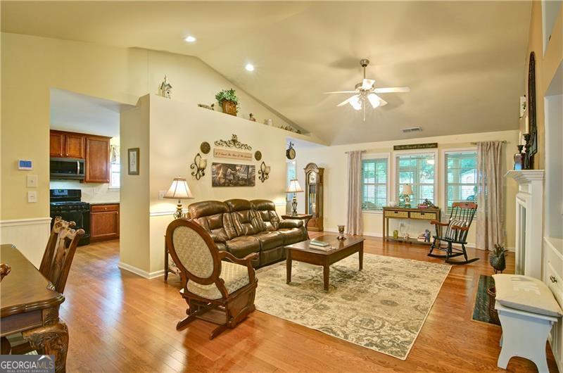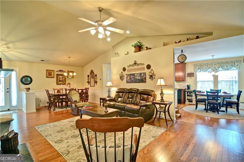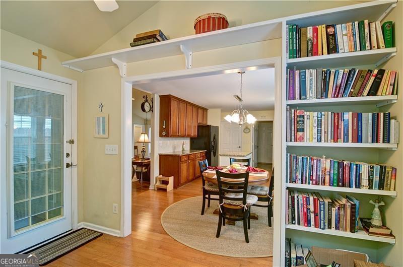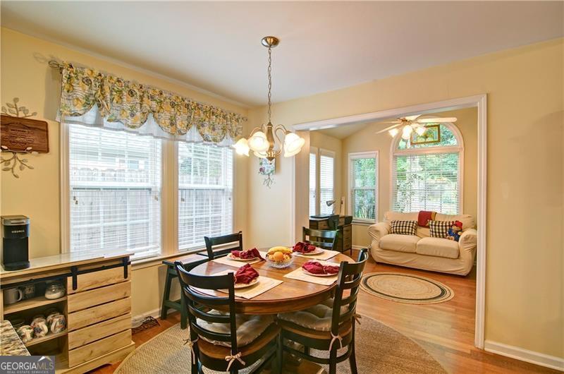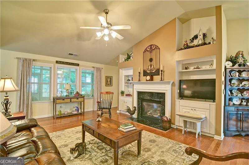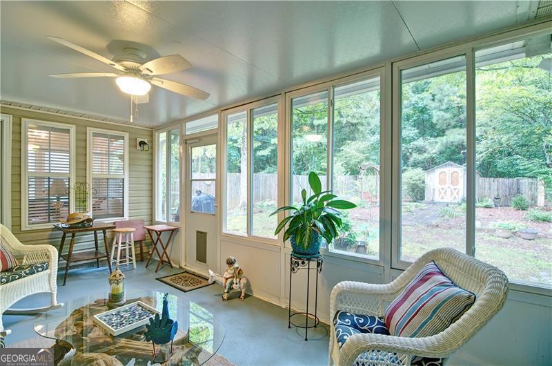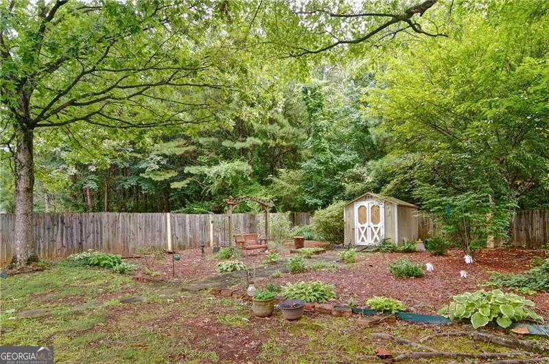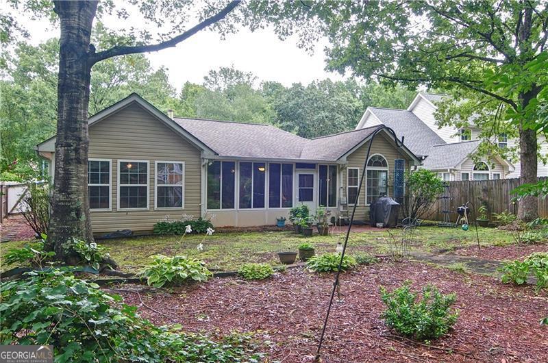 Welcome to 5178 Centennial Creek View - A Home That Truly Checks Every Box! Single-level living? Yes! Built-in bookshelves? Yes! Vaulted ceilings? Yes! Sunroom? Storage shed? Private, fenced yard that backs to peaceful woods? Yes, yes, and YES! If you've been searching for a home that feels like the one, look no further. From the moment you step inside, you're greeted by an EXPANSIVE, VAULTED GREAT ROOM that's equal parts warm and inviting. A cozy fireplace, flanked by built-in bookshelves offers the perfect backdrop for displaying your favorite books, collectibles, or family memories. Picture it now: twinkling holiday decorations, a charming winter village on one side, and a plate of cookies waiting for Santa on the other. Just off the great room is the dining area - perfect for everything from festive gatherings to casual weekday dinners. When you're not entertaining, it easily transforms into extra space for craft projects, homework help, or even a gift-wrapping station. The eat-in kitchen is ready for action! With generous GRANITE COUNTERTOPS, abundant cabinetry, and a STEP-IN PANTRY, there's room to cook, create, and celebrate - whether it's Thanksgiving for twelve, Sunday brunch with friends, or game night with the crew. Connected to the kitchen is a VAULTED KEEPING ROOM - a versatile nook that could be your next reading room, sewing space, or home office. With BUILT-IN BOOKSHELVES and a Palladian window overlooking the private backyard, it's the perfect spot to think, dream, or simply unwind. Step into the SUNROOM and imagine breezy afternoons with the windows open and the sounds of nature (but not the mosquitoes - thank you, screens!). It's an ideal space for morning coffee, evening chats, or a cozy indoor picnic when it's too rainy to grill outside. And speaking of outside - this FENCED-IN BACKYARD is a dream for both two- and four-legged family members. There's space to run, play, garden, swing, or simply soak in the serenity of the surrounding HOA-owned GREENSPACE. The STORAGE SHED keeps everything tidy and out of sight - from gardening tools to backyard toys. Inside, you'll find three comfortable bedrooms and two stylish bathrooms, both with charming SHIPLAP ACCENTS. The primary bath features updated luxury vinyl plank flooring, while the hall bath offers a playful yet classic black-and-white patterned tile. Peace of Mind Comes Standard You'll enjoy more than just beauty and charm - this home is being sold by the original owner and is well-maintained and move-in ready with * Low-maintenance vinyl siding * A 4-year-old roof * A 6-year-old HVAC system * New insulation installed just 3 years ago * New Garage Door & Opener * Refrigerator, Washer & Dryer included Plus, front yard maintenance is covered by the HOA - so if yard work isn't your thing, you're in luck. So Many Perks, Right in Your Neighborhood Living in Centennial Commons means access to amenities like a sparkling swimming pool, tennis courts, and a fitness center at the clubhouse. It's an easy way to stay active and connected without ever leaving your community. Conveniently Tucked Away Yet Close to Everything Situated at the back of the neighborhood for added peace and privacy, you're still just * 3 miles from I-75 and Express Lane access * 2.5 miles to Publix * A short drive to shopping, restaurants, and entertainment in Acworth, Woodstock, and along Cobb Parkway. Friday night plans? Skip the traffic and take your pick * Stroll Downtown Woodstock * Ice cream in Downtown Acworth * Playground visit at Logan Farm Park * A bike ride on Noonday Creek Trail * A beach day at Acworth Beach * Camping at Payne Campground * Boating on Lake Allatoona * Tee time at Cobblestone Golf Club. With style, space, and a setting that's hard to beat, 5178 Centennial Creek View is more than a house - it's a place to live, laugh, and make memories. Schedule your tour today and get ready to fall in love!