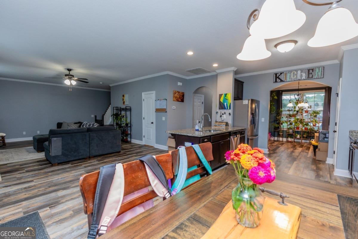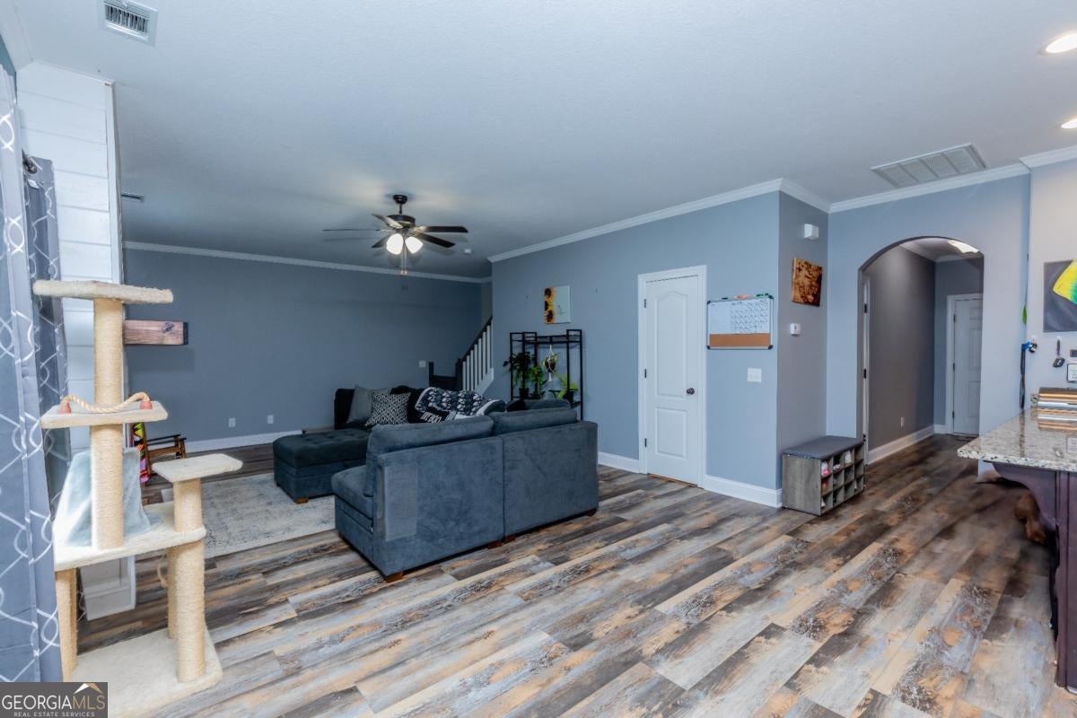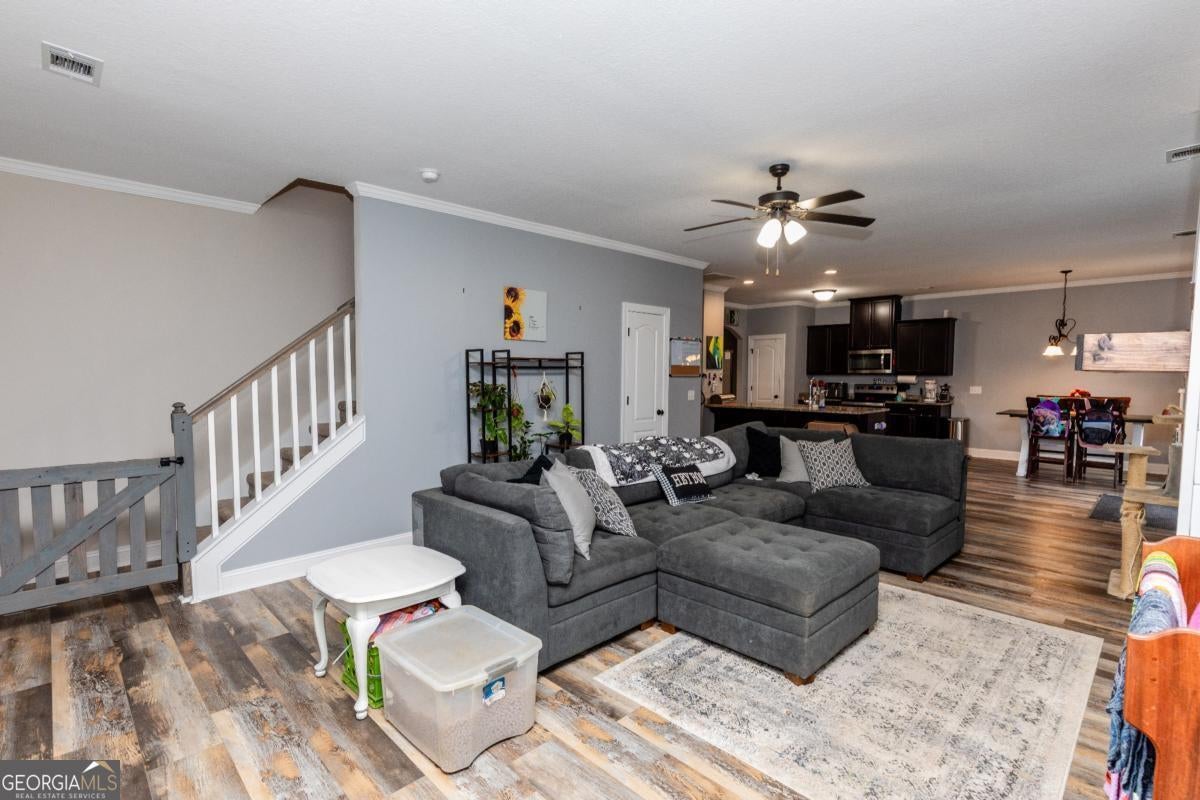 Tucked away in a quiet cul-de-sac in the desirable Mossy Hollow subdivision off Old Louisville Road in North Effingham, this spacious 4-bedroom, 2.5-bath home offers both comfort and convenience. The main level features stainless steel appliances, granite countertops, and durable hardwood laminate flooring throughout. A custom-built entertainment center enhances the inviting living space, while the formal dining room offers flexibility as a home office if needed. Upstairs, you'll find all four bedrooms, including a spacious primary suite with a double vanity, Jacuzzi tub, standalone shower, and walk-in closet. The secondary bathroom also includes a double vanity-perfect for family living. Enjoy the privacy of a large backyard, ideal for gatherings or outdoor play, and take advantage of the 2-car garage for added storage. Experience cul-de-sac living at its finest in Mossy Hollow-peaceful, private, and just minutes from Pooler, Savannah, and everything Effingham County has to offer.