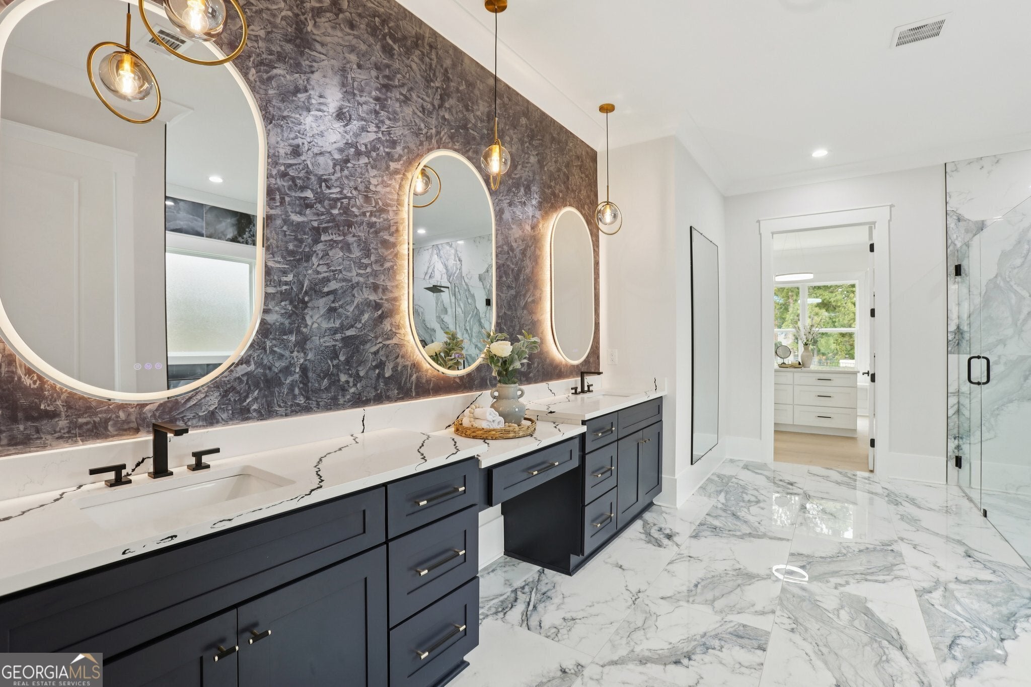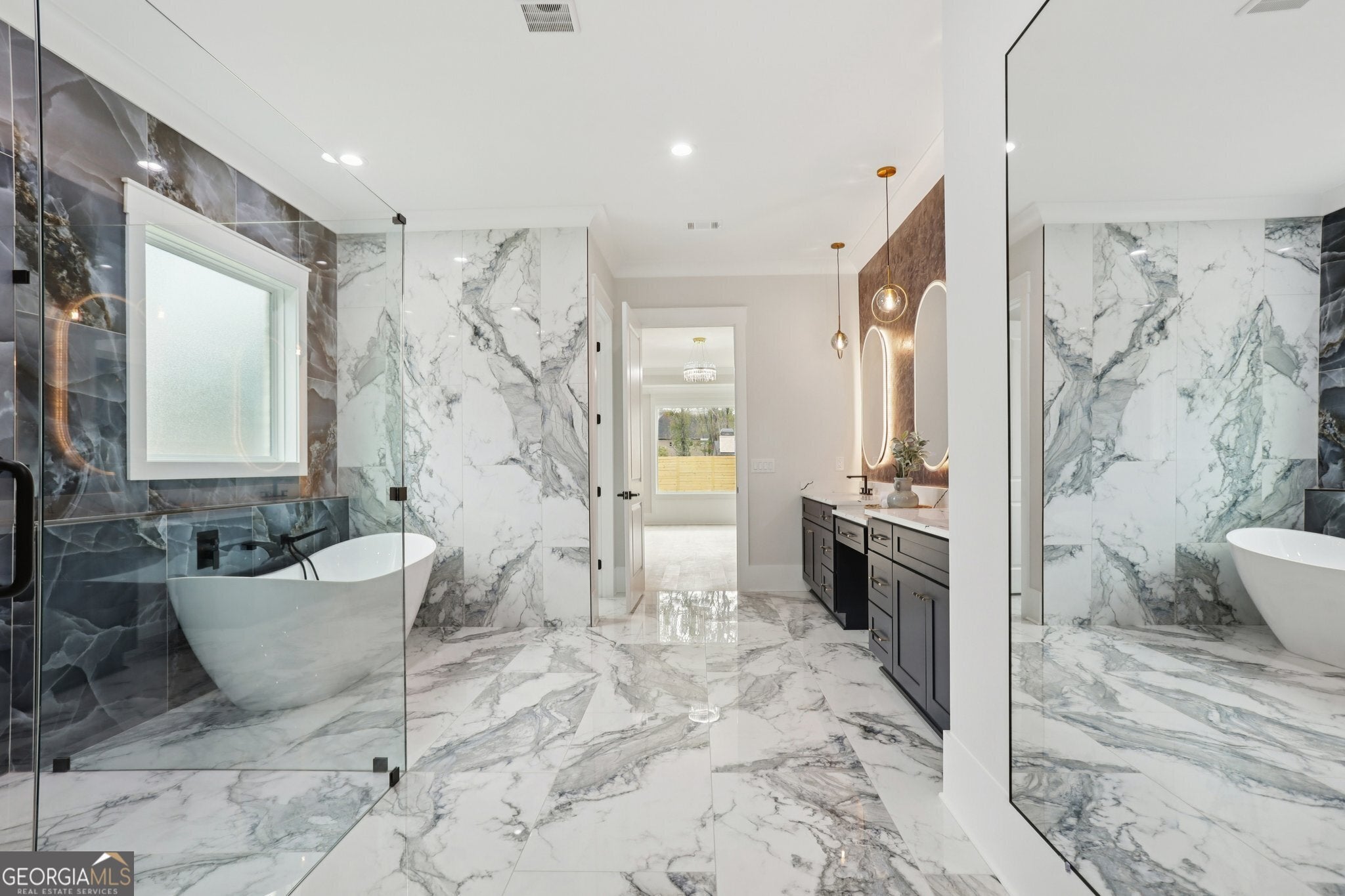 Hands Down.. The best opportunity in this price range! Lowest Cost per Sq Ft for the most luxury upgrades including a 4 car garage, 2 full kitchens, Privately gated and positioned on a premium corner homesite, this architecturally striking residence showcases exceptional scale, craftsmanship, and modern functionality. Designed for both grand entertaining and refined everyday living, the home offers five bedrooms, five full baths, two half baths, two laundry rooms, and a fully equipped secondary kitchen. A dramatic two-story foyer introduces expansive living spaces defined by 10-foot ceilings on both levels and striking black six-foot windows that flood the home with natural light. Custom millwork, curated designer lighting, and refined finishes create a cohesive, high-end aesthetic throughout. At the center of the home, the chef's kitchen features an oversized island, professional-grade appliance suite, stone countertops, custom cabinetry, and a white porcelain farmhouse sink. Designed for versatility, the fully equipped secondary kitchen includes its own refrigerator, dishwasher, and exterior-vented range - ideal for large gatherings, catering, or multi-generational living. The main living room is anchored by a grand fireplace finished in hand-painted Venetian plaster and opens seamlessly to the covered patio and outdoor kitchen with gas grill and sink, creating true indoor-outdoor living. The primary suite on the main level offers a private retreat with its own fireplace, spa-inspired bath, dual vanities, and a custom walk-in closet featuring a center dresser with quartz countertops. A thoughtfully designed mudroom and spacious main-level laundry room add convenience and everyday practicality. Upstairs, four generously proportioned secondary suites each feature private ensuite baths and walk-in closets. A dedicated office, expansive media and loft room with wet bar and fireplace overlooking the family room below, and a second laundry room provide exceptional flexibility for both everyday living and entertaining. Additional highlights include three fireplaces, black metal stair rails, an irrigation system, foam-insulated attic, dual HVAC systems, upgraded lighting packages, and under-cabinet lighting throughout. The four-car garage enhances both scale and function with 220-volt outlets for electric vehicles and a dedicated dog-washing station. The backyard offers ample space to design a private outdoor retreat. Pool renderings shown in marketing materials are virtually staged to illustrate potential outdoor possibilities. Ideally positioned near Downtown Duluth, Suwanee Town Center, and Downtown Lawrenceville, residents enjoy vibrant dining, boutique shopping, festivals, and community events, with convenient access to I-85, GA-316, and the greater Metro Atlanta area. Chateau Elan winery and resort, Mall of Georgia, and numerous parks and golf destinations are all nearby. Designed for those who appreciate architectural detail, privacy, and exceptional craftsmanship, this residence represents a rare opportunity to experience refined living in one of Gwinnett's most connected locations.
