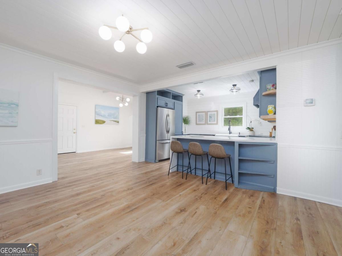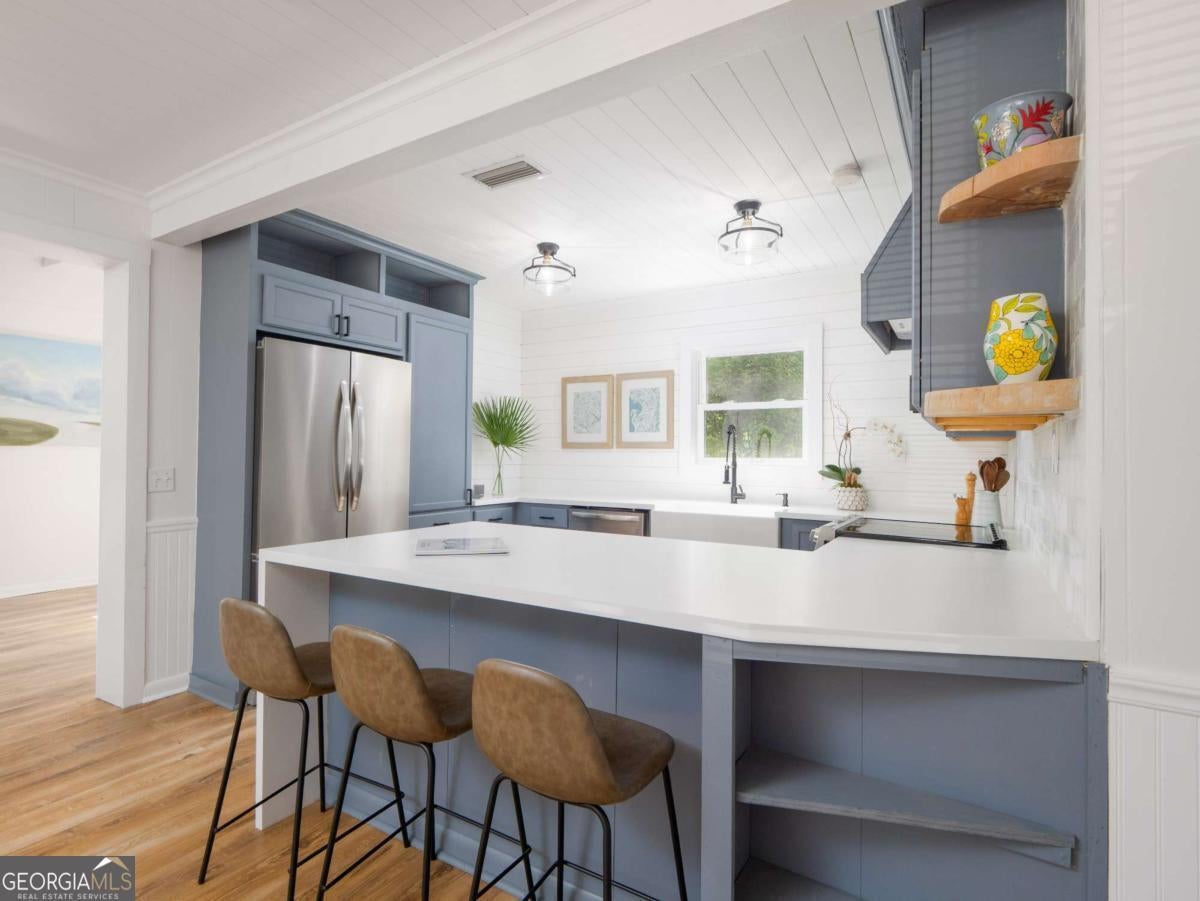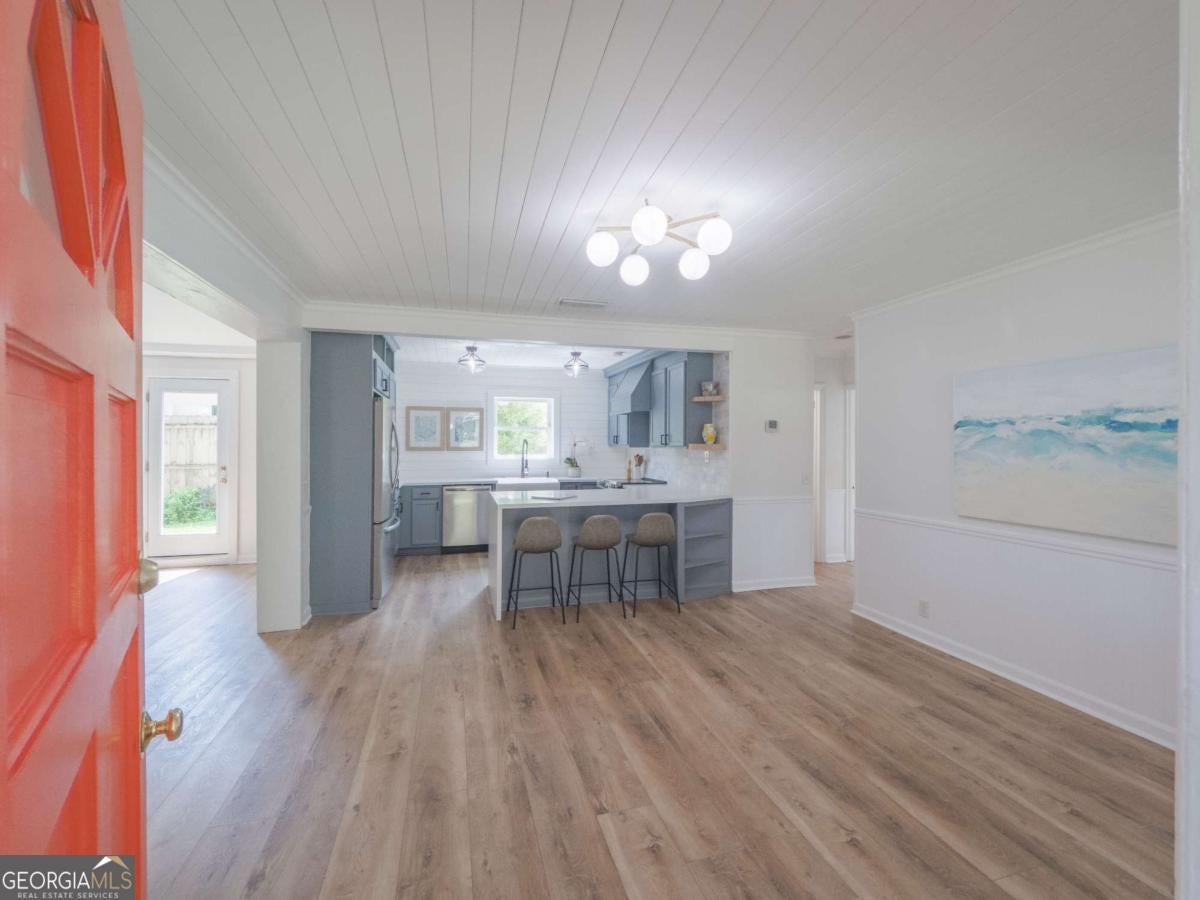 There's something special about this one-and you feel it the moment you step inside. 204 4th Avenue is more than a full renovation on a quiet, oak-canopied street on desirable mid St. Simons Island. It's a home that's been thoughtfully reimagined by artists-where every detail, from the flowing open floor plan to the curated light fixtures and finishes, reflects a sense of creativity and care. Built solid-literally-with full concrete block construction, this home offers the kind of lasting strength and insulation that's hard to come by. Inside, walls have been opened to expand the footprint and create seamless flow between the living spaces and the outdoors. The expanded chef's kitchen is a showpiece, complete with a dramatic custom LG HIMACS artic white countertop on the waterfall island, farmhouse apron sink, new cabinetry, and all-new stainless-steel appliances. Cali Aqua Tough floors run throughout-durable, waterproof, and soft underfoot-with a quiet sound pad that adds warmth and comfort. A newly added back door leads to a fully fenced and freshly sodded backyard, shaded by mature oaks and perfect for private gatherings or peaceful mornings. The double lot offers space to stretch out-whether on the back patio, the wide side yard, or the welcoming front porch. The home also includes a 464 sq ft attached garage not reflected in the official square footage-ideal for storage, studio space, or future expansion. Other updates include: double-pane windows, new bathroom vanity and lighting, updated contemporary fixtures, a 2018 roof and HVAC system, fresh interior paint, professional landscaping, and oak tree maintenance completed in April 2024. This isn't just a home-it's a space that inspires. If you're looking for something with character, function, and a quiet touch of artistry, 204 4th Avenue is waiting to be experienced.