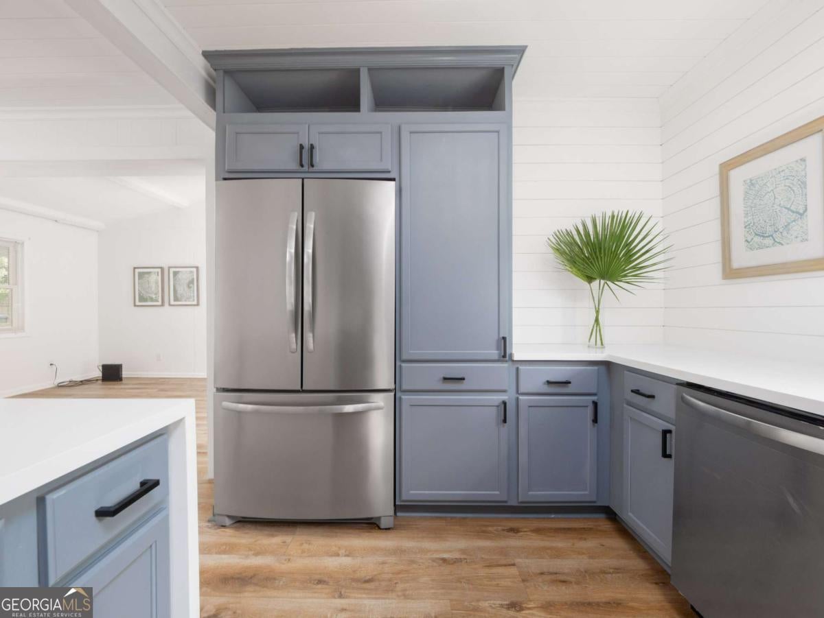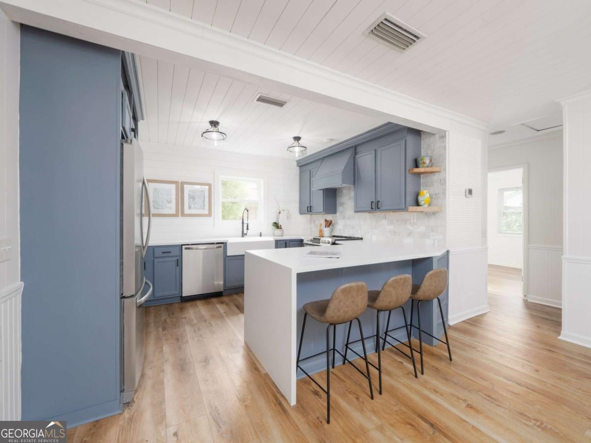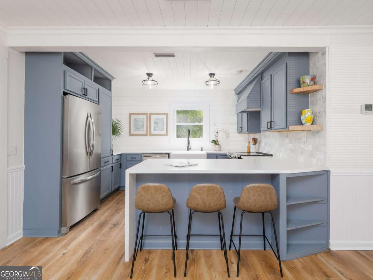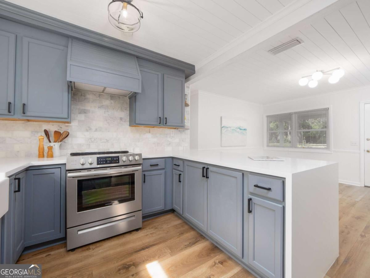 There's something special about this one-and you feel it the moment you step inside. 204 4th Avenue is more than a full renovation on a quiet, oak-canopied street on desirable mid St. Simons Island. It's a home that's been thoughtfully reimagined by artists-where every detail, from the flowing open floor plan to the curated light fixtures and finishes, reflects a sense of creativity and care. Built solid-literally-with full concrete block construction, this home offers the kind of lasting strength and insulation that's hard to come by. Inside, walls have been opened to expand the footprint and create seamless flow between the living spaces and the outdoors. The expanded chef's kitchen is a showpiece, complete with a dramatic custom LG HIMACS artic white countertop on the waterfall island, farmhouse apron sink, new cabinetry, and all-new stainless-steel appliances. Cali Aqua Tough floors run throughout-durable, waterproof, and soft underfoot-with a quiet sound pad that adds warmth and comfort. A newly added back door leads to a fully fenced and freshly sodded backyard, shaded by mature oaks and perfect for private gatherings or peaceful mornings. The double lot offers space to stretch out-whether on the back patio, the wide side yard, or the welcoming front porch. The home also includes a 464 sq ft attached garage not reflected in the official square footage-ideal for storage, studio space, or future expansion. Other updates include: double-pane windows, new bathroom vanity and lighting, updated contemporary fixtures, a 2018 roof and HVAC system, fresh interior paint, professional landscaping, and oak tree maintenance completed in April 2024. This isn't just a home-it's a space that inspires. If you're looking for something with character, function, and a quiet touch of artistry, 204 4th Avenue is waiting to be experienced.