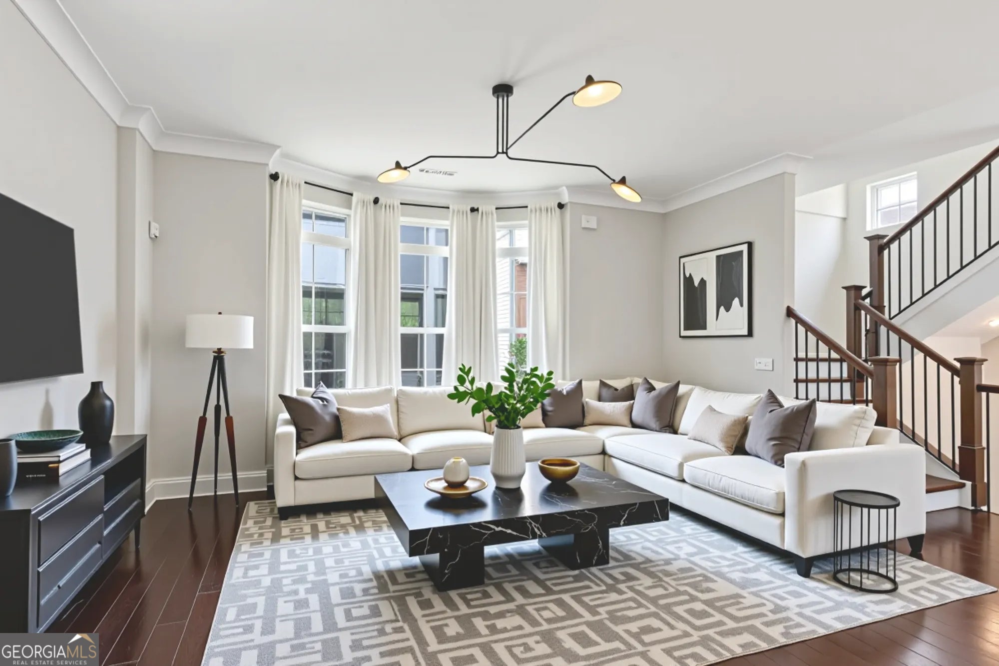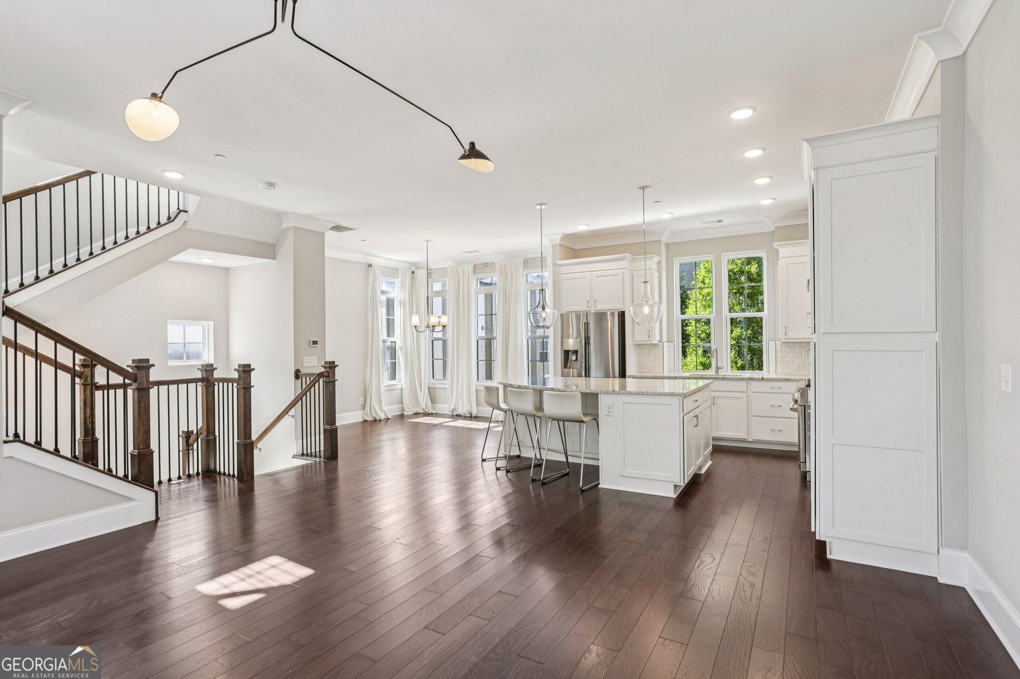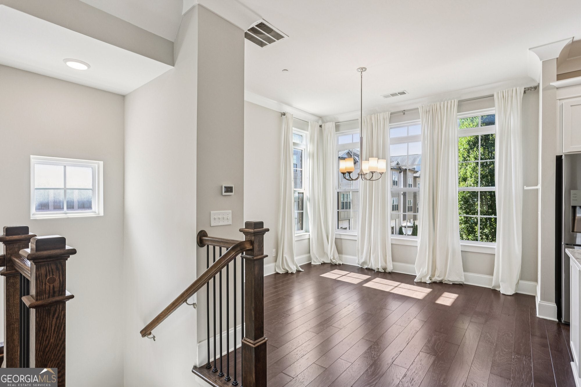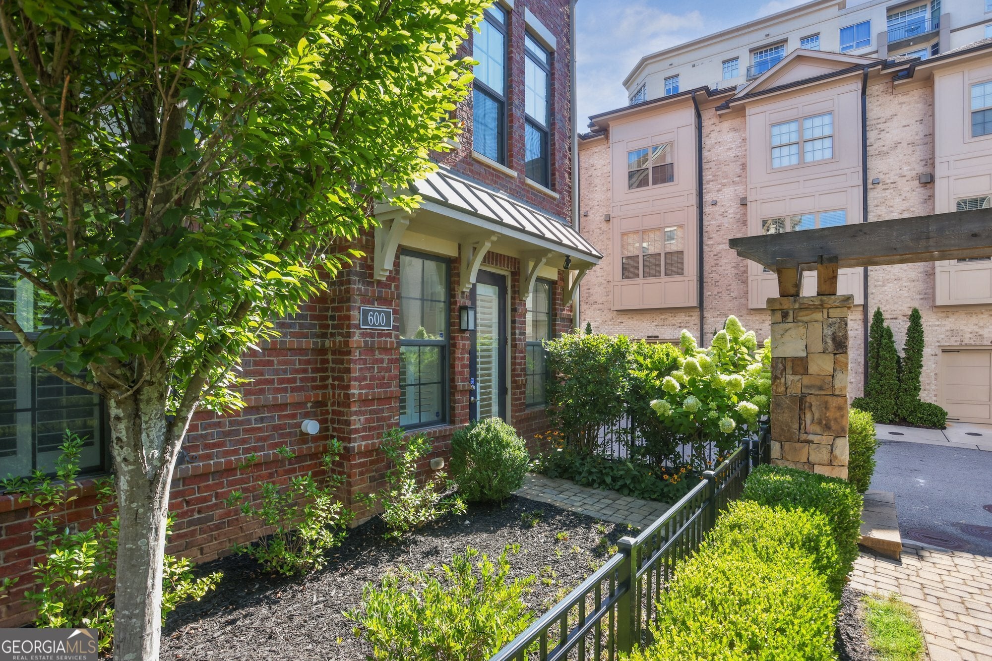 Experience refined in-town living in this stunning end-unit townhome nestled within the sought-after, gated community of Broadview Place in Atlanta's prestigious Buckhead community. Boasting Manhattan Brownstone vibes, this impeccably maintained, four-bedroom/three full bath/two half-bath residence spans 4 floors and is perfectly designed with thoughtfully curated living spaces. Boasting a sleek, modern aesthetic, the home features an open-concept layout highlighted by soaring 10-foot ceilings, rich hardwood floors, designer's select light fixtures, extensive trim package, and custom plantation shutters to name a few. The gourmet kitchen is an entertainer's dream open to both the sunlit dining area and living room. Upper-scale and perfectly equipped, this culinary masterpiece is appointed with top-of-the-line stainless steel appliances, beveled subway tile backsplash, granite counters that overflow to the spacious central island with bar seating, and ample custom cabinetry. Bedrooms and full baths span throughout the home, but you can find your personal retreat, the owner's suite, on the 3rd level. This primary haven is upgraded with plush carpet flooring, triple bay window, generous closet with shelving system, and is complete with a lavishly styled ensuite full bath. Tile floors, dual-sink vanity, large tiled shower accented with a frameless glass door-the primary bath is sure to please. Adding a touch of versatility, the top-floor flex space features an ideal layout for a media room, home office, or fitness area. This crowning jewel includes custom built-ins and French door access opening to a private, covered balcony with skyline views, offering a serene escape in the heart of the city. Additional highlights include a two-car attached garage, designer finishes throughout, and abundant of natural light from this perfectly positioned end-unit. Located just minutes away from major highways, MARTA, and just around the block from premier shops, dining, and entertainment, this exceptional residence offers the perfect blend of upscale comfort and unmatched convenience in one of Atlanta's most sought-after neighborhoods.