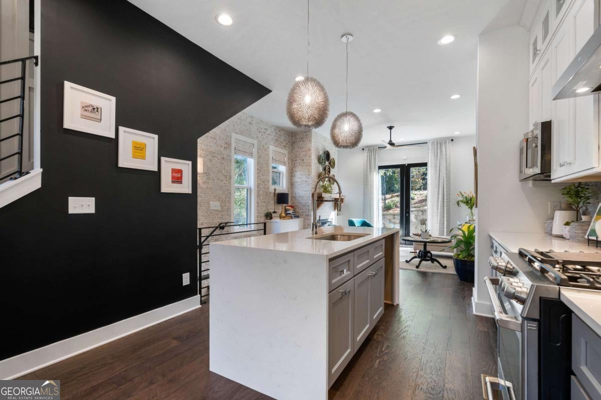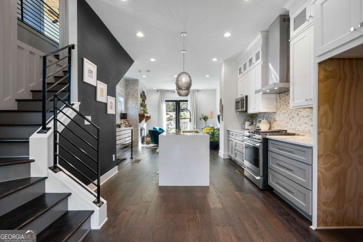 Welcome to 2328 Mason Dr, a thoughtfully designed modern townhome in the Mason Flats community, just minutes from Grant Park. This 2-bedroom, 2.5-bath home features an open-concept floor plan with curated finishes throughout. Highlights include an exposed brick accent wall, custom wood panel detailing, and a built-in breakfast nook that blends style with function. The kitchen offers a quartz waterfall island, stainless steel appliances, and sleek cabinetry. Upstairs, both bedrooms feature en-suite bathrooms, including a spacious primary suite with a walk-in shower. Enjoy a private outdoor deck, a two-car tandem garage, and access to a shared community firepit-perfect for relaxed evenings with neighbors. An assumable mortgage with a favorable rate may also be available, offering a rare opportunity for qualified buyers. All located in a quiet, well-connected community with easy access to The Beacon, BeltLine, Summerhill, and more.