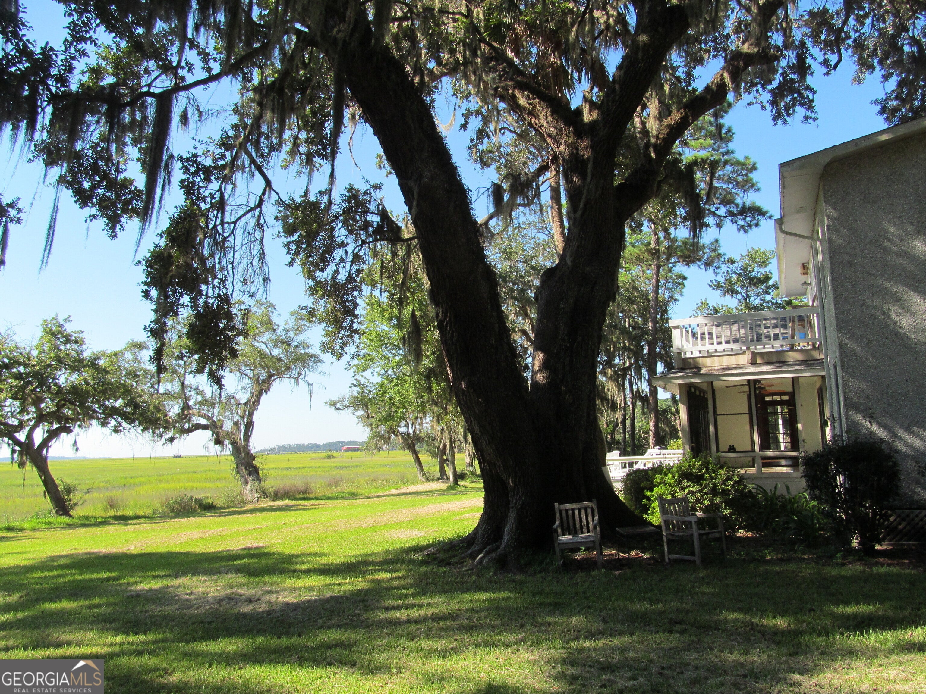 This home is on a beautiful marsh front site with oak trees and pasture. There is a clear view of sunrise and moonrise over the marsh and Sapelo Island. Feel a breeze across the marsh every evening which you can enjoy from first and second floor decks. You can watch shrimp boats on the Intracoastal Waterway and thunderstorms as they come across the marsh. This home is ideal for entertaining family and friends! On the first floor a vaulted great room with wood burning fireplace opens to a large family/dining room with gas log fireplace and sunroom. Also on the first floor is the owners' suite, powder room, laundry room, and a gourmet kitchen with newly installed appliances and granite countertops. On the second floor is a large bedroom suite with wood burning fireplace, a second bedroom with full bath, and an office area with drawers for storage. The house grounds feature a carport and workshop.