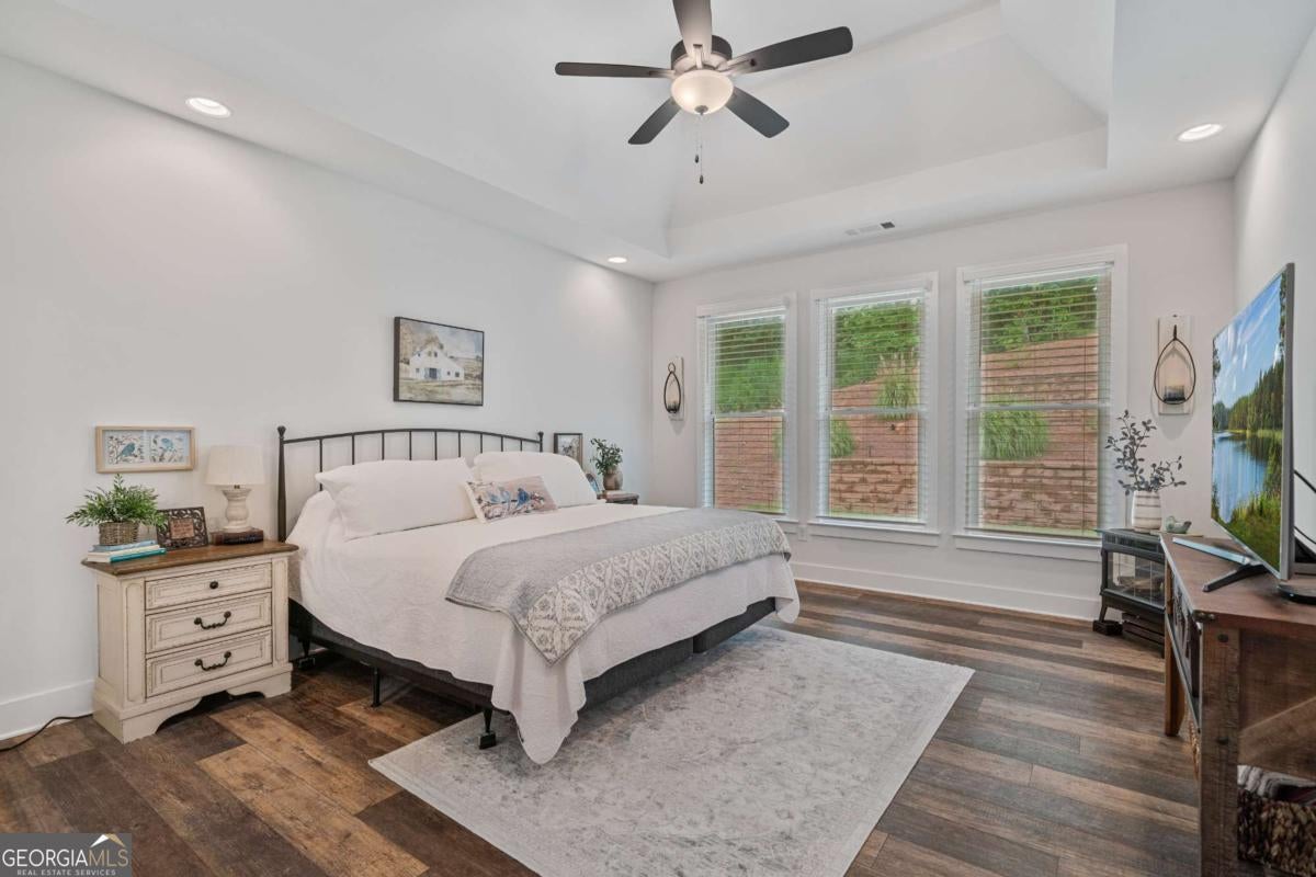 Discover an exceptional opportunity for upscale, modern living at 298 Boulder Lake Drive NE, a magnificent 4-bedroom, 3.5-bathroom residence situated on a generous 0.59-acre lot in one of Cartersville's most sought-after communities. This home, built in 2022, seamlessly blends sophisticated design with practical comfort, creating an environment perfect for both daily life and gracious entertaining. The curb appeal is immediately striking, featuring a classic farmhouse-inspired facade with a clean board and batten design and crisp, dark-trimmed windows, all set against a well-maintained, lush lawn. As you step across the threshold, you are greeted by an expansive open-concept floor plan that culminates in a breathtaking two-story great room. This dramatic space is flooded with natural light, creating an airy and grand atmosphere that highlights the rich, durable hardwood-style flooring found throughout the main living areas. A modern electric fireplace, framed by stylish stone-look tile, anchors the room, offering a cozy focal point for relaxing evenings. Culinary enthusiasts will fall in love with the designer gourmet kitchen. It is a stunning display of modern style and high-end functionality, featuring pristine white shaker cabinetry, brilliant quartz countertops, and a large center island that provides abundant prep and casual dining space. It is fully equipped with stainless-steel appliances, including a sleek range hood. Complementing this space is a dedicated, separate formal dining room, which allows for elegant, private dinner parties and holiday gatherings-a desirable feature for those who love to host. The main level is thoughtfully designed for convenience with the luxurious owner's en-suite, ensuring privacy and single-level living comfort. This private retreat boasts an elevated tray ceiling for an added touch of elegance. The accompanying primary bathroom is a spa-like escape, complete with a dual vanity set in stone, and a spacious, glass-enclosed walk-in shower finished with designer tile. A substantial walk-in closet provides excellent storage. The main floor also includes a convenient half-bath and the laundry room. The upper level of the home maintains the high standards set downstairs. It hosts a second primary-style bedroom with its own private en-suite bathroom, offering a perfect, private sanctuary for in-laws or overnight guests. Two additional, spacious bedrooms share a third well-appointed full bathroom, providing ample personal space for family members. Extending the living space outdoors is the private, screened patio, featuring upgraded flooring. This area is a true three-season retreat, offering a comfortable, shaded place to enjoy morning coffee or evening cocktails while overlooking the expansive backyard. The generous 0.59-acre lot provides a desirable sense of privacy and space for gardening, play, or future customization. Life at 298 Boulder Lake Dr NE comes with the added benefit of living in an active, friendly HOA community. Residents enjoy access to exceptional amenities, including a resort-style swimming pool, a volleyball court, and a basketball court-perfect for leisure and fitness just steps from your door. Located in the desirable 30121 zip code, the home offers a perfect balance of peaceful community living with easy access to Cartersville's local shopping, dining, and major commuter routes. This residence is a rare find, combining exceptional style, modern features, spacious living areas, and a community-rich lifestyle. Do not miss the opportunity to call this your new home. Contact us today to schedule your private tour.
