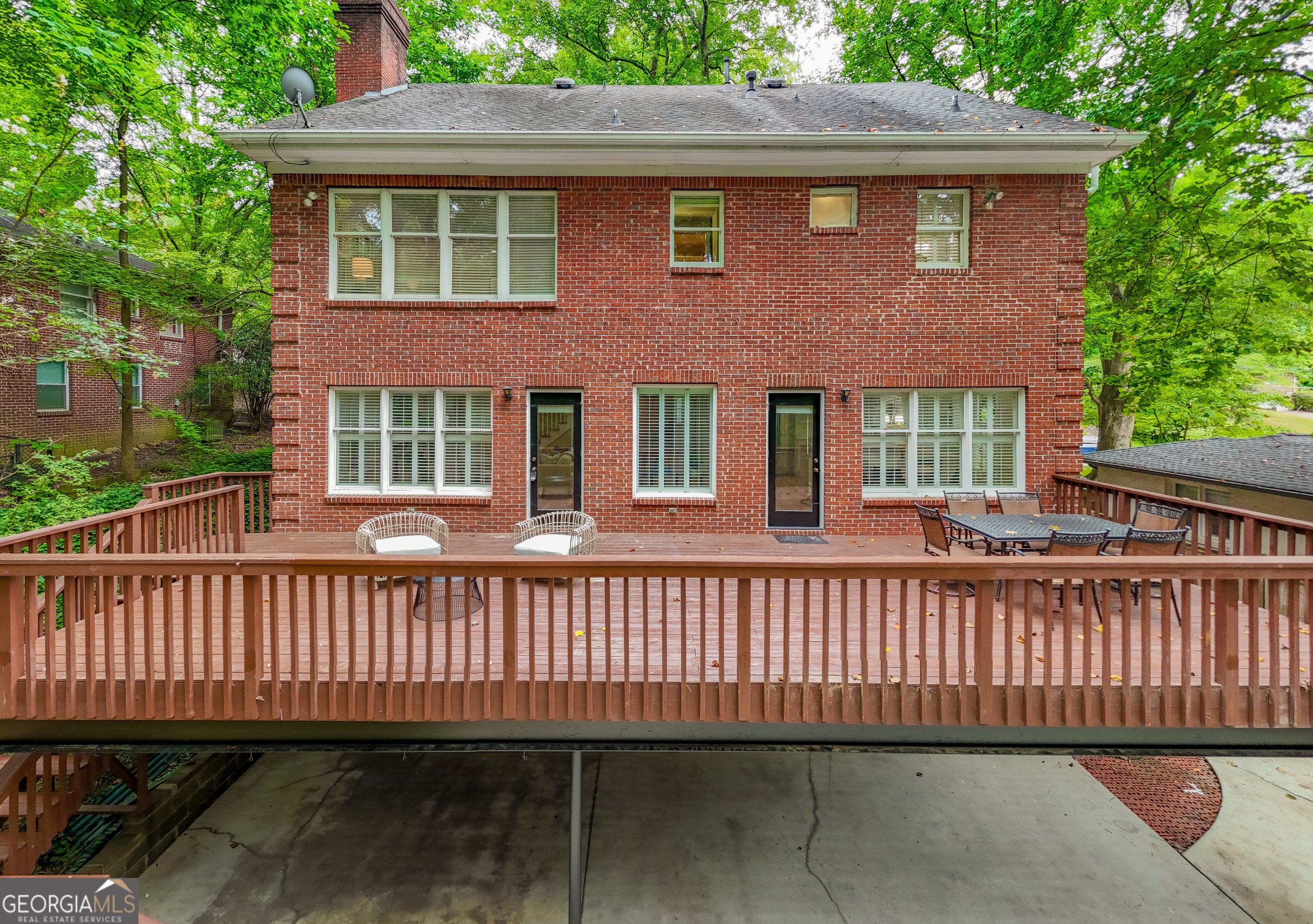 Exceptional, spacious 4BR/2.5BA four-sided brick home in coveted Parkwood neighborhood! Walk to Dancing Goats coffee, Toy Park, Chai Pani & Taqueria del Sol, plus East Lake MARTA for easy access to Mercedes-Benz Stadium & downtown Atlanta. Equidistant from vibrant downtown Decatur dining scene & trendy Oakhurst Village w/ sought-after CoD schools. Tight-knit, serene neighborhood where neighbors stay for generations hosting year-round gatherings - rare opportunity as only few homes sell annually! Stunning foyer w/ double glass doors leads to large LR w/ soaring wood beams & cozy gas FP flowing seamlessly to gourmet kitchen featuring 5-burner gas range, SS appliances, generous pantry, dedicated coffee bar & abundant storage perfect for entertaining. Formal DR accommodates dinner parties while eat-in kitchen opens to expansive deck overlooking private 0.45-acre wooded oasis - your own backyard retreat! Large office with built-ins perfect for remote work. Luxurious primary suite w/ tray ceiling overlooks established forest, featuring spa-like bath w/ custom walk-in closet, double vanity w/ storage, relaxing soaker tub & walk-in shower w/ dual heads. New hardwoods upstairs complement beautiful stained wood doors throughout. Three guest BRs share large hallway bath, one w/ dual closets & charming window seat. Convenient upstairs W/D hookups make family life easier. Finished basement transforms daily living w/ two large bonus rooms (new LVP flooring), one w/ fireplace - endless possibilities for home theater, gym, additional office, playroom or teen hangout - plus storage. Opportunity to add full bath downstairs. Spacious attic offers potential for additional finished square footage. Outdoor paradise features wooded backyard sanctuary perfect for morning coffee or evening beverage. Generous parking includes concrete pad ideal for basketball, games & outdoor fun, plus covered carport & 2-car garage w/ epoxy flooring. Recent premium updates: new high-grade HVAC systems, classic lighting throughout, crown molding, elegant plantation shutters. Every detail honors timeless architecture while meeting today's lifestyle demands. This isn't just a home - it's your gateway to the quintessential Decatur lifestyle where community, convenience & tranquility perfectly intersect!