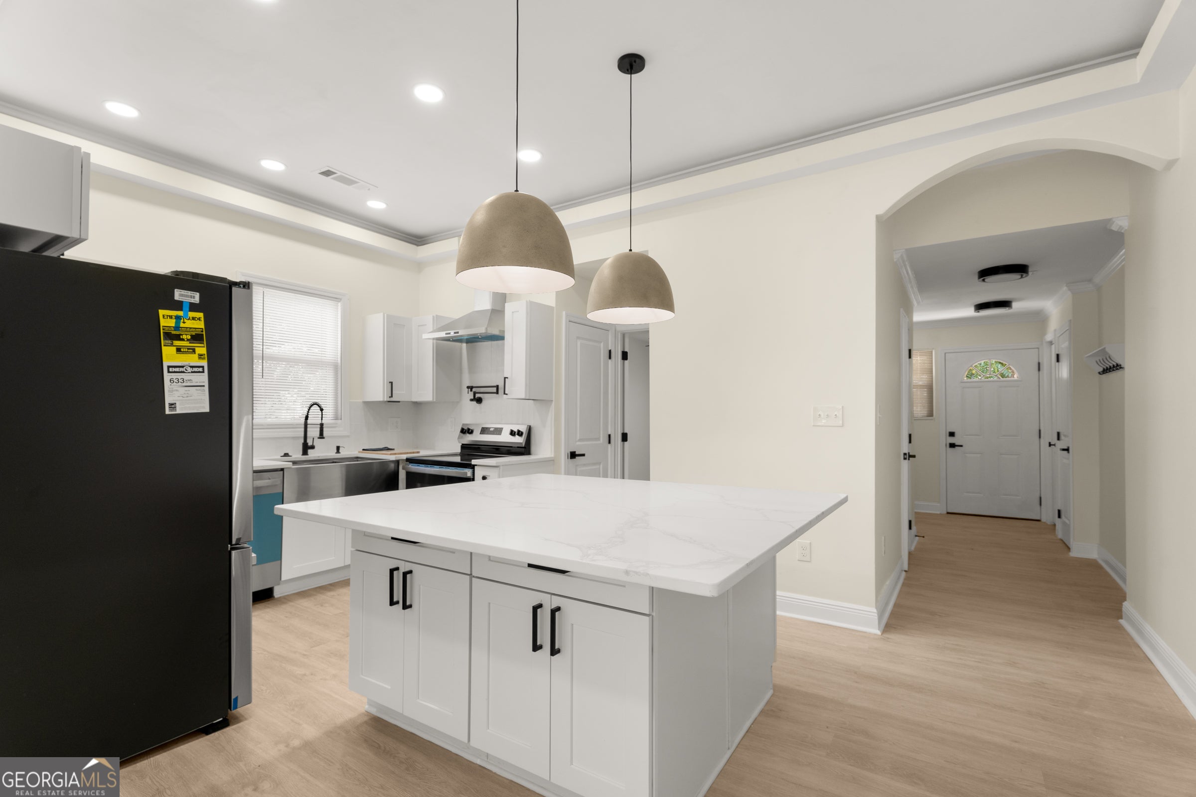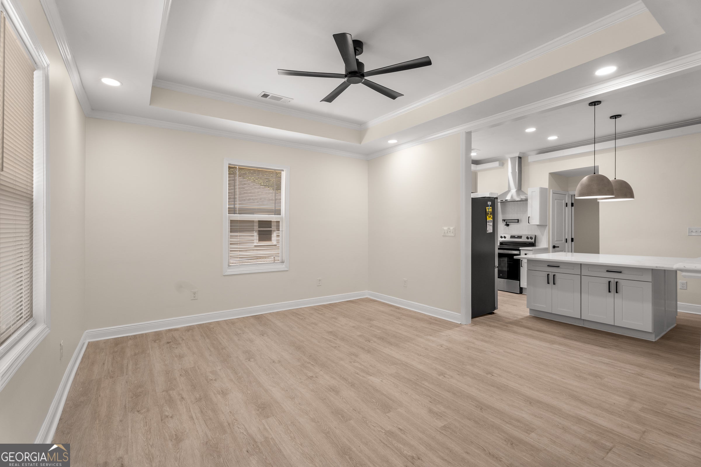 Welcome to your dream home at 121 Peachtree St., Griffin, GA 30223! This fully renovated 3-bedroom, 2-bathroom residence offers a perfect blend of modern upgrades, timeless charm, and unbeatable convenience. Nestled in a friendly neighborhood, this move-in-ready home is ideal for families, first-time buyers, or anyone seeking a stylish retreat just minutes from downtown Griffin. Enjoy a bright and open floor plan with 3 generously sized bedrooms and 2 full bathrooms, designed for modern living. The newly renovated kitchen boasts sleek stainless steel appliances, contemporary cabinetry, a stylish breakfast bar, and custom ambient lighting that creates a warm, inviting atmosphere for cooking and entertaining. Relax in the inviting living room, featuring large windows that flood the space with natural light and fresh, modern finishes. The master bedroom includes a beautifully updated en-suite bathroom with luxurious heated floors, offering a spa-like retreat for ultimate comfort. Step outside to a well-maintained backyard, perfect for entertaining, gardening, or unwinding. Every detail of this home has been thoughtfully updated, from new flooring and modern fixtures to energy-efficient systems, ensuring a turnkey experience. Plus, its prime location offers easy access to shopping, dining, schools, and major highways for a seamless commute.