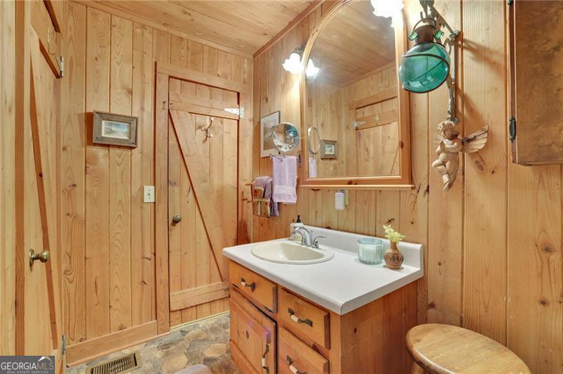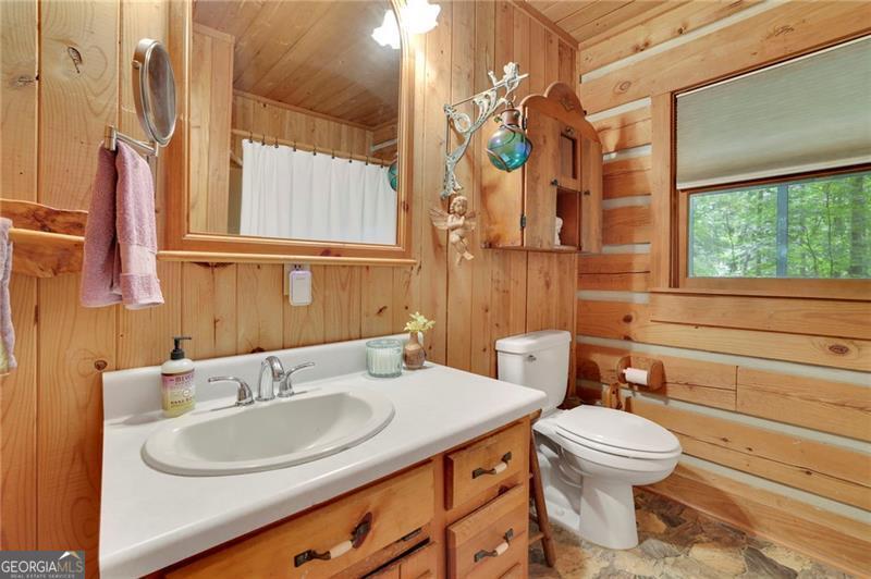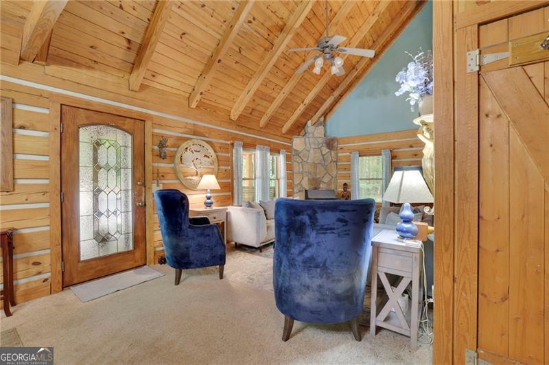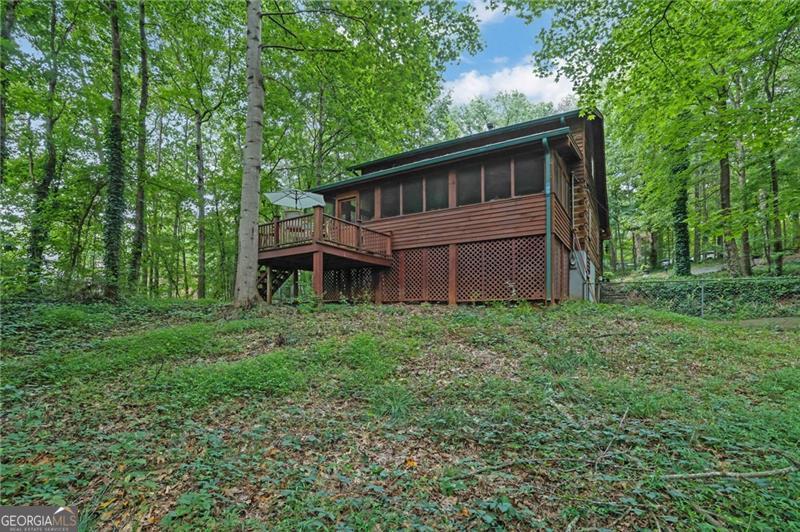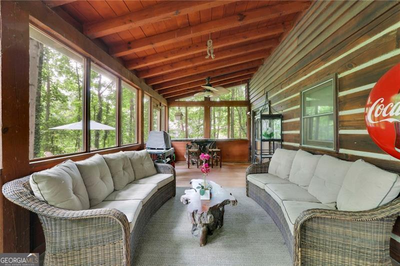 Escape to your own private retreat just minutes from Downtown Woodstock and Roswell! Set on two serene acres with beautiful oak hardwoods, this stunning hewn log cabin home offers the perfect blend of rustic charm and modern comfort. Tucked away from the road for ultimate privacy, you'll feel like you're in the mountains while still being close to shopping, dining, and all that Woodstock and Roswell have to offer. The welcoming front porch is ideal for morning coffee, while the enclosed screened/glass back porch provides year-round enjoyment with peaceful backyard views. The fenced front yard is perfect for pets, and the soothing sound of birdsong completes the tranquil setting. Inside, the main level features hardwood floors under the carpet and a charming wood-burning fireplace that can heat the entire home in the winter, plus a propane gas backup heat system for peace of mind. The unfinished basement spans the full length and width of the home, is stubbed for a bathroom, and is ready to be transformed into anything your lifestyle requires. Enjoy energy efficiency year-round thanks to the natural insulation of log construction. This solidly built home is designed to stand strong against whatever Mother Nature brings. If you've been dreaming of a private log cabin lifestyle with modern convenience close by, this is your chance. Schedule your visit today-this one is full of charm and won't last long!