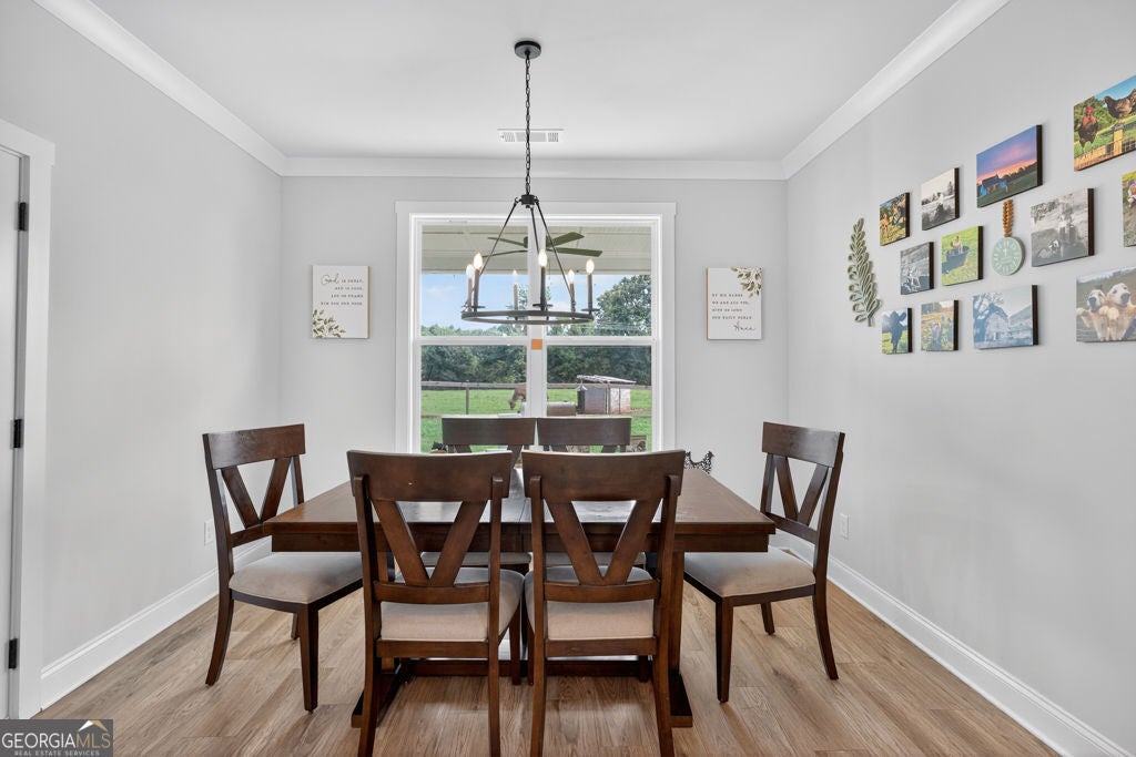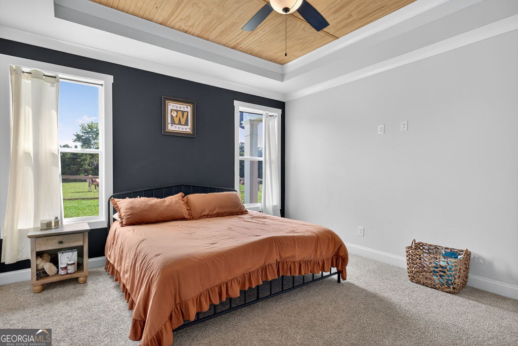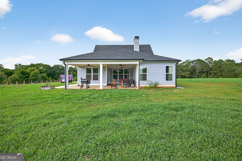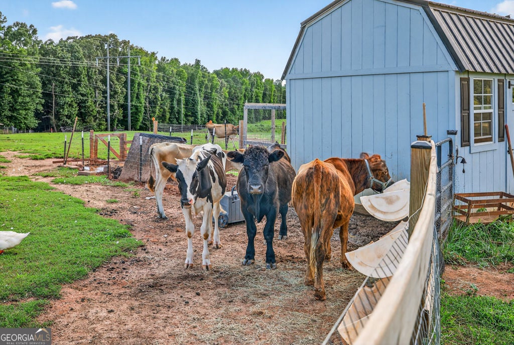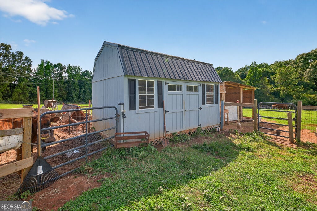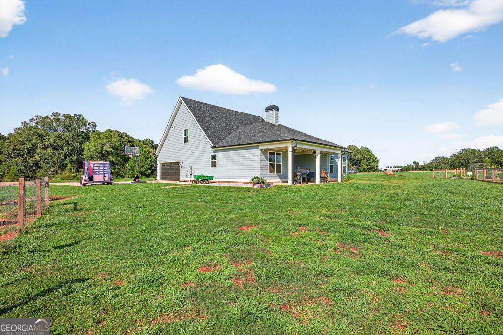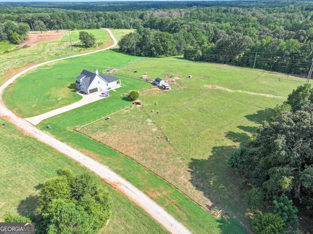 Welcome to your private retreat in Bogart! This adorable farmhouse is just over a year old and is nestled on 8 spacious acres, ideal for peaceful living! Situated far from the main road on a private community drive, you will love quiet mornings on your front porch swing! This property is a homesteader's dream with farm fencing for your animals, an established garden, and a chicken coop. Step inside to discover a warm and welcoming open-concept living space filled with natural light! The heart of the home is the oversized kitchen complete with a large island that is perfect for gathering, cooking, and entertaining! The spacious primary bedroom is located on the main level, offering privacy and ease of access. Attached is the primary en suite with double vanities, large tiled shower with double shower heads and glass door, and a spacious closet! Upstairs, you'll find three additional bedrooms, two full bathrooms with tiled showers, a great bonus room, and excellent attic storage with spray foam insulation- ideal for keeping things organized without sacrificing living space! Enjoy evenings on your covered back porch. While it feels like a world away, you're minutes away from Athens and just over an hour from Atlanta, giving you the best of both serenity and convenience! Extremely low maintenance HOA to maintain shared drive without being too restricting! Don't miss this opportunity to own a fully functional mini farm with modern comforts and timeless charm! Welcome to Bear Creek Meadows Drive!