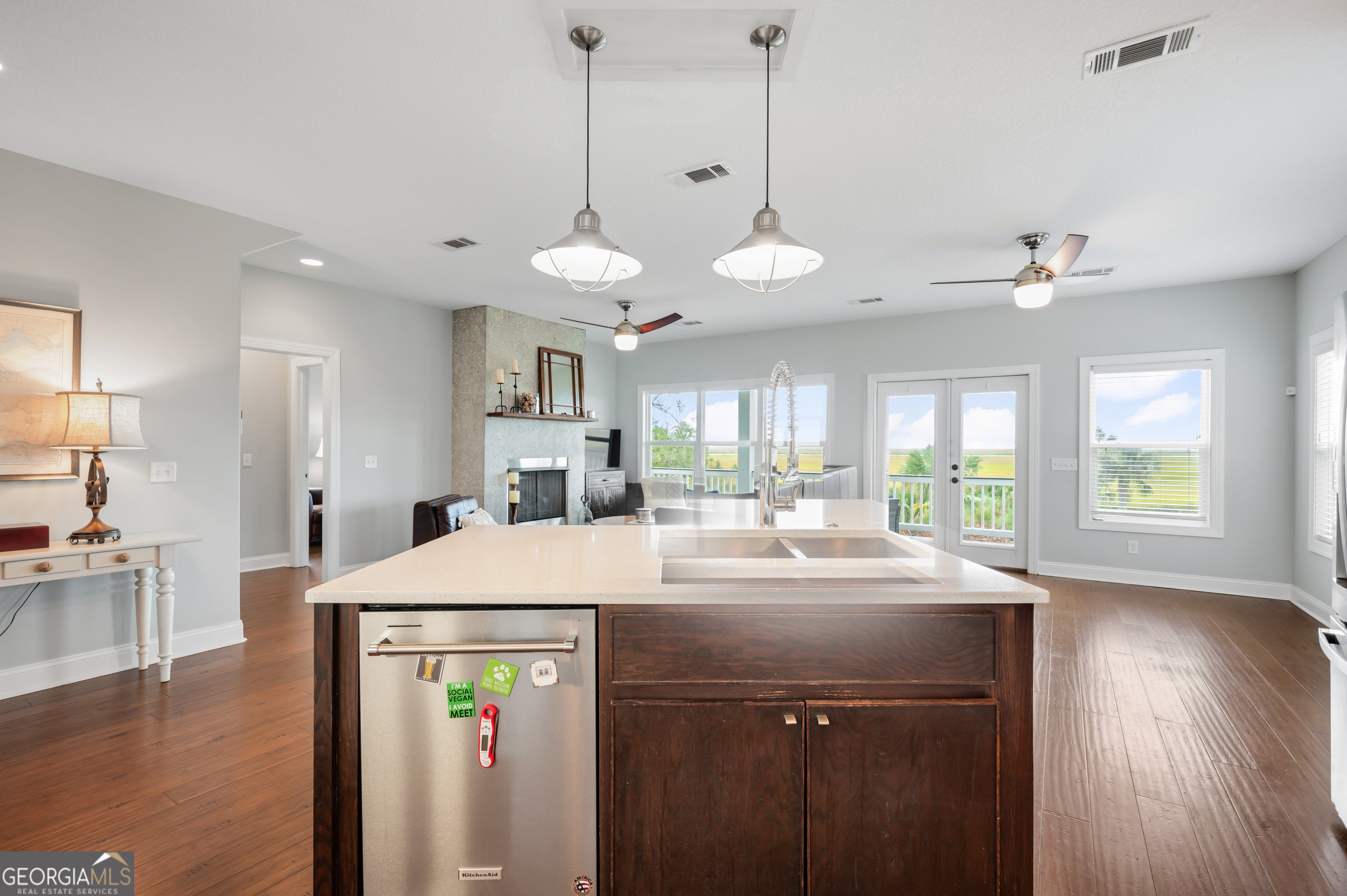 Welcome to this stunning marsh front coastal-style home in the highly sought-after Maiden Creek Landing! Priced aggressively below appraised value, this is an incredible opportunity to own in this fast-growing neighborhood on one of the most desirable marsh front lots. From the moment you step inside, you'll be captivated by the incredible views that flood the space through the expansive back wall of glass overlooking Maiden Creek and Jekyll Island. The open-concept design seamlessly connects the kitchen, den, and dining areas, creating a spacious and inviting atmosphere perfect for both everyday living and entertaining. Step out onto the large main deck and take in the breathtaking marsh views-truly the heart of this home. The striking triple-level design not only enhances the home's elevation but also maximizes the panoramic vistas. The spacious master suite is a retreat in itself, featuring its own private balcony for peaceful moments. The crow's nest is a standout feature, offering long-range views that make this home feel like a private sanctuary. Maiden Creek Landing subdivision offers an array of amenities, including a large clubhouse on deep water with a pool, an exercise room, bathrooms, a fish cleaning station, a dock, and a self-serve covered boat lift. Located apx. 1 1/2 miles to one of Georgia's top semi-private golf facilities, the Sanctuary Golf Club, a Love Golf Design/Fred Couples Signature course. This home is a one-of-a-kind opportunity in a prime location!