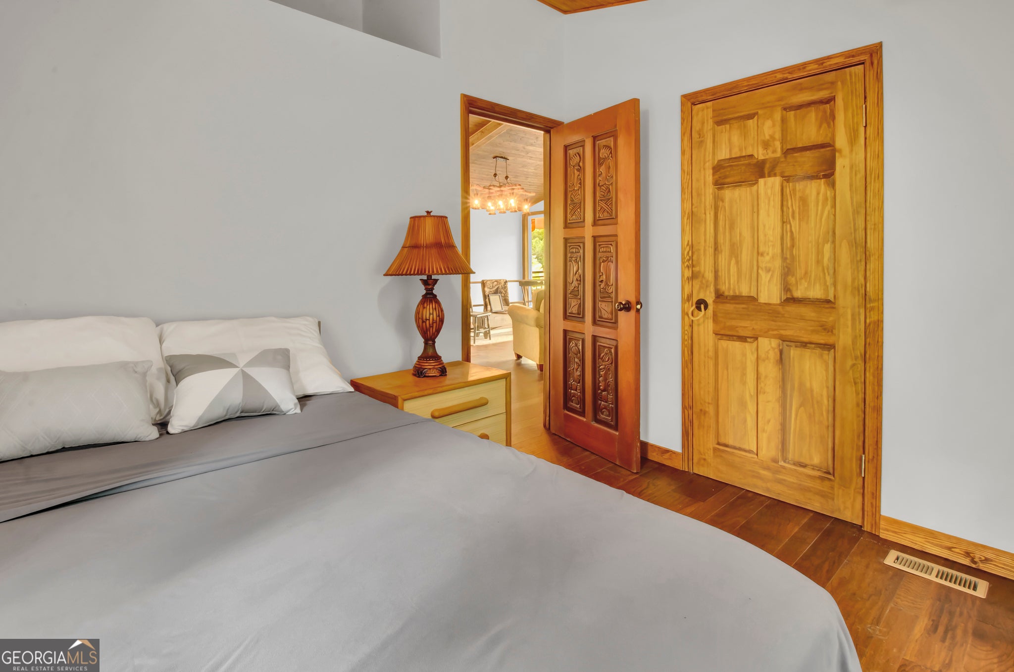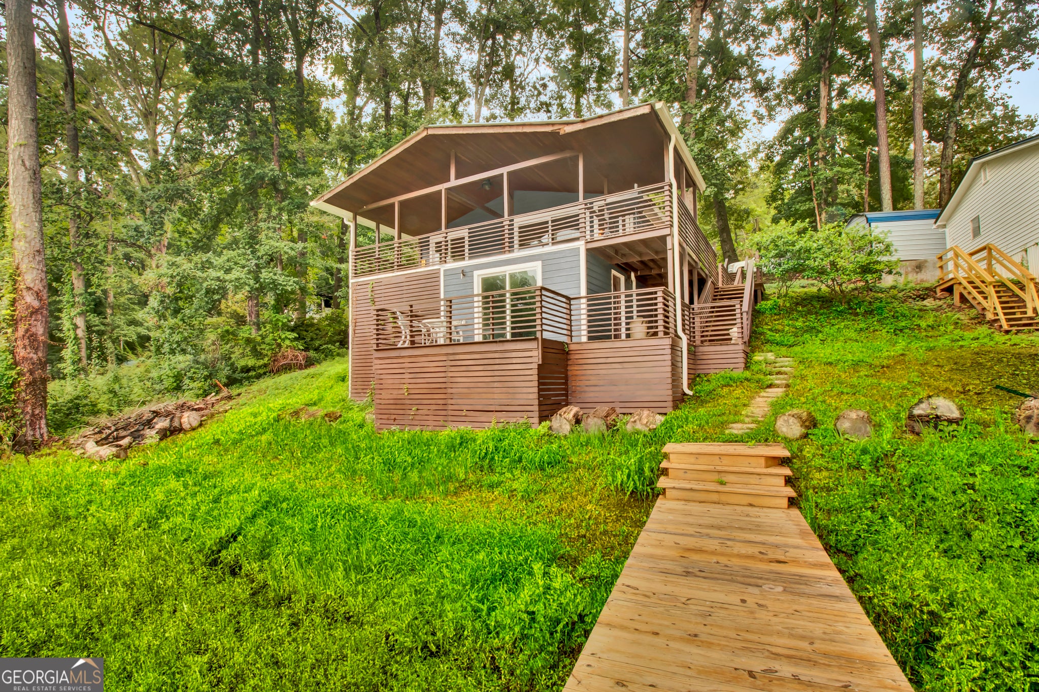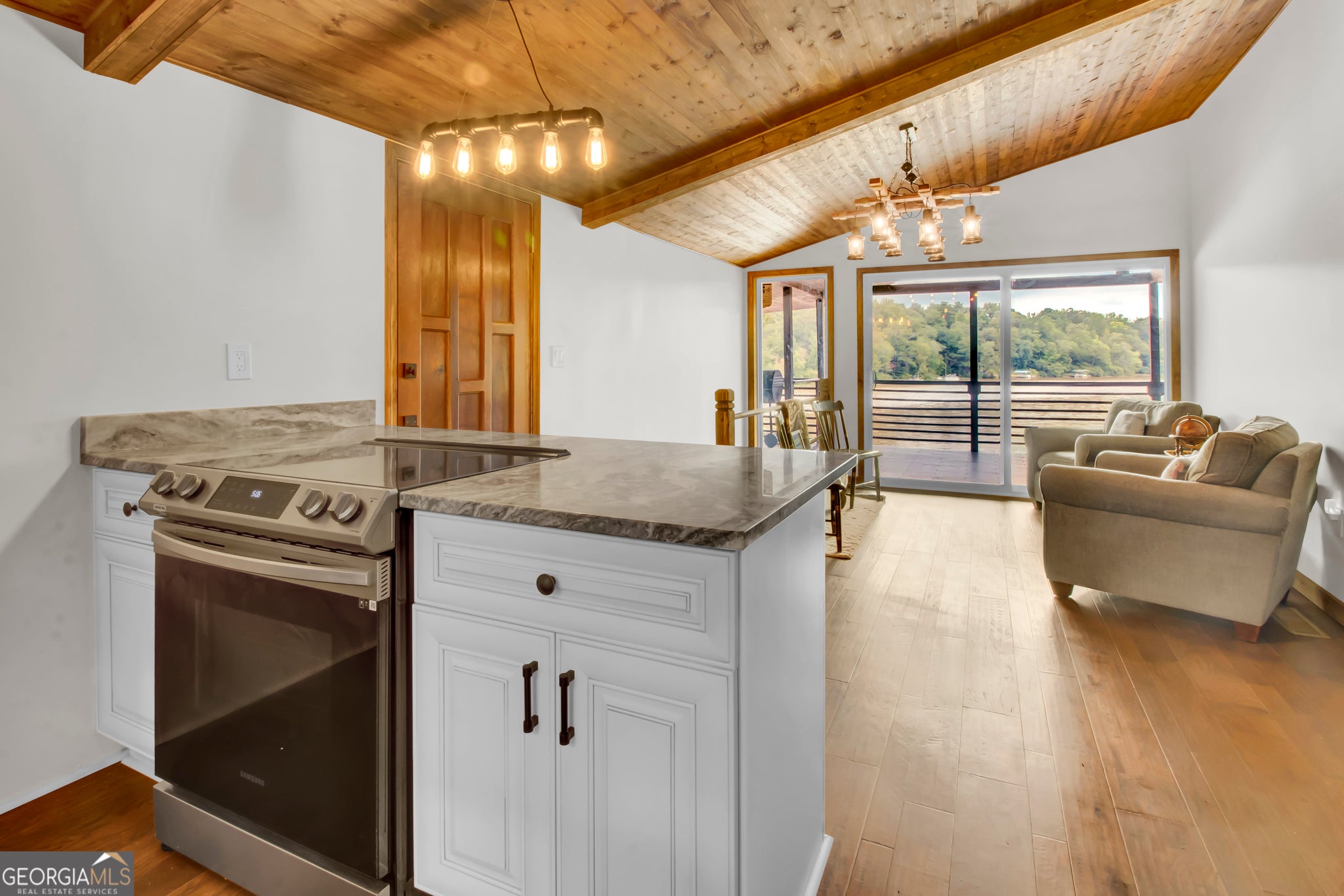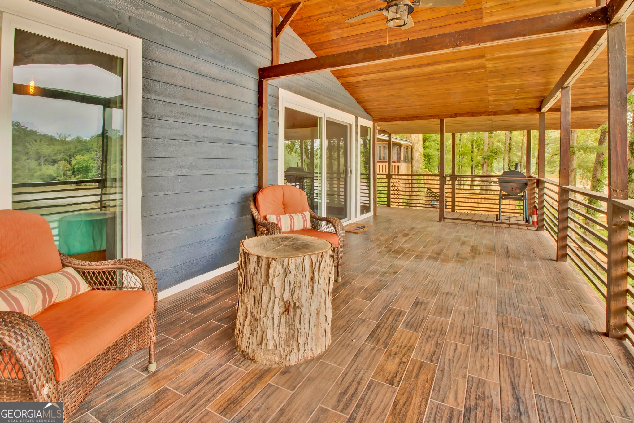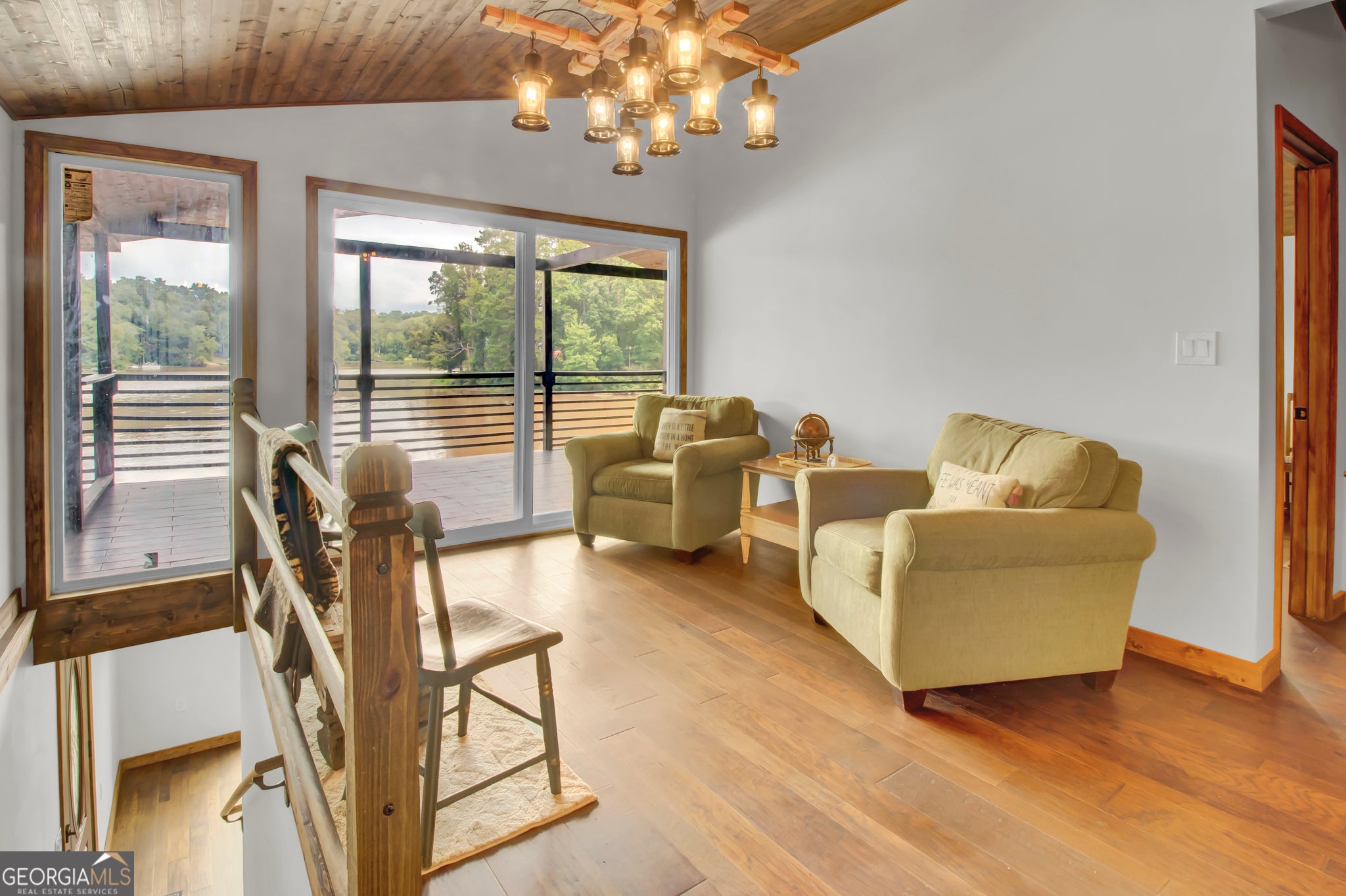 Step into this stunning double-deck lake home featuring a contemporary modern design and fully updated interior. Enjoy the elegance of mahogany custom doors, gleaming hardwood floors, and top-of-the-line stainless steel and smart appliances. The home comes fully furnished with custom cabinetry and spacious bedrooms, including a master suite that opens directly onto a gorgeous balcony. With beautiful views and a sleek, modern aesthetics, this home is truly a standout. The home has its own private dock and lake access. Perfect for entertaining and fishing! Easy highway access. 15 minutes from Tanger Outlets. Tons of shopping and restaurants nearby 4 minutes from High Falls State Park and water park. Perfect vacation home or Airbnb. House next door is also for sale also at 119 Willow. NO HOA!! Perfect for a vacation home or Airbnb.