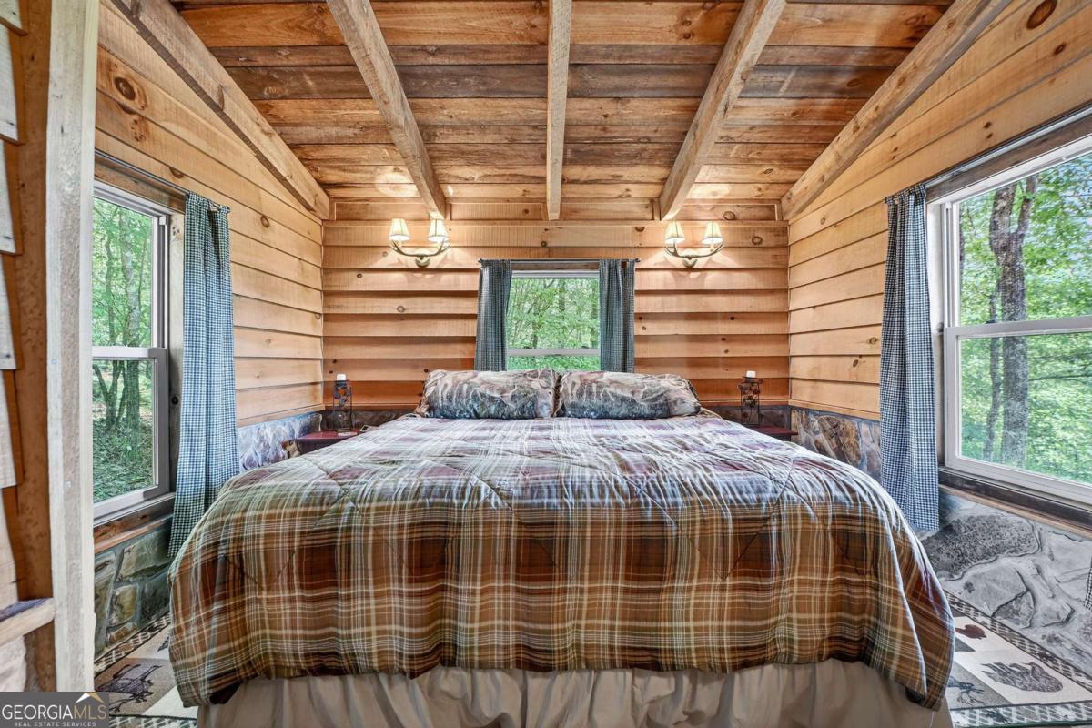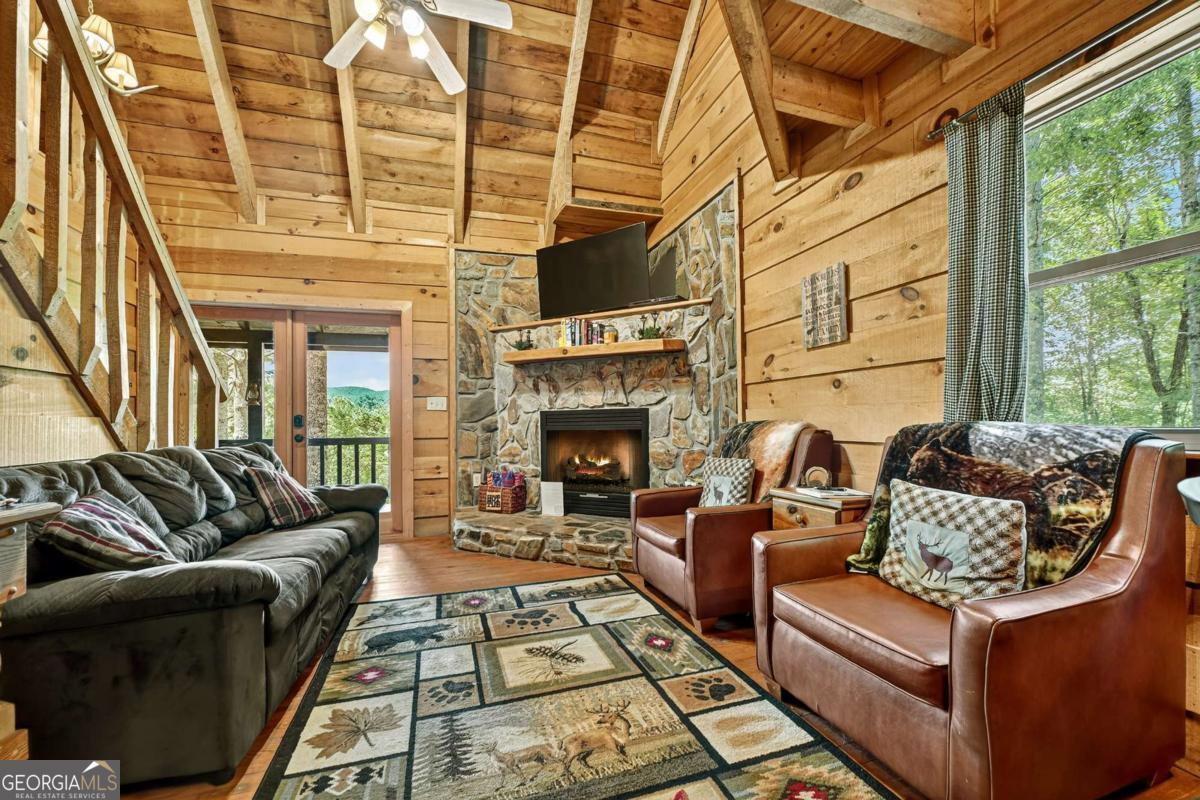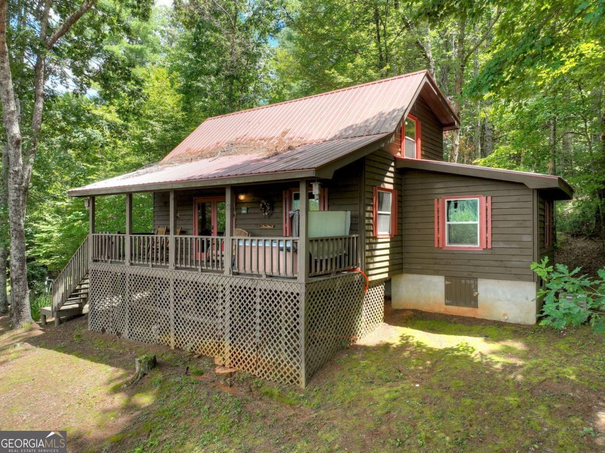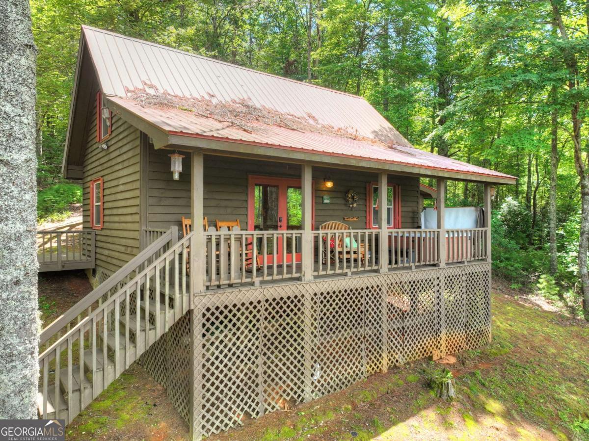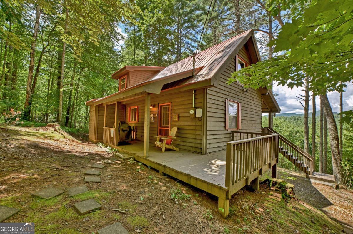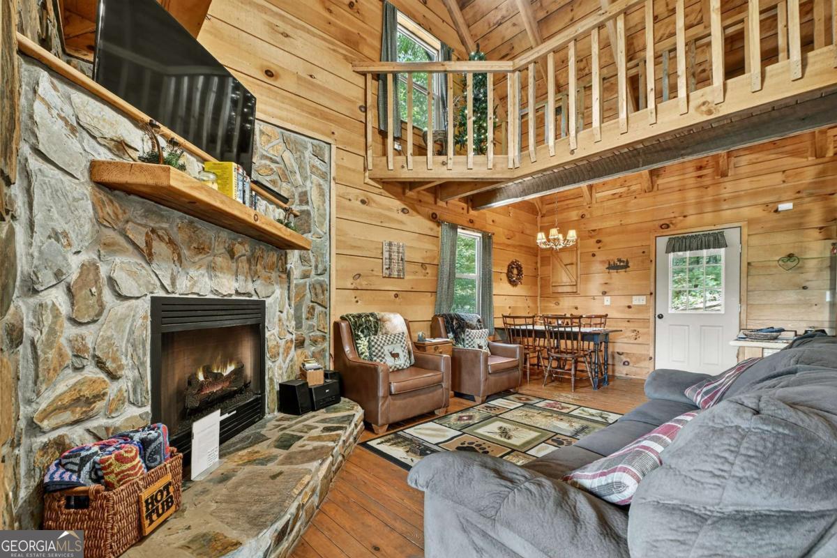 End of the road privacy and year-round layered mountain views No Steep Roads! This beautifully maintained 3BR/2BA cabin offers the perfect balance of peace, comfort, and accessibility. Tucked away on a private oversized lot in desirable Epworth, enjoy stunning year-round mountain views with no steep inclines to access the property. Currently a successful short-term rental, this property will be sold turn-key, fully furnished and ready for immediate enjoyment or continued income potential. Inside, you will find a warm and inviting interior featuring gas log fireplace, open-concept living, and spacious bedrooms. Outside, a cozy fire pit area and full-length porches invite you to take in the panoramic view while relaxing in the hot tub or enjoying your morning coffee from the front porch rocking chairs. This home has been well maintained and updated throughout the years, including metal roof, double-pane insulated windows, HVAC, water heater, 3BR permitted septic, live edge pine countertops, barnwood style tile shower, updated lighting, appliances, and plumbing fixtures, European dual flush commodes, shower door enclosures, and new LVT flooring in the kitchen and bath. Easy access and complete privacy all while being just minutes from the Cohutta National Forest, Jacks River Falls, hiking trails, and all the dining, shopping, and entertainment that downtown Blue Ridge has to offer. Do not miss this rare opportunity for a true mountain retreat with proven rental performance!