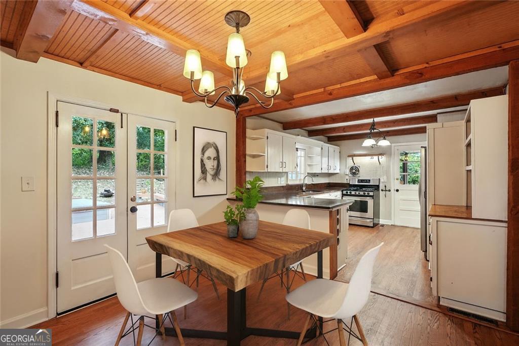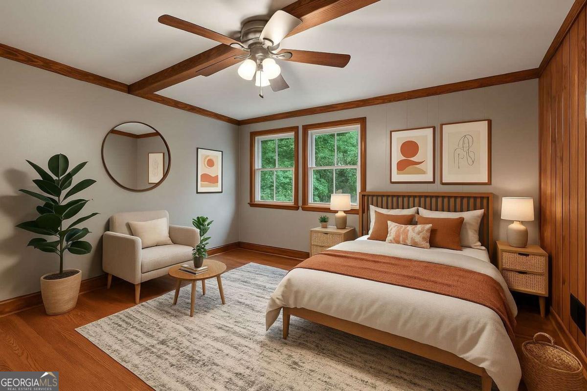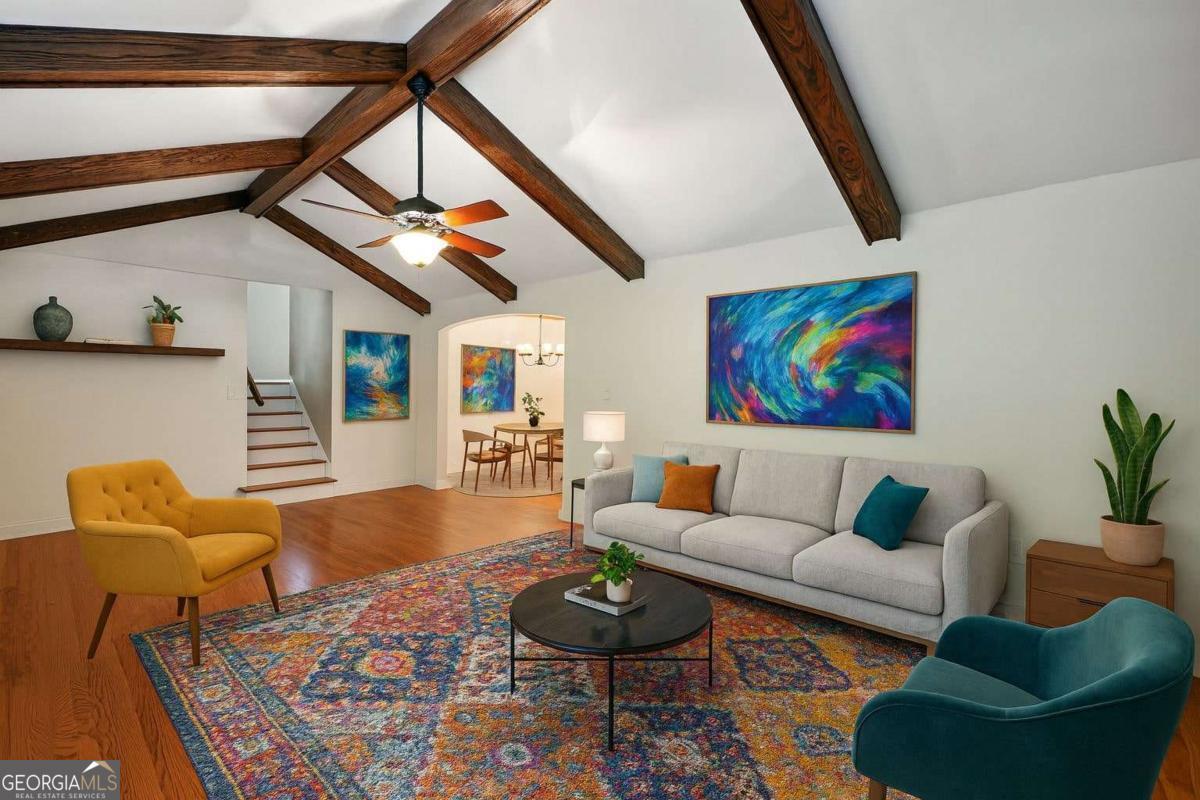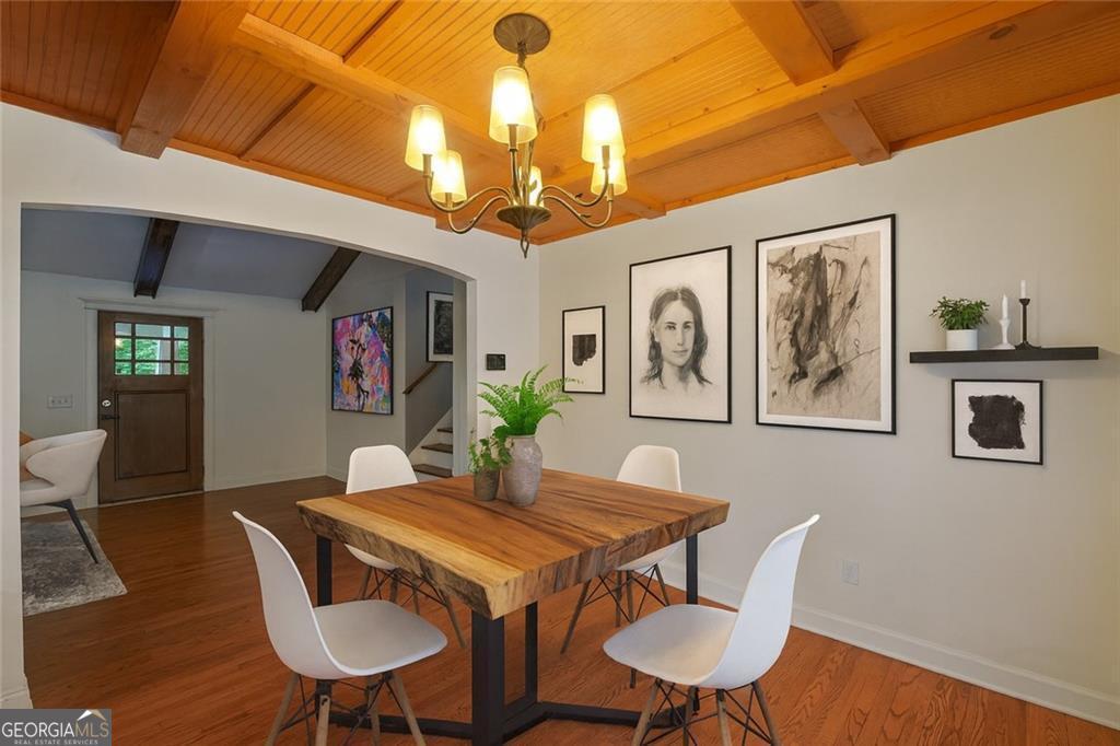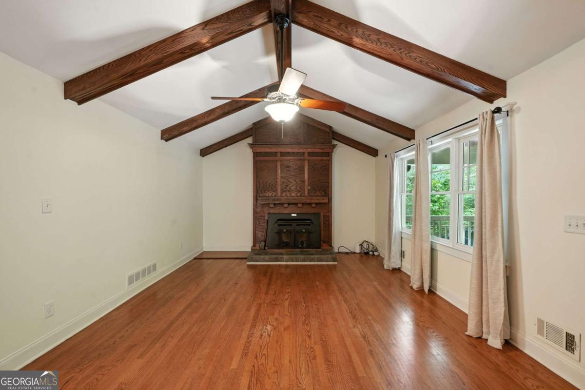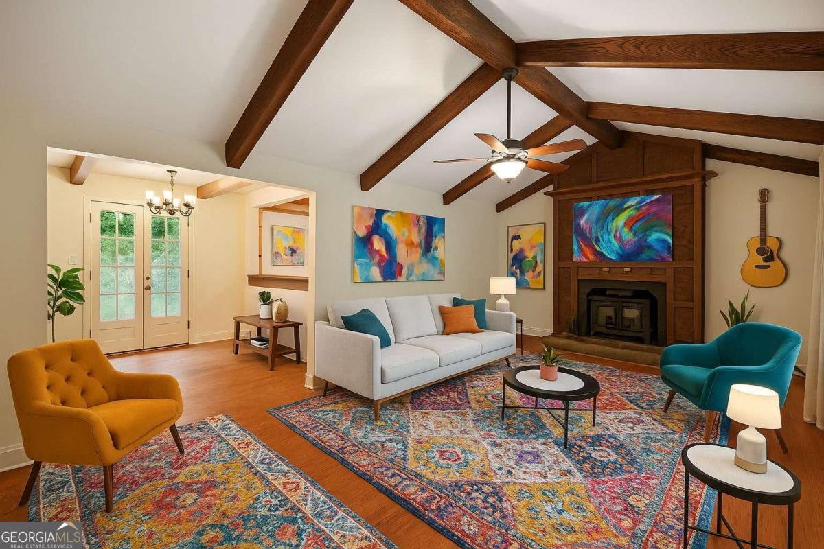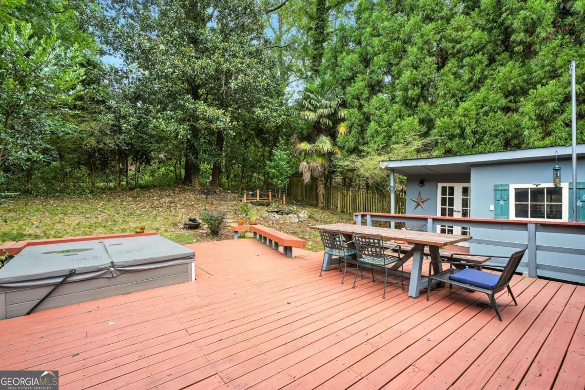 This 4-bedroom, 3-bath artisan-style bungalow in the heart of Brookhaven is a rare find - a home that pulses with creativity and soul. Soaring beamed and vaulted ceilings, tongue-and-groove ceilings in the dining room, rich hardwood floors, and updated baths create a timeless yet inspired backdrop. Oversized bedrooms double as private studios or restful retreats, perfect for both work and play. Massive decks spill out to a private, fenced oasis with a serene koi pond and a versatile workshop/storage shed - the ultimate haven for your next project or passion. Wrapped in lush greenery, the lot feels worlds away from the city, yet you're just a short drive from Brookhaven's hottest restaurants, minutes to Chastain Park, and a quick hop to all of Atlanta's intown culture, shopping, and nightlife. A true sanctuary in an unbeatable intown location - secluded, stylish, and utterly one-of-a-kind. If you crave a home as original as you are, this is it.