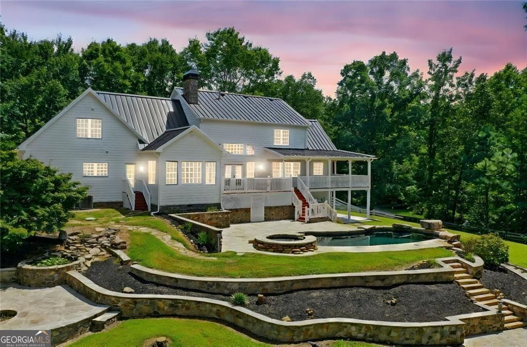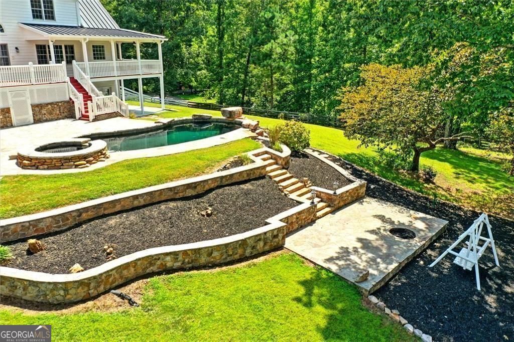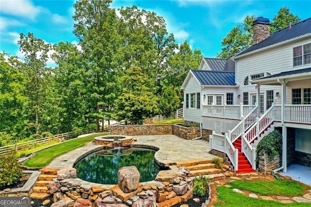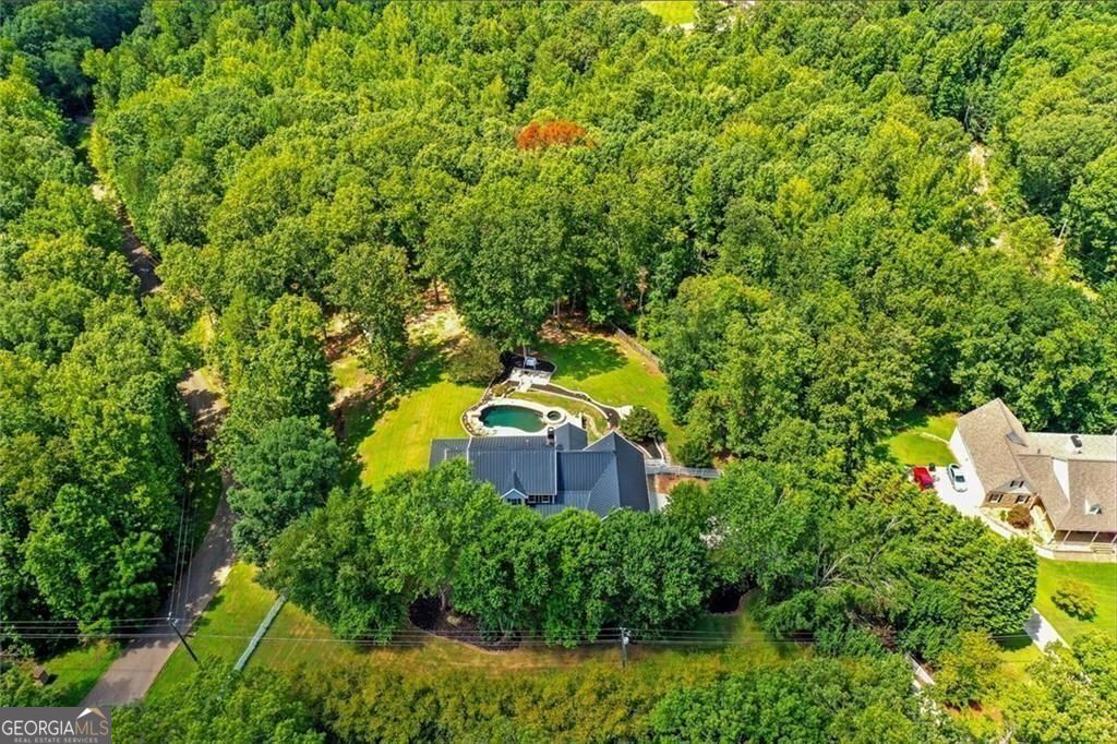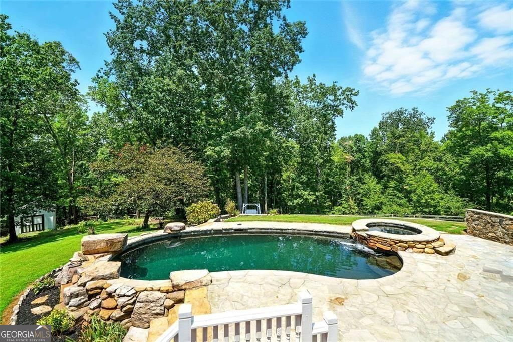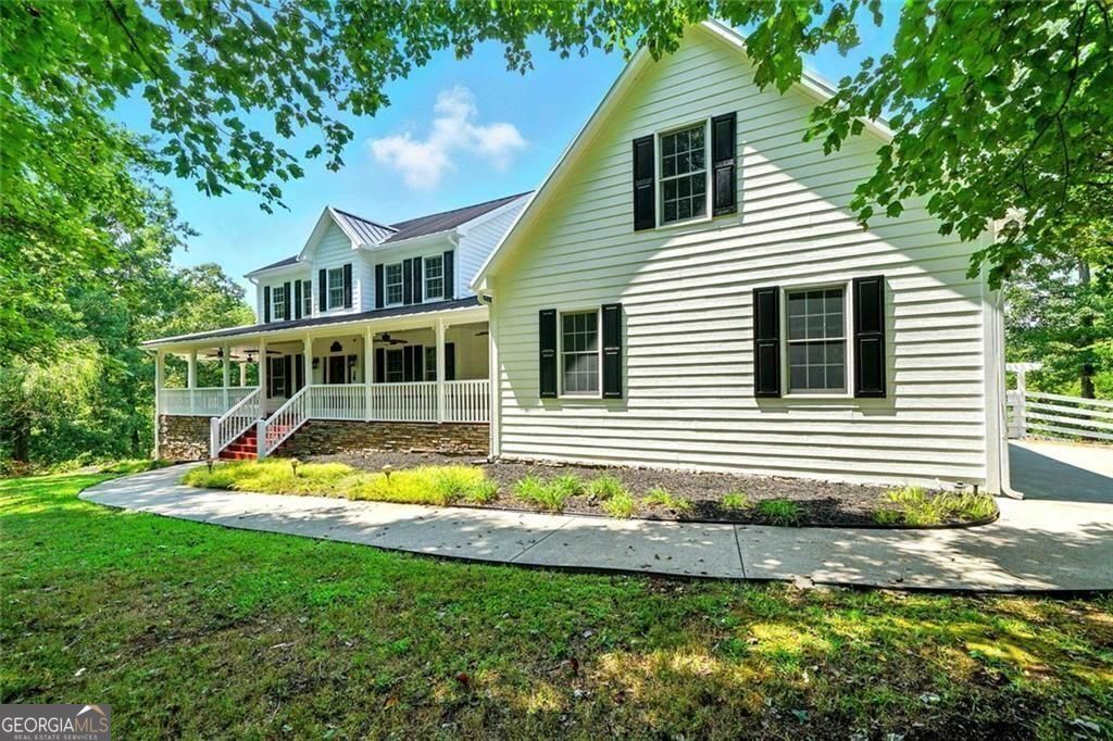 This private, tree-lined estate offers room to breathe on 4.69 acres with no homeowners association to restrict your freedom. A saltwater heated gunite pool and spa, surrounded by professional stone hardscapes and lush landscaping, make the backyard feel like a true outdoor retreat. Whether you're hosting or recharging, this fenced outdoor living space is the kind of spot people talk about long after they leave. Inside, a spacious kitchen anchors the home with granite countertops, a central island, double ovens, and not one but two walk-in pantries. The double-sided fireplace adds warmth and charm to both the living and formal dining areas. The main level features an owner's suite with private views and a separate office for work-from-home convenience. Upstairs, you'll find additional bedrooms and bathrooms offering room for guests or growing needs. The oversized laundry room and newer air conditioning units add to the home's practical side. A wide wrap-around porch frames the front of the home-perfect for rocking chairs, evening chats, and quiet mornings with coffee. And yes, you're in the sought-after Creekview High School district. If you're looking for space, privacy, and smart features with long-term value, this home checks all the boxes.